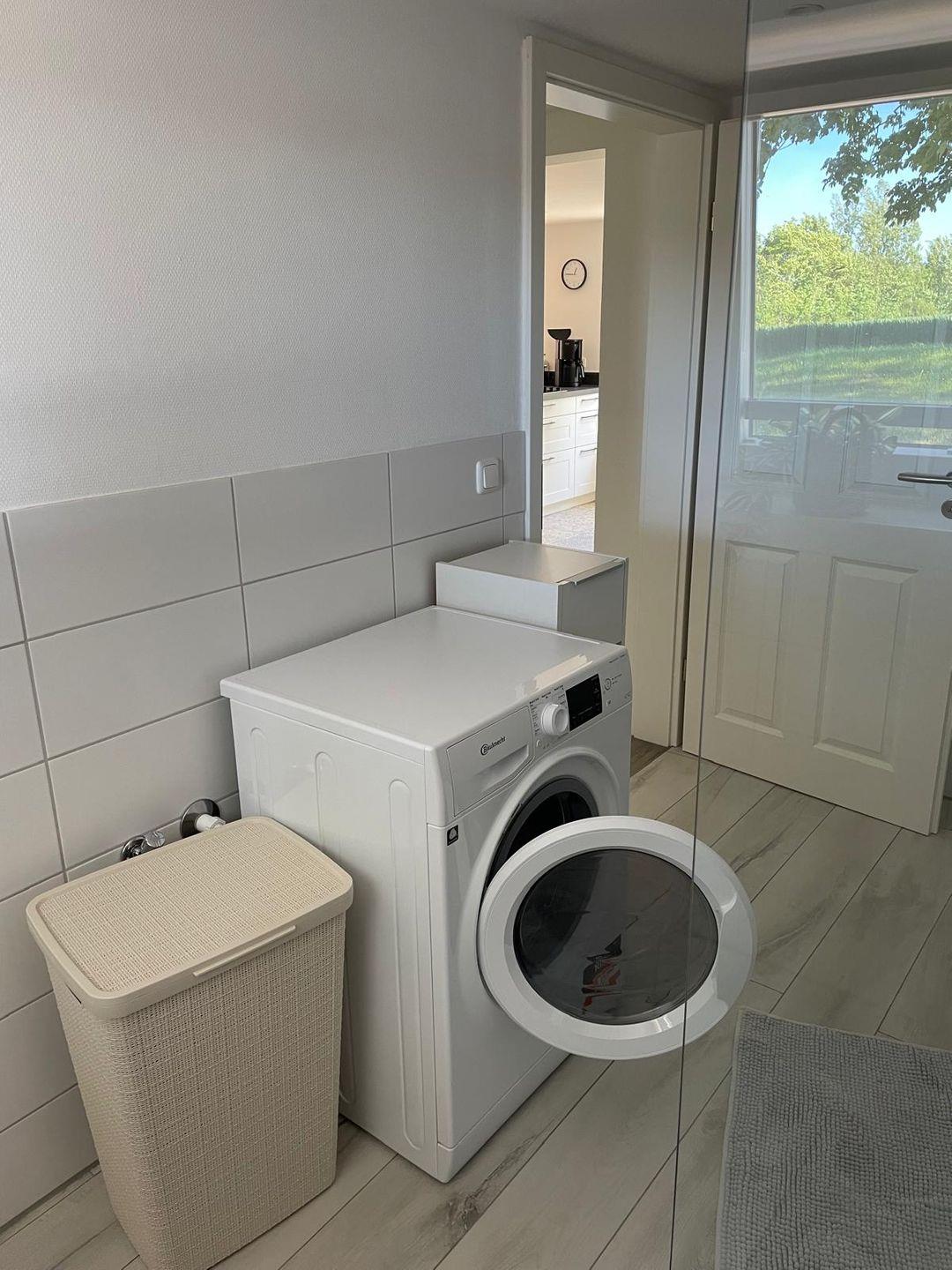 Das Badezimmer verfügt über eine ebenerdige Dusche, WC, Spiegel, Waschbecken sowie ein Fenster und Fußbodenheizung für zusätzlichen Komfort. Die gesamte Unterkunft ist ein Nichtraucherhaus und bietet vier Parkplätze für Ihren PKW. Hunde sind willkommen (maximal drei Tiere).