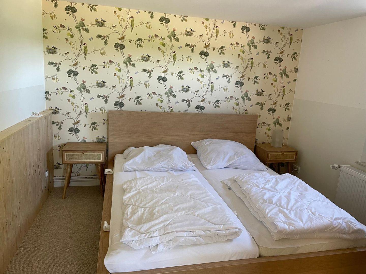 Die Ferienwohnung Klaus bietet auf 75 m² ein gemütliches Zuhause für bis zu fünf Personen. Das Apartment verfügt über drei Schlafzimmer: Ein Doppelzimmer mit einem 200x200 cm großen Bett, das in zwei getrennte Matratzen unterteilt ist, ein Zimmer mit zwei Einzelbetten und ein Einzelzimmer mit jeweils 90x200 cm Betten. Zwei der Schlafzimmer sind mit Verdunkelungsmöglichkeiten und Kleiderschränken ausgestattet, das dritte Schlafzimmer verfügt ebenfalls über eine Verdunkelung.
