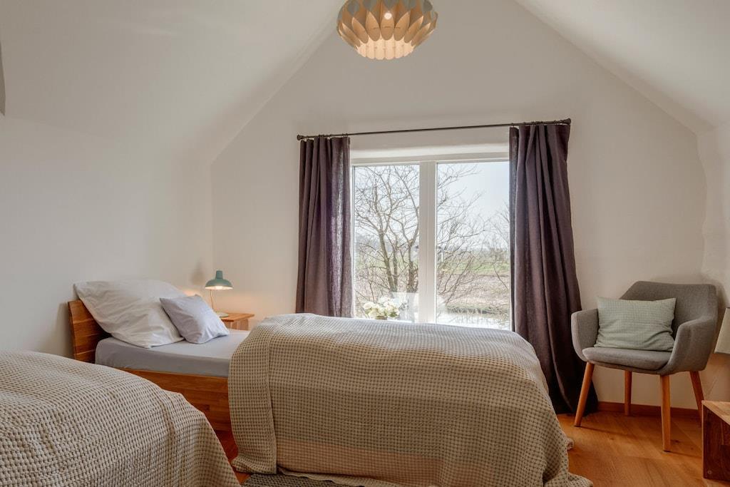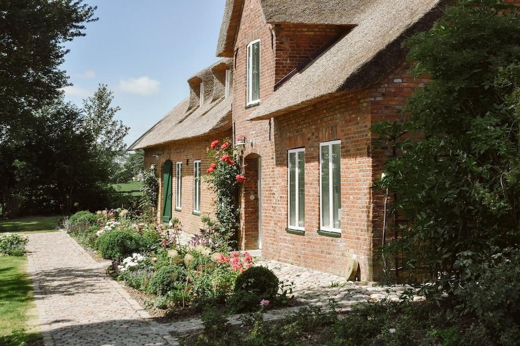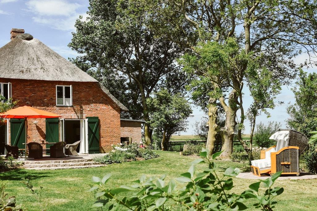 Inmitten der weiten Marschlandschaft Eiderstedts steht unser fast 120 Jahre altes Reetdachhaus Huus Uelvesbüll, das wir 2017 mit Liebe zum Detail grundlegend saniert haben. Aus jedem Fenster unseres lichtdurchfluteten Hauses mit den drei Hausteilen Ost, Süd und West, schauen Sie in die Weite: auf Deiche, Felder und grasende Schafe. Die äußere Weite wird auch innen spürbar: durch eine schnörkellose, skandinavisch inspirierte und sehr hochwertige Einrichtung und Ausstattung. In der Wohnung Ost finden Sie auf 150qm eine Wohnküche mit Jugendstil-Kaminofen und angrenzendem Wohnzimmer und Terrasse, drei Schlafzimmer für bis zu 6 Personen (7. Person auf Anfrage), zwei Bäder sowie eine Gästetoilette. Im Haus stehen Ihnen ein großzügiger Saunabereich mit Ruheraum sowie ein Hauswirtschaftsraum zur Verfügung. Eine Aufladesäule für E-Autos ist auf dem Parkplatz des Hauses verfügbar.