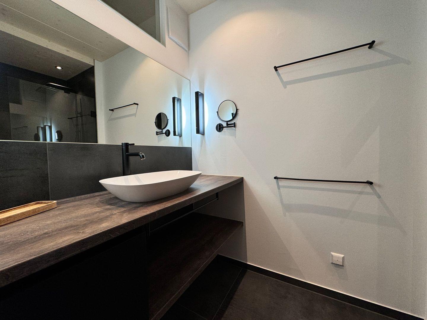 Das offene 1-Zimmer-Appartement überzeugt durch geradliniges schlichtes Design sowie ausgesuchte Möbel und Textilien. Die Ausstattung lässt keine Wünsche offen.