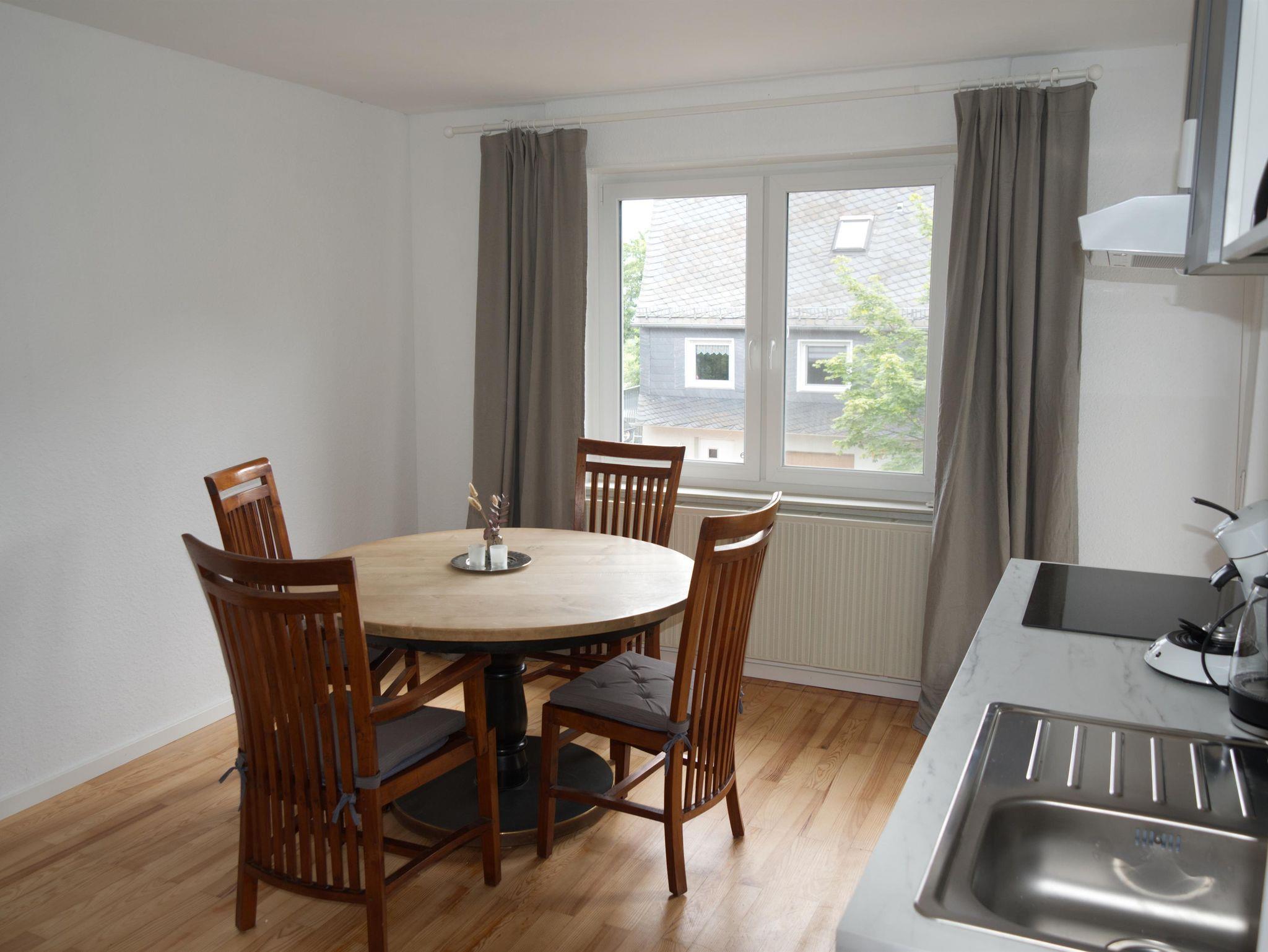 Die Wohnungen sind in einem ehemaligen Bauernhaus mit separaten Eingängen untergebracht. Das Haus befindet sich im Ortskern von Uhler und liegt idyllisch an einem ruhigen Innenhof umrahmt von einem Ensemble aus Schiefernhäusern. Ein PKW-Stellplatz steht für jede Wohnung direkt vor dem Haus zur Verfügung.