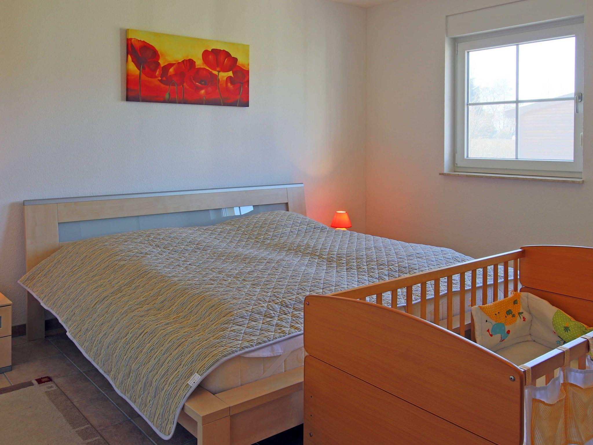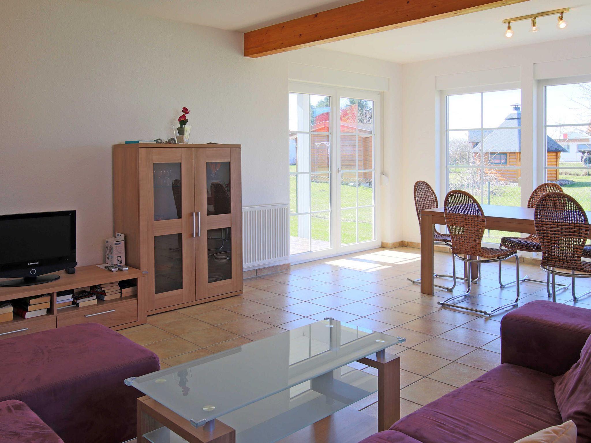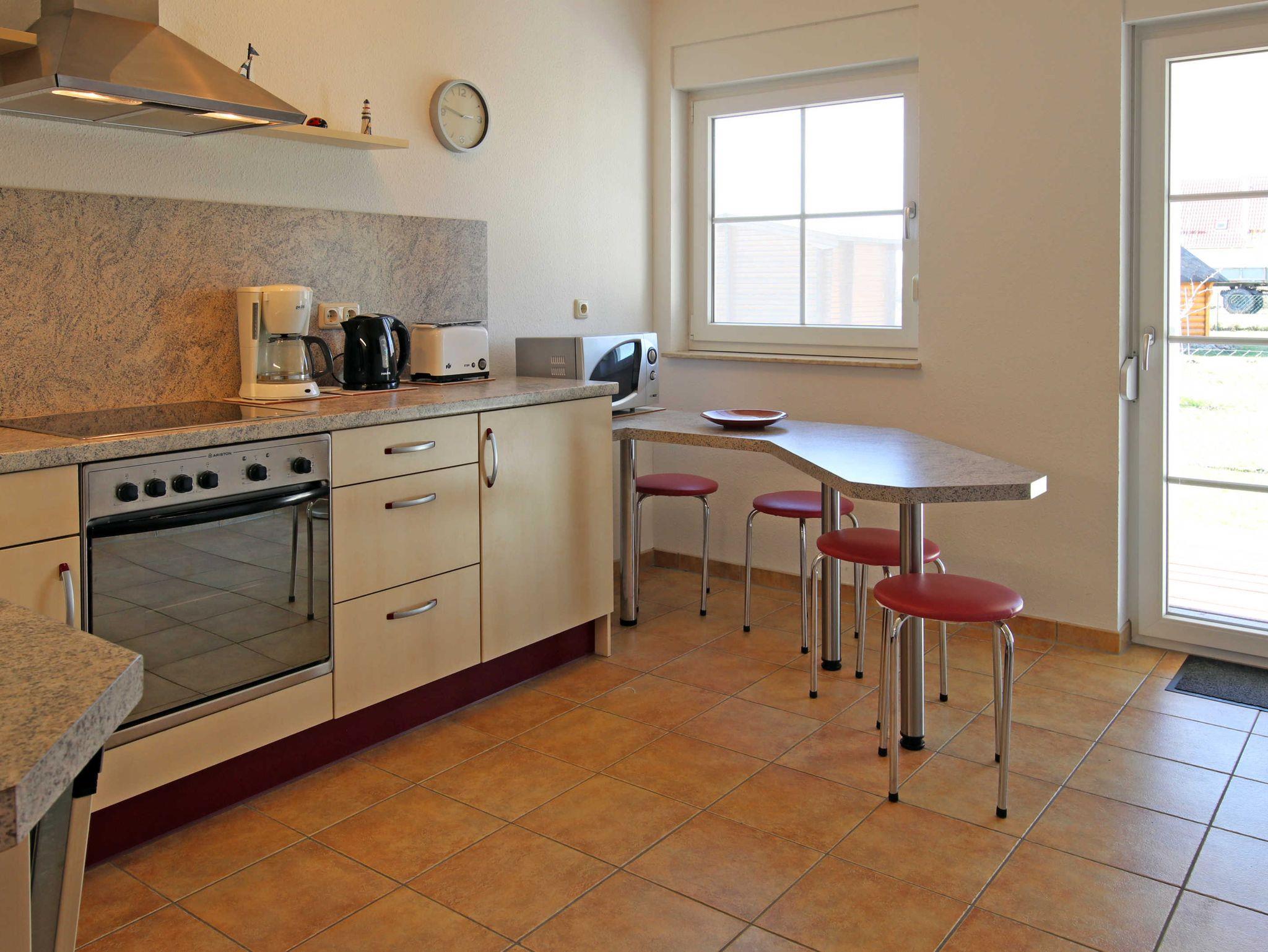 Das Ferienhaus teil sich in Wohnzimmer, drei Schlafzimmer, eine separate Küche und ein Badezimmer ein. Das Wohnzimmer verfügt über Couch, TV und einen Esstisch. Zwei Schlafzimmer sind mit jeweils einem Doppelbett (200x200, getrennte Matratzen) ausgestattet, während das dritte Schlafzimmer über 2 Einzelbetten (100x200 höhere Seniorenbetten) verfügt (Hinweis: die Bettdecken haben Komfortgröße mit 1,55m x 2,20m). In einem Schlafzimmer mit Doppelbett befindet sich zusätzlich ein feststehendes Kinderbett (70x140). In der vollausgestatteten Küche befinden sich neben dem Elektro-Herd mit Backofen, Kühlschrank, Geschirrspüler, Kaffeemaschine, Wasserkocher, Toaster, Mikrowelle und auch Sitzgelegenheiten. Das Bad ist mit einer Badewanne, Dusche, einem WC und Föhn ausgestattet.