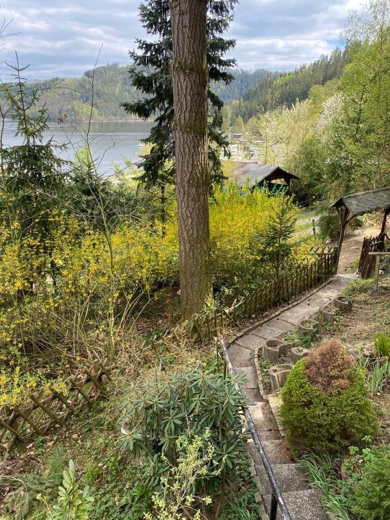 Das Haus "Wald-See-Glück" ist ein wahres Natur-Idyll. Umrahmt von hohen Kiefern, kann man die Eichhörnchen und Siebenschläfer von Baum zu Baum hüpfen sehen und hat gleichzeitig einen herrlichen Blick auf den Hohenwarte-Stausee, dessen Ufer- bzw. Strandbereich ca. 200 m entfernt ist.