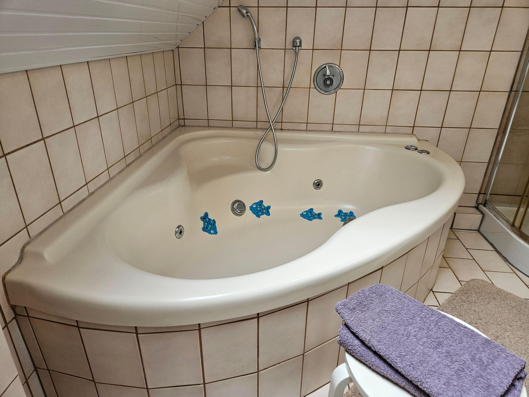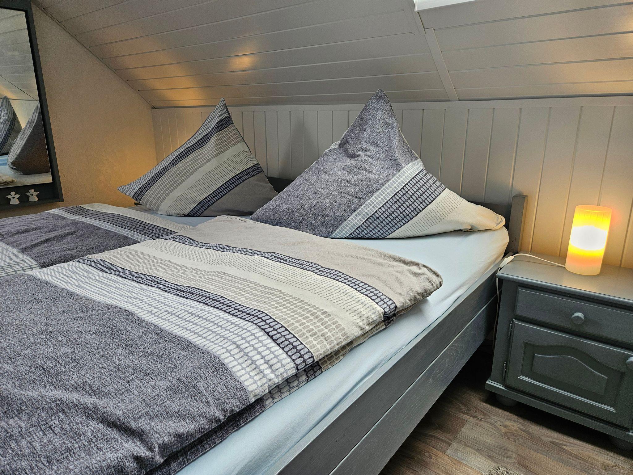 Gemütliche Ferienwohnung mit etwa 60qm Wohnfläche. Sie besteht aus zwei Schlafzimmern. Das eine mit Doppelbett und einem Flachbild-TV. Das andere Schlafzimmer besteht aus zwei Einzelbetten im gemütlichen Flair. Ein Kinderbett ist vorhanden und kann auf Anfrage genutzt werden. Selbstverständlich sind die Betten bezogen. Zusätzliche Decken und Kissen sind auf Wunsch erhältlich. Das Wohnzimmer mit gemütlicher Sitzecke und großen Flachbild TV lädt zum Verweilen ein. Ihnen steht auch eine voll ausgestattete Küche mit vielerlei Geräten zur Verfügung. Das Bad hält eine große Badewanne mit Whirlpool bereit und hier lässt es sich ideal entspannen.