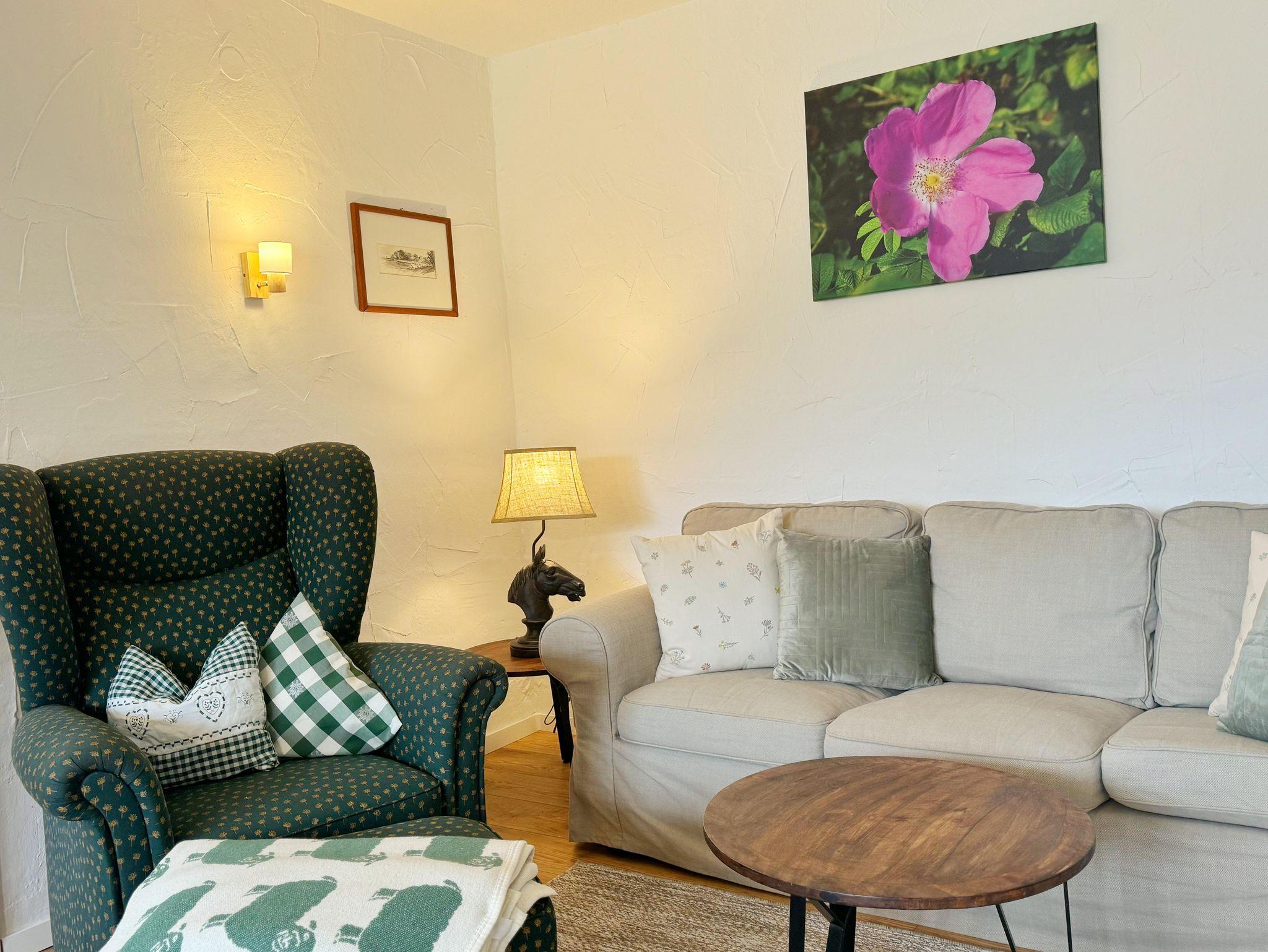 Wunderschöne Ferienwohnung mit einem tollen Blick in den Obstgarten. Die Ferienwohnung ist ca. 70 m² groß mit einem Schlafzimmer mit Doppelbett, einem 3-Bett-Zimmer (mit Etagenbett), einem Wohnzimmer mit Audio-System und Sat-TV, einer separaten und komplett ausgestatteten Küche und einem Badezimmer mit Dusche und WC. Babybett auf Nachfrage. Fahrräder können am Hofglände abgestellt werden. Auf der Terrasse kannst Du die Ruhe genießen und im Obstgarten auf der Liegewiese relaxen.