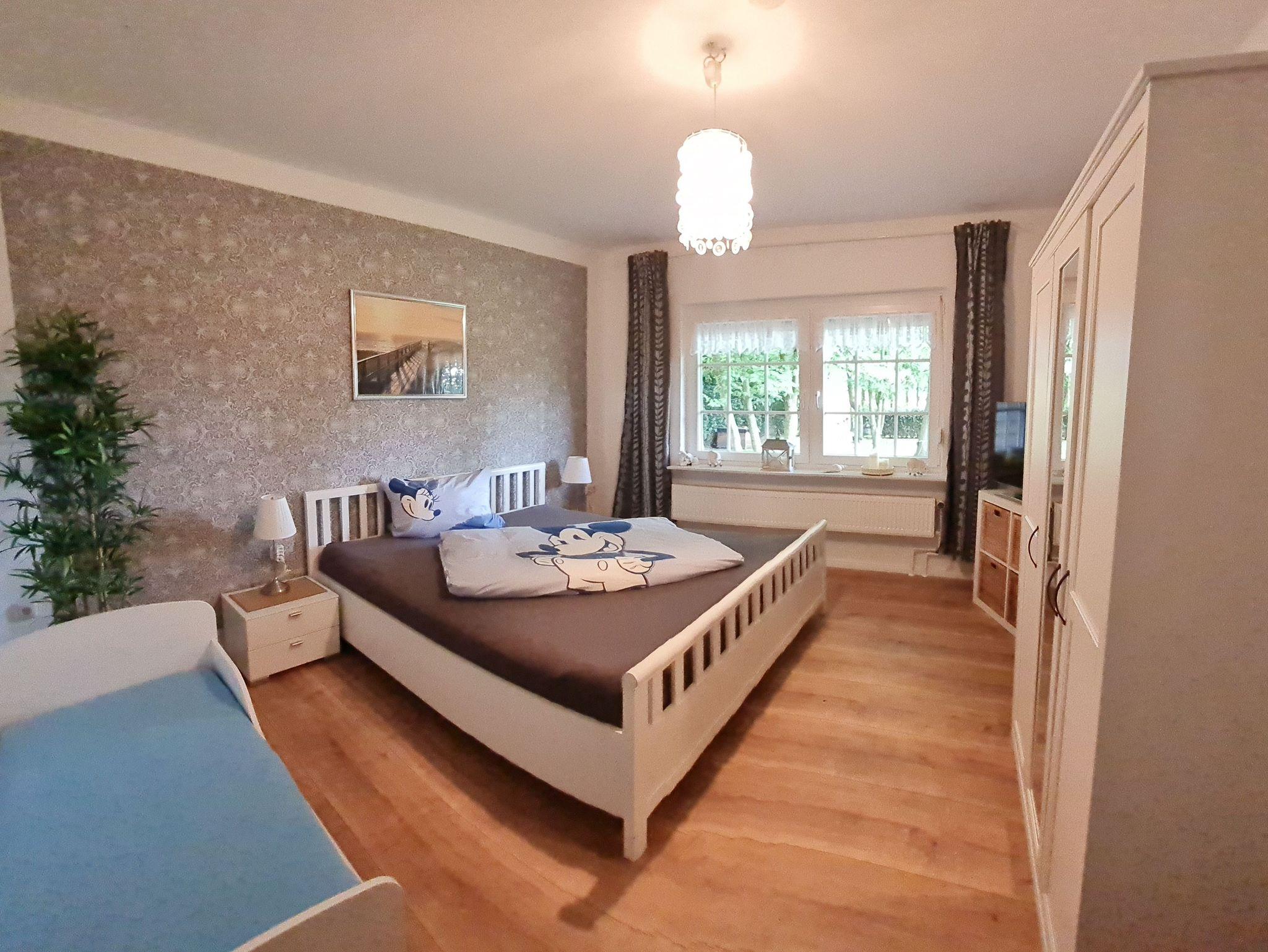 Unsere familienfreundliche, Inhaber geführte Ferienwohnung Große Emma verfügt über 2 Schlafzimmer mit je einem Doppelbett mit einer Liegefläche von 180 x 200 cm (selbstverständlich mit TV) .