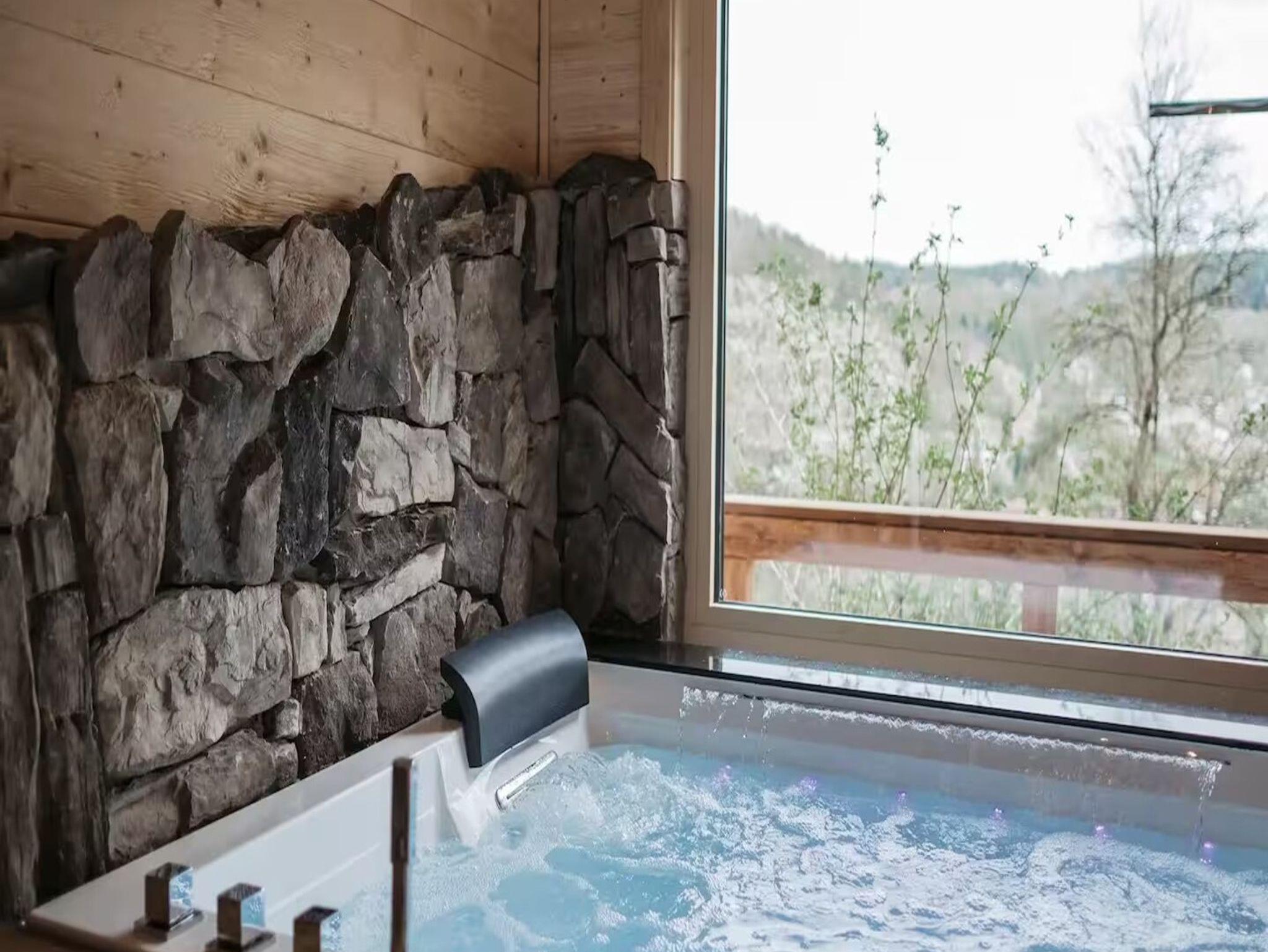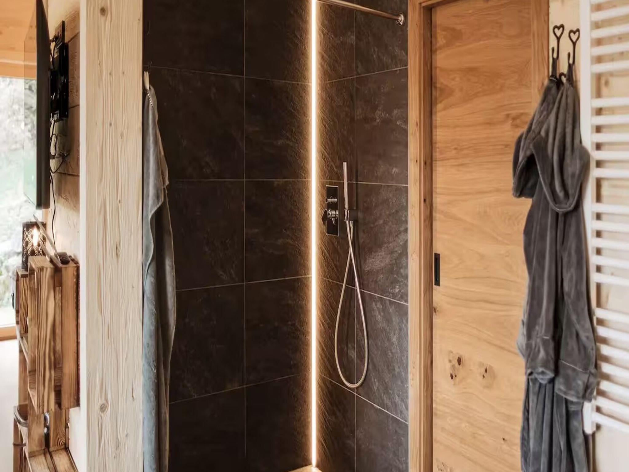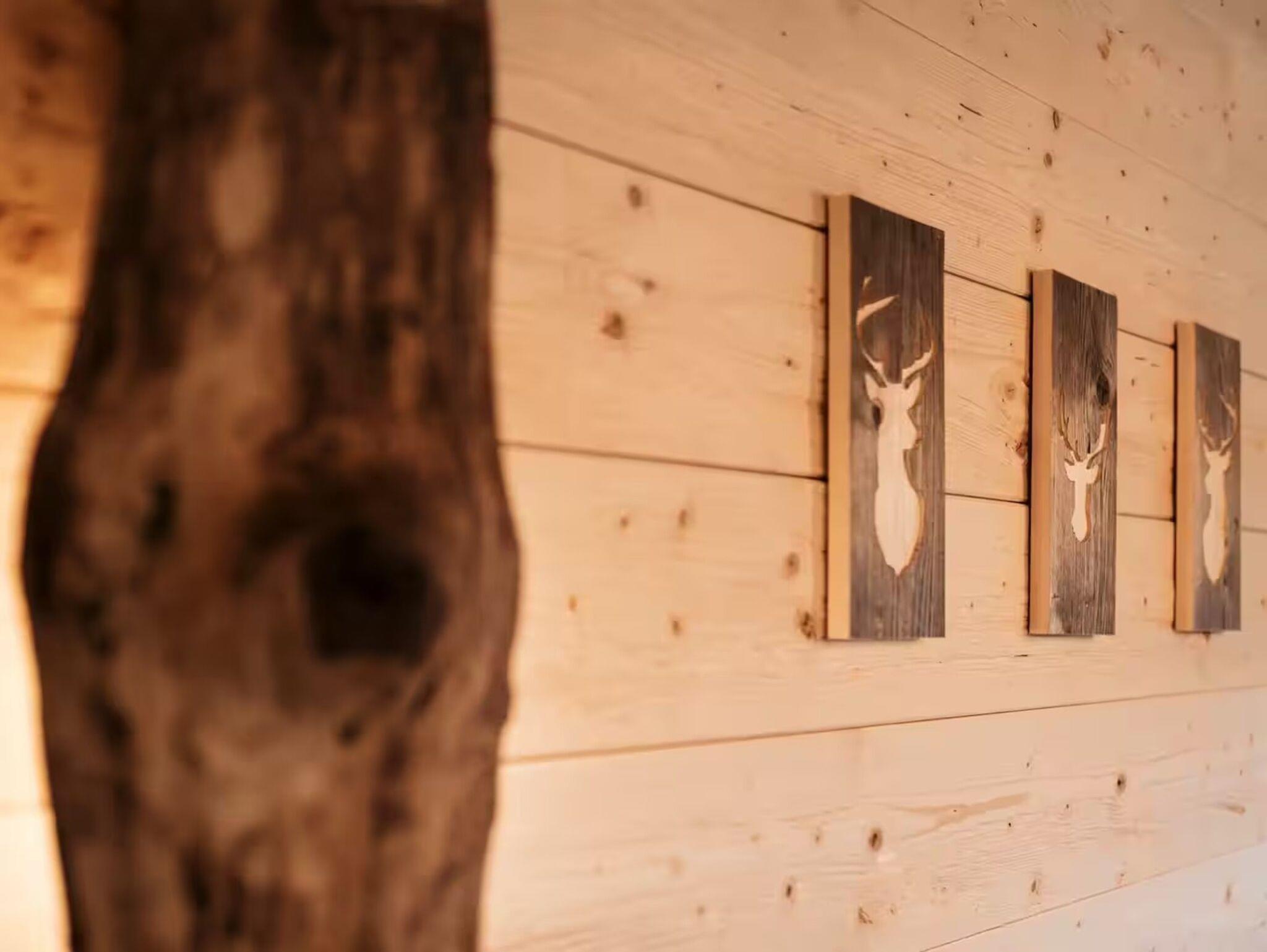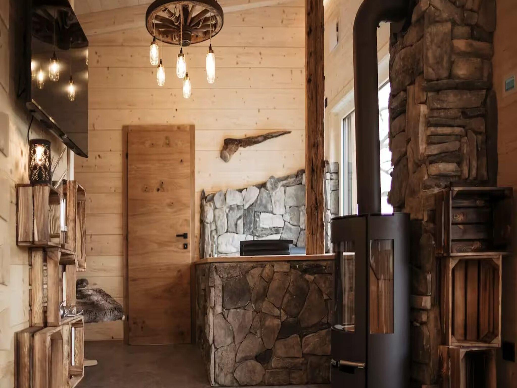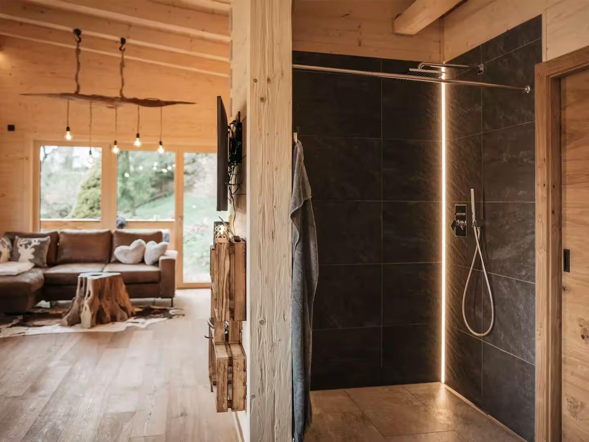 Das Romantikchalet Vogelnest ist komplett aus massivem heimischen Holz gebaut und liebevoll eingerichtet, was eine natürliche, warme und urgemütliche Atmosphäre schafft. Es verfügt über ein Schlafzimmer mit hochwertiger Bettwäsche, Extrakissen und -decken, Verdunkelungsmöglichkeiten und begehbaren Kleiderschrank. Das Badezimmer ist ausgestattet mit Badewanne, Dusche, Föhn, Reinigungsprodukten, Seife oder Duschgel und Warmwasser. Der Wohnbereich bietet einen 32-Zoll-HD-Fernseher, Soundsystem, Kamin aus Holz, Heizung und Klimaanlage. Die Küche ist vollständig ausgestattet mit Kühlschrank, Minikühlschrank, Gefrierschrank, Elektroherd, Backofen, Geschirrspülmaschine, Kaffeemaschine (Nespresso), Wasserkocher, Toaster, Töpfen, Pfannen, Geschirr, Besteck, Weingläsern und einem Esstisch. Im Außenbereich gibt es eine Terrasse oder einen Balkon, Gartenmöbel, Essbereich im Freien, Grill, Liegestühle, privaten Whirlpool, Fasssauna und eine Infrarotliege. Zur Ausstattung zählen zudem WLAN, privater Eingang, Sicherheitsausstattung wie Rauchmelder, Kohlenmonoxidmelder, Feuerlöscher und Erste-Hilfe-Set sowie eigenständiger Check-in über Codeschloss. Das Chalet bietet alles, um sich zu entspannen, Wellness zu genießen und einen komfortablen Aufenthalt inmitten der Natur zu erleben.