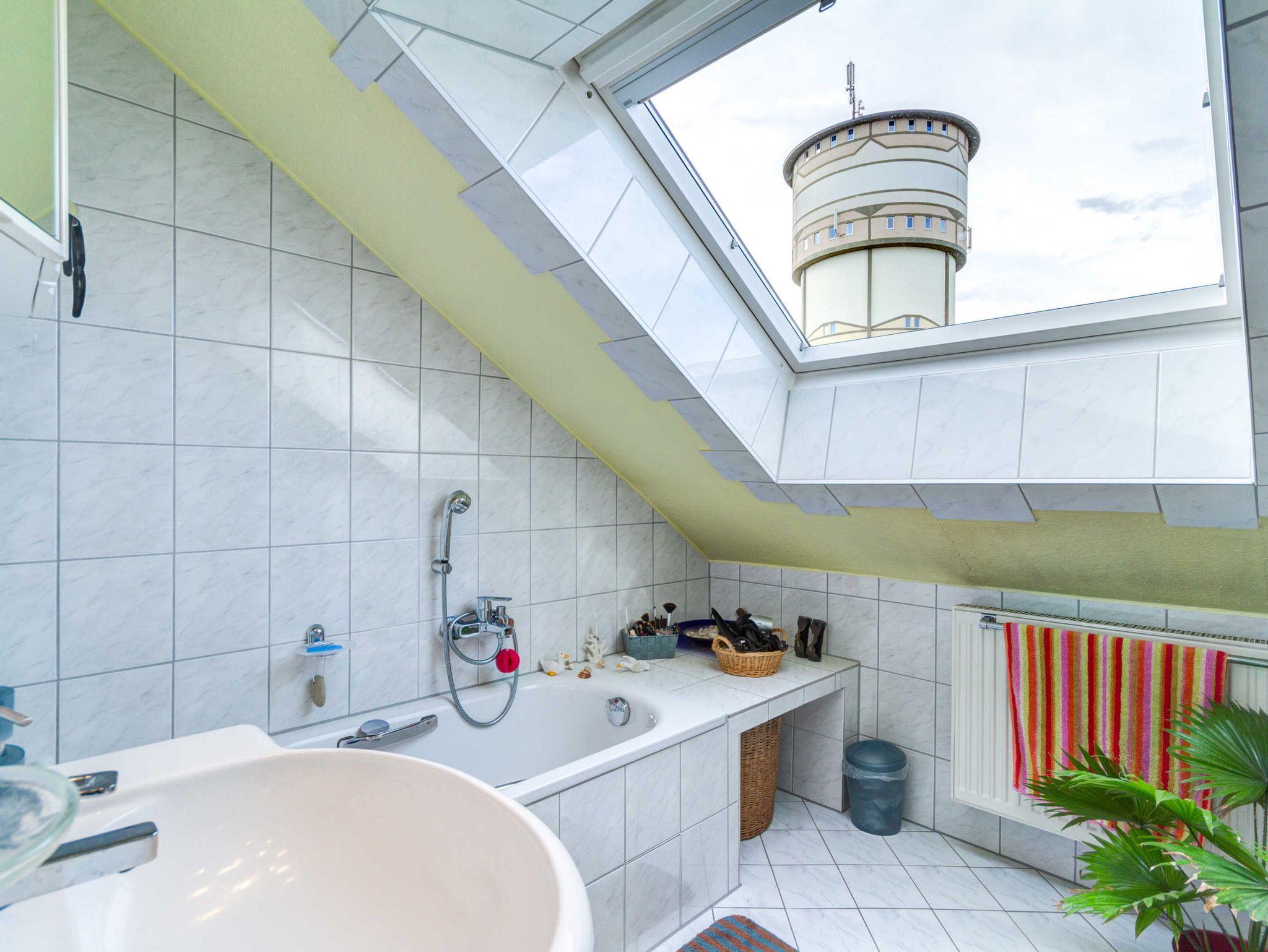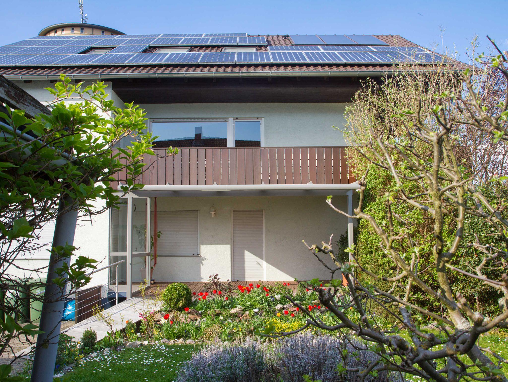 Durch die erhöhte Lage des Hauses ist die Aussicht in Richtung Karlsruhe unverbaut. Vom Balkon hat man einen super Überblick und kann bei gutem Wetter bis zum Turmberg nach Durlach schauen.