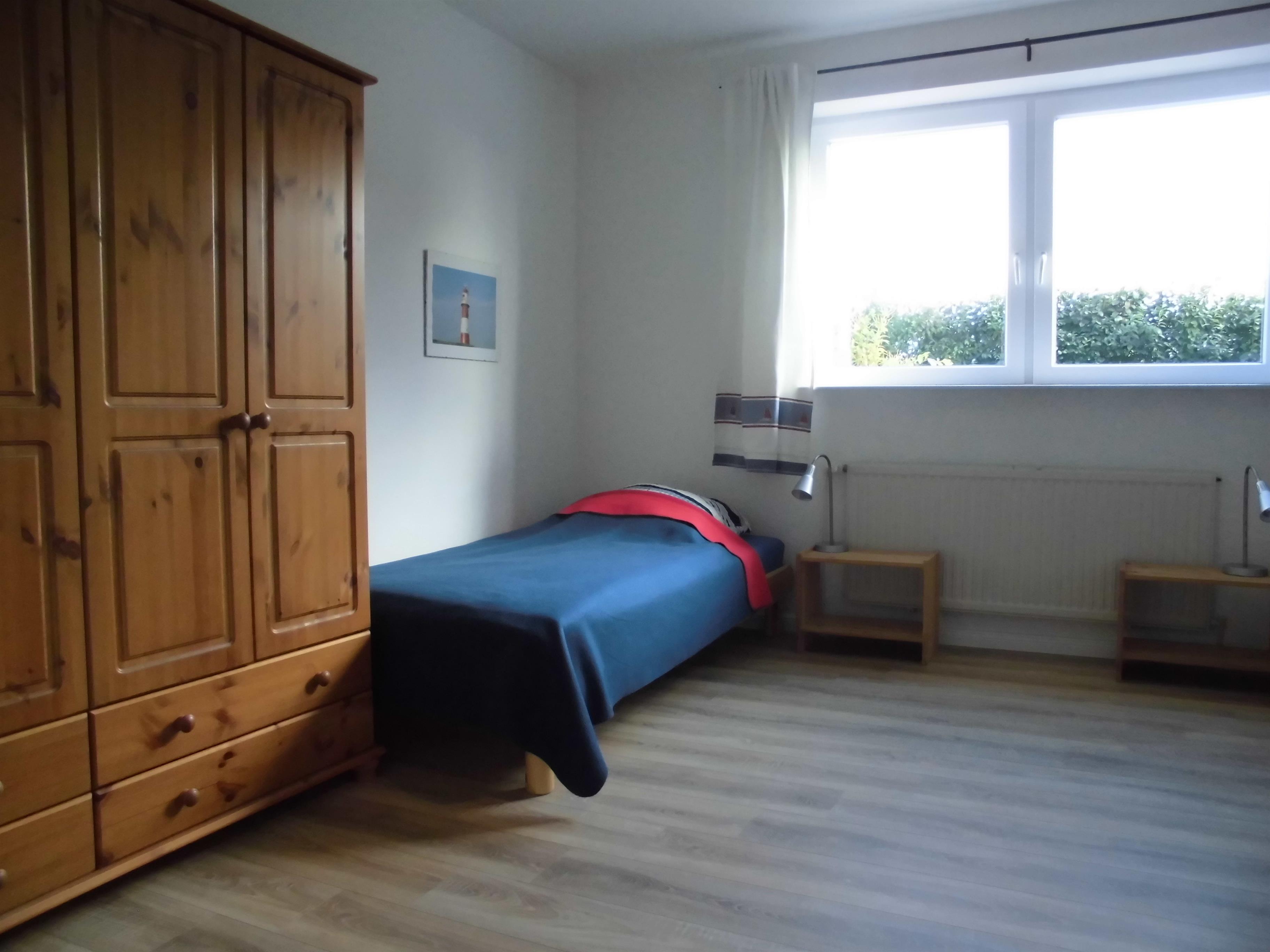 Die ruhig gelegene Drei-Zimmer-Wohnung verfügt über ein Wohnzimmer mit Sitzgelegenheiten, Fernseher und einer gemütlichen Sitzecke. Desweiteren finden Sie hier zwei Schlafzimmer, eines mit einem Doppelbett (140x200) und eines mit zwei Einzelbetten. Die Ferienwohnung ist mit W-Lan, einem Fernseher mit Sat-TV, DVD-Player, Radio, Küche und einem Badezimmer mit Dusche und WC ausgestattet. Eine Unterbringung von fünf Personen ist mit einem Zustellbett möglich.