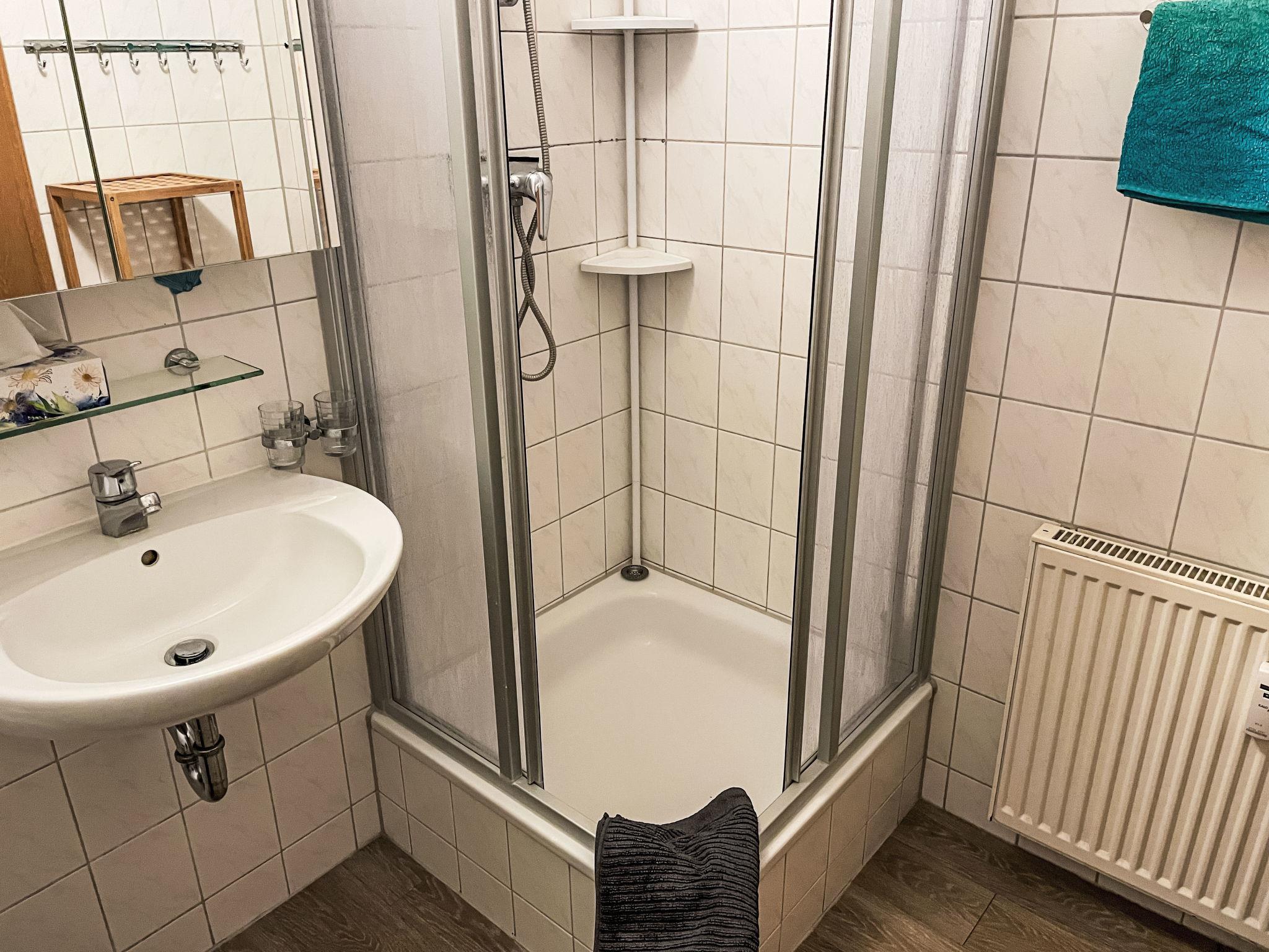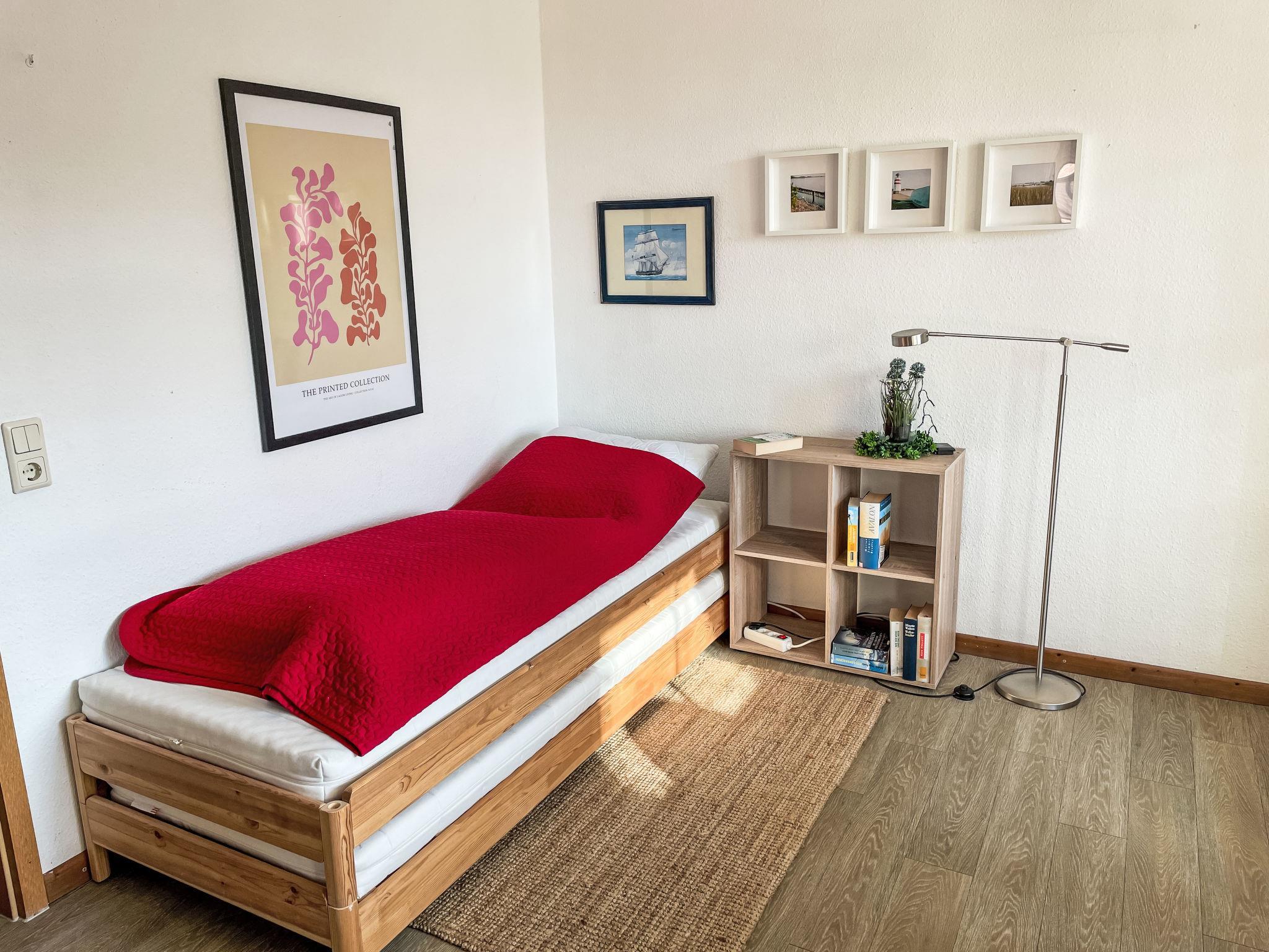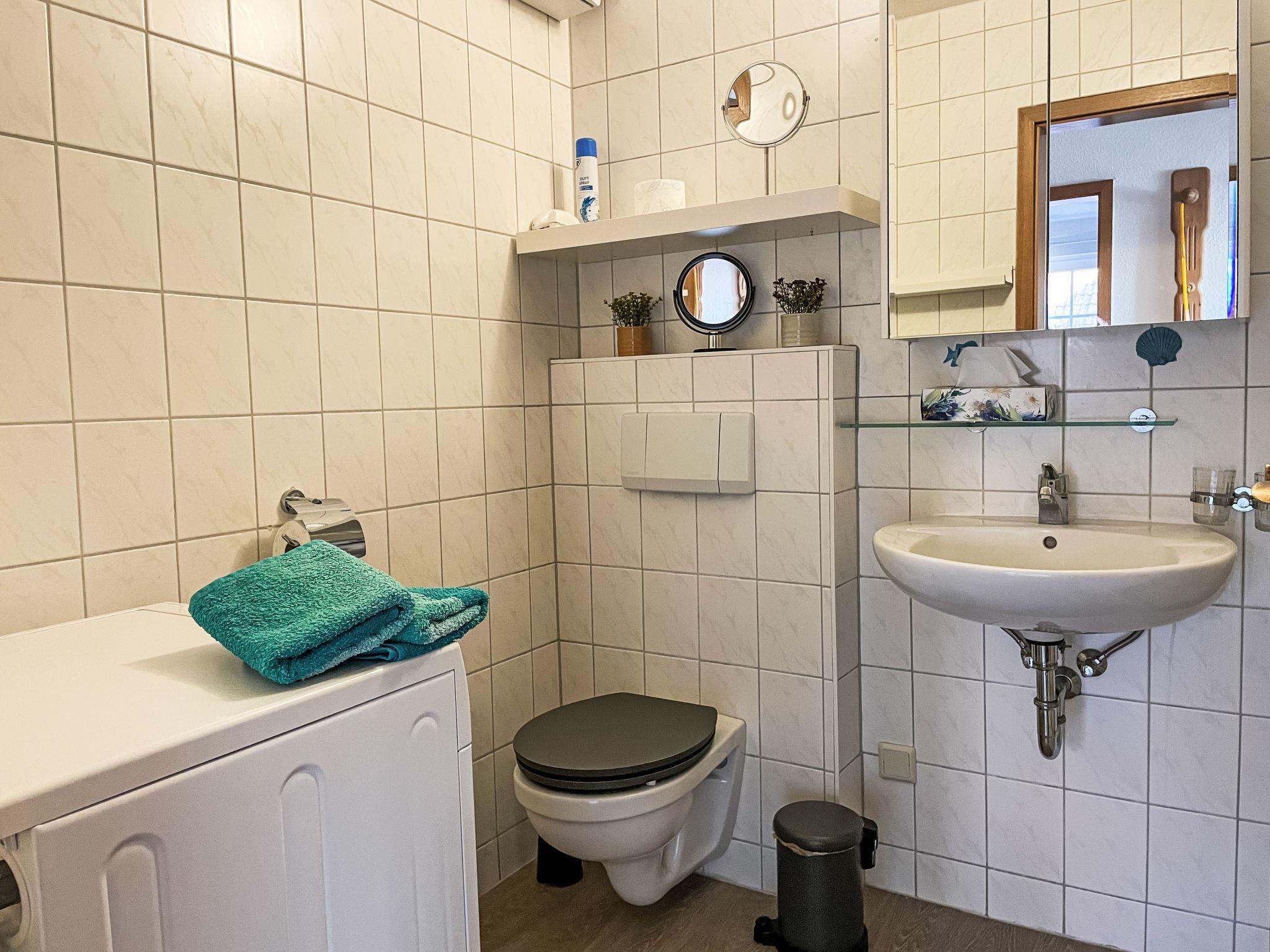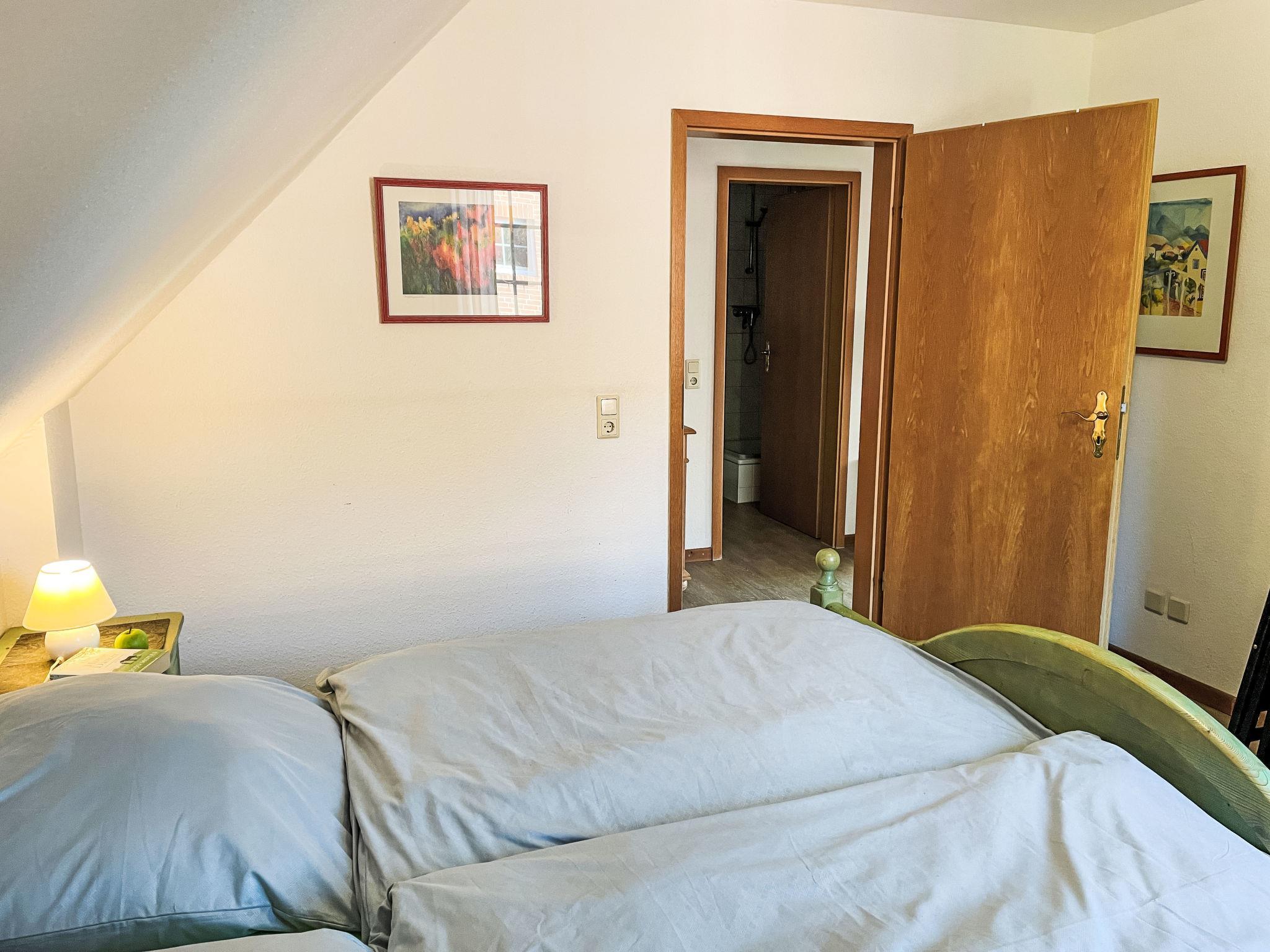 "Hus am Bodden", 2-room apartment 51 m2, on the upper floor. Bright, cosy furnishings: living/sleeping room with sloping ceilings with 1 bed, dining table, satellite TV, radio and CD-player. Exit to the loggia. 1 double bedroom with sloping ceilings. Open kitchen (oven, dishwasher, 4 ceramic glass hob hotplates, toaster, kettle, microwave, electric coffee machine). Shower/WC. Gas heating. Balcony furniture, covered balcony, box-room. Facilities: washing machine, children's high chair, baby cot. Internet (WiFi, free). Parking (1 car). Please note: non-smokers only. Smoke alarm.