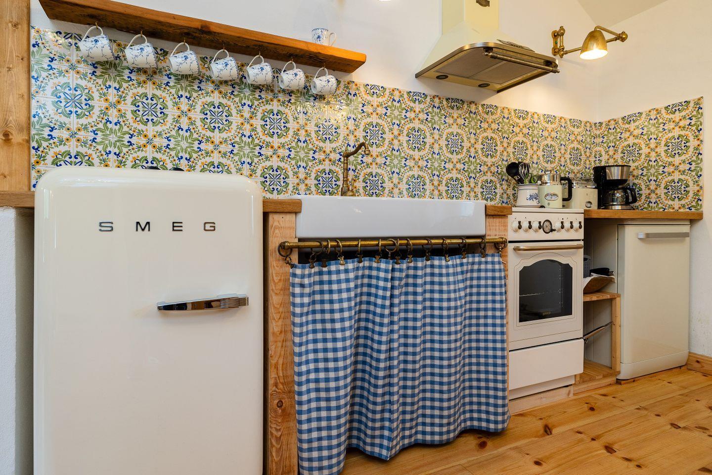 KÜCHE // offene Küchenzeile im Wohnzimmer, Ceranfeld, Kühlschrank, Spülmaschine, Backofen, Toaster, Wasserkocher, Kaffeemaschine, reichlich Besteck, Geschirr und Küchenutensilien ++