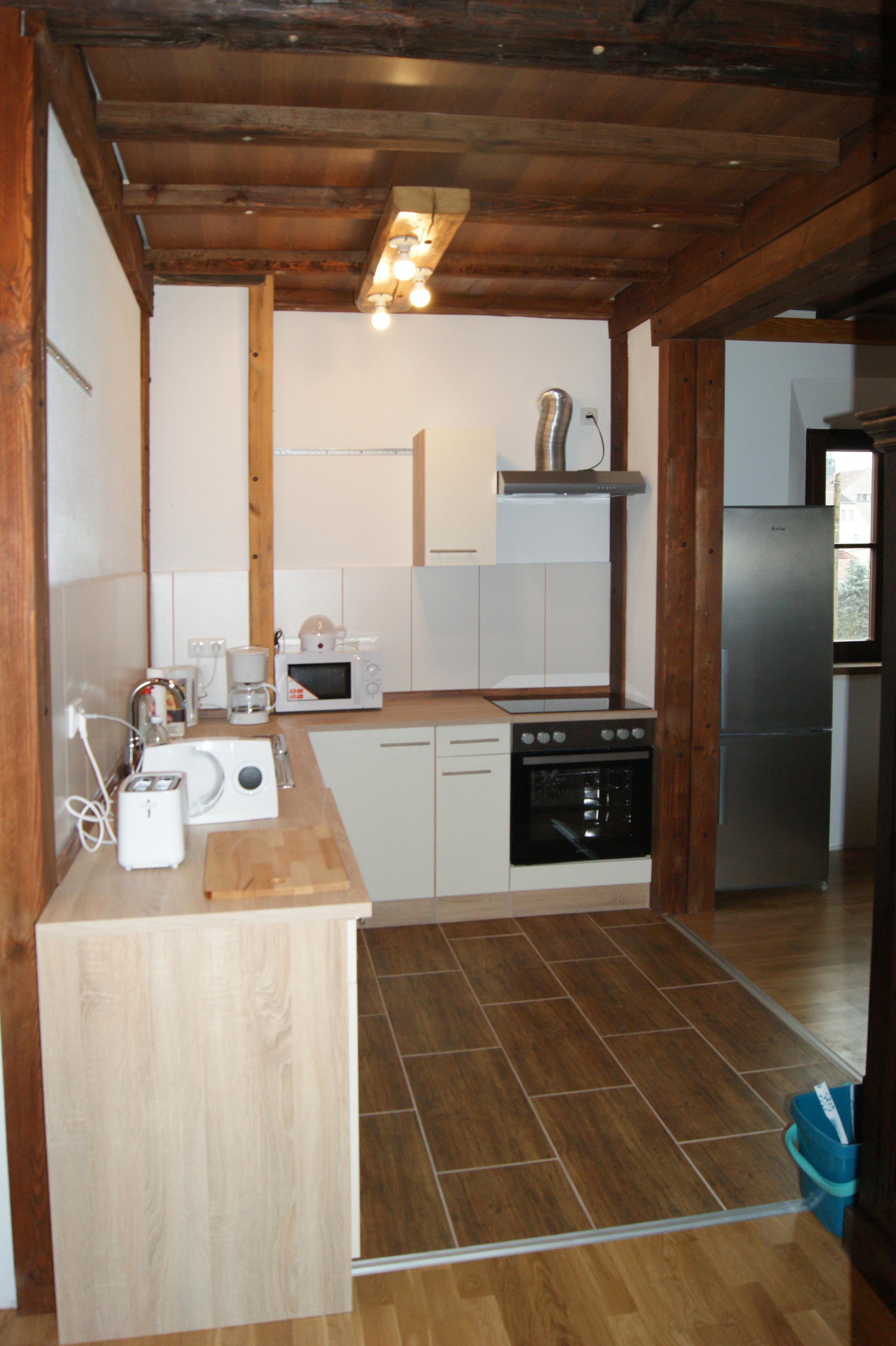 Erleben Sie Familienurlaub in der Ferienwohnung Laternenstube: 73 m², Bad, Flur, Küche, Esszimmer, Schlafzimmer mit 3,60 m Familienbett für 4 Personen und zwei Kinderzimmer mit 4 Betten. Ideal für Paare, Familien und Monteure. Im großen Park Spielplatz, Tischtennisplatte, Reckstangen, Trampolin und Großschach – Spaß für Groß und Klein.