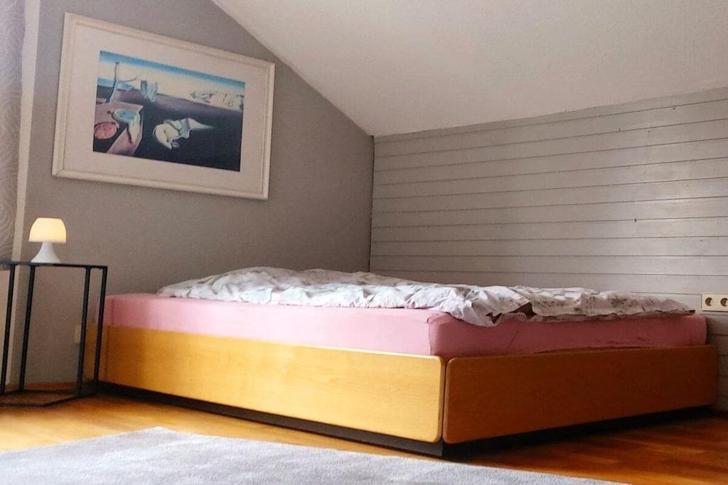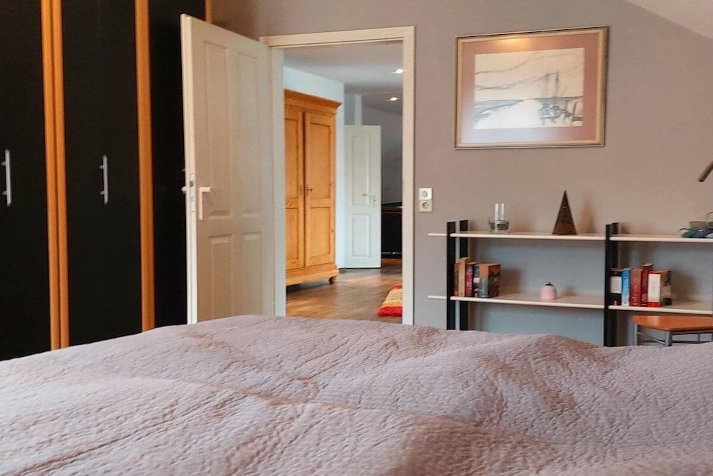 Wilkommen in unserer gemütlichen und sehr geräumigen Ferienwohnung. Dieser Rückzugsort ist sorgfältig gestaltet,um Ihnen einen komfortablen und erholsamen Aufenthalt zu bieten. Ihre Schlafzimmer sind ein Ruhepol mit bequemen Betten und libevollen Details, um Ihnen einen erholsamen Schlaf zu ermöglichen. Der Wohnbereich lädt zum Entspannen ein, seies beim Lesen, Fernsehen oder einfach nur beim Genießen der angenehmen Atmosphäre. Die voll ausgestattete Küche ermöglicht es Ihnen Ihre Lieblingsgerichte zuzubereiten, und der Essbereich bietet einen charmanten Raum für gemeinsame Mahlzeiten. Die Unterkunft ist außerdem mit modernen Annehmlichkeiten ausgestattet, um Ihren Aufenthalt angenehm zu gestalten. Wir haben an alles gedacht, damit Sie sich wie zuhause fühlen können. Es gibt auch eine überdachte Terasse um gemütlich zu chillen, essen oder einfach nur ein gutes Glas Wein zu genießen. Der Zugang ist nicht direkt von der Wohnung möglich, da sich der Außenbereich im Garten befindet und von der Straße nicht einsehbar ist. Wir freuen uns darauf, Ihnen eine unvergeßliche Zeit in unserer Ferienwohnung zu bieten.