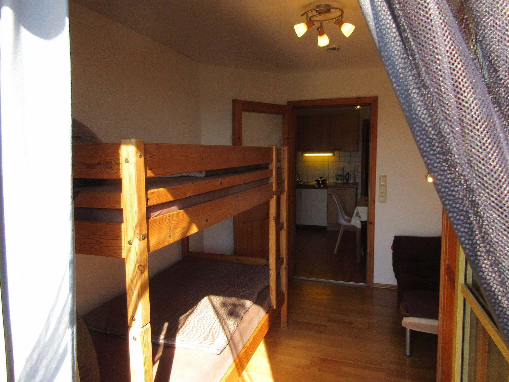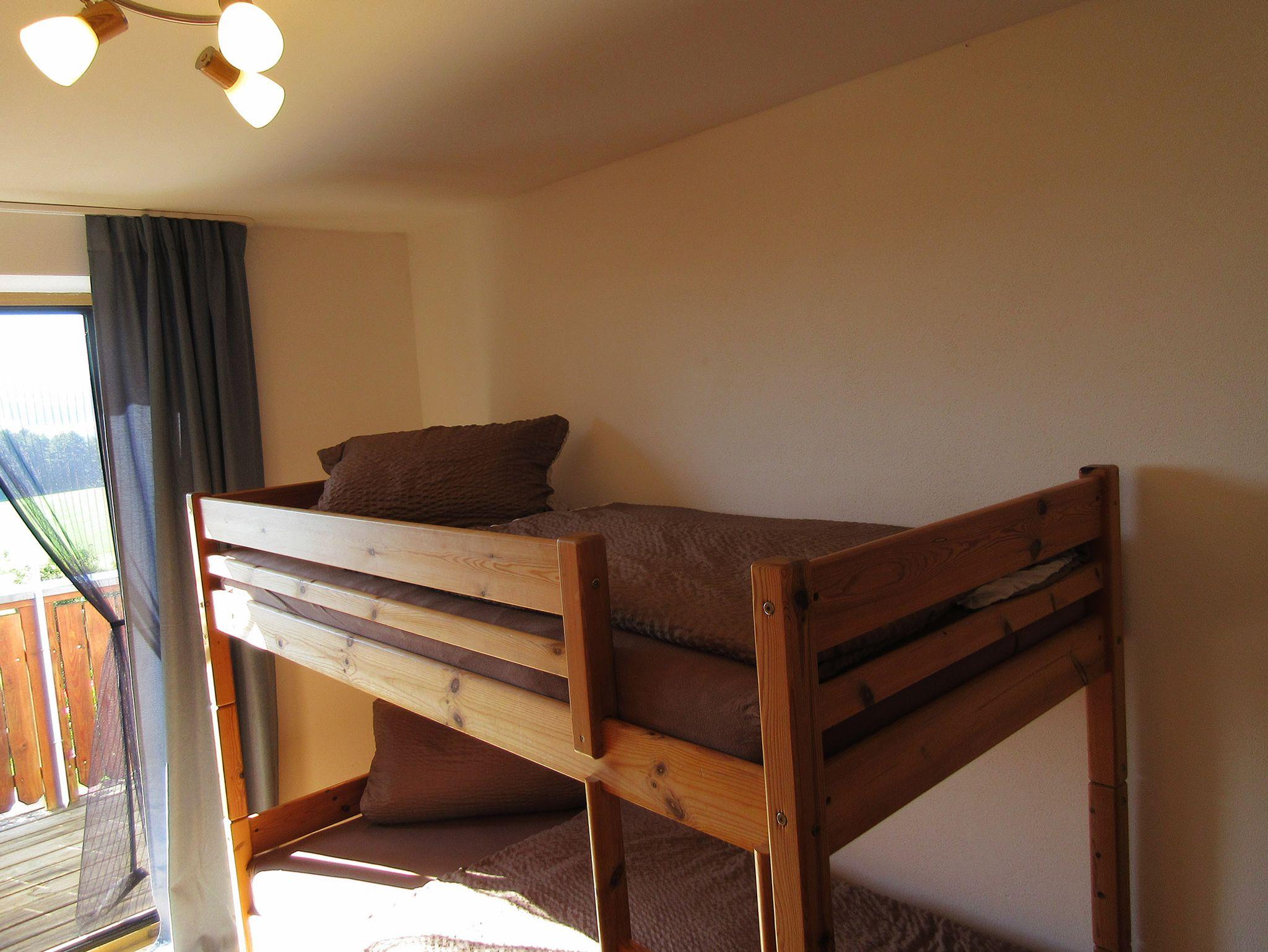 Die Wohnung besteht aus einem Schlafzimmer mit einem gemütlichen Doppelbett und einem zweiten Schlafzimmer mit praktischen Stockbetten, ideal für Familien mit Kindern. Zusätzliche Schlafmöglichkeiten bietet das ausziehbare Schlafsofa im Wohnbereich.