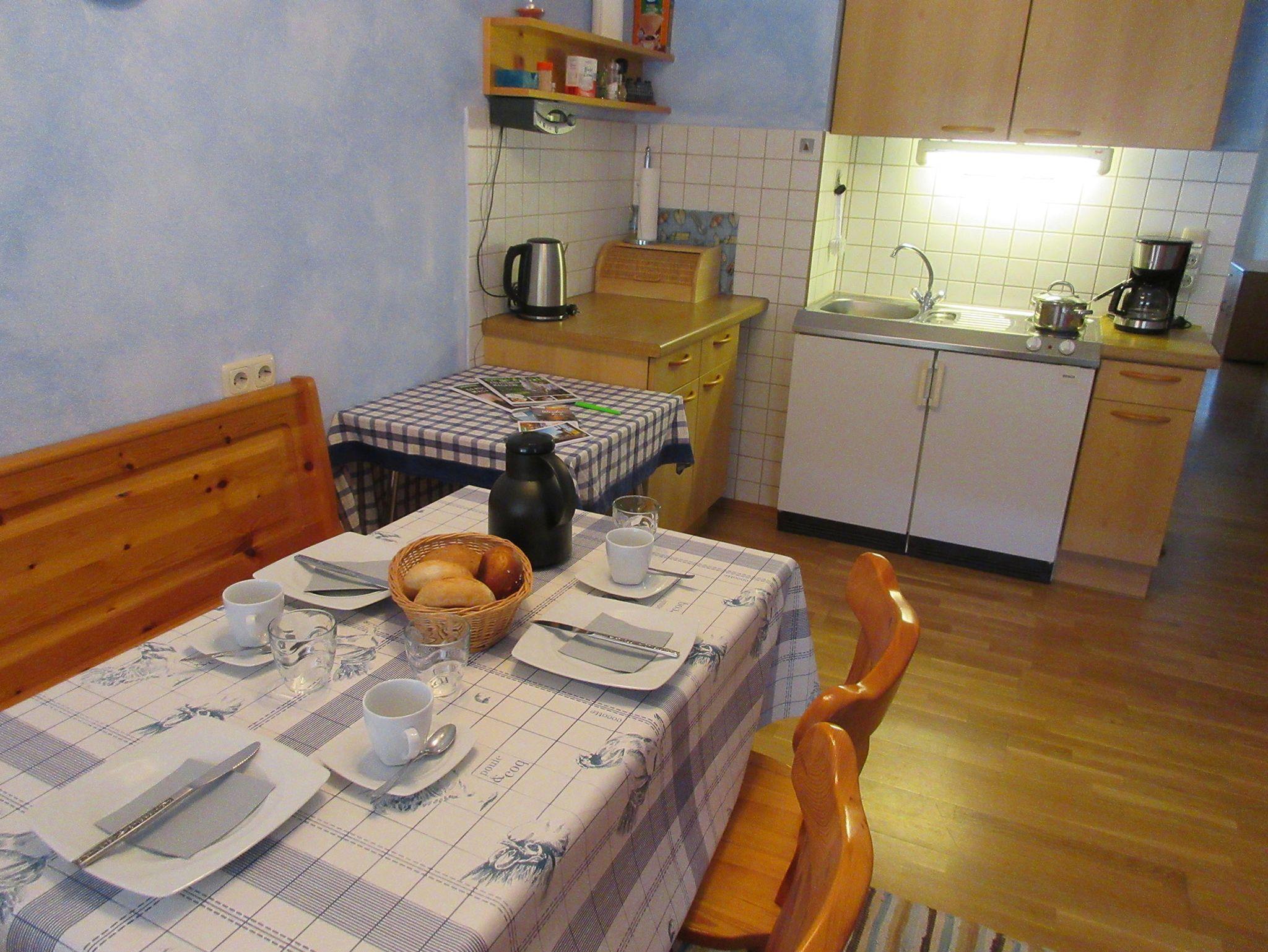 Die Küche ist komplett ausgestattet mit einer Kochnische, einem Kühlschrank und einem Tiefkühlfach. Hier können Sie nach Herzenslust kochen und sich kulinarisch verwöhnen lassen. Genießen Sie Ihre Mahlzeiten an der Essecke oder im Freien auf unserer schönen Liegewiese, wo Sie auch die Möglichkeit haben, zu grillen.