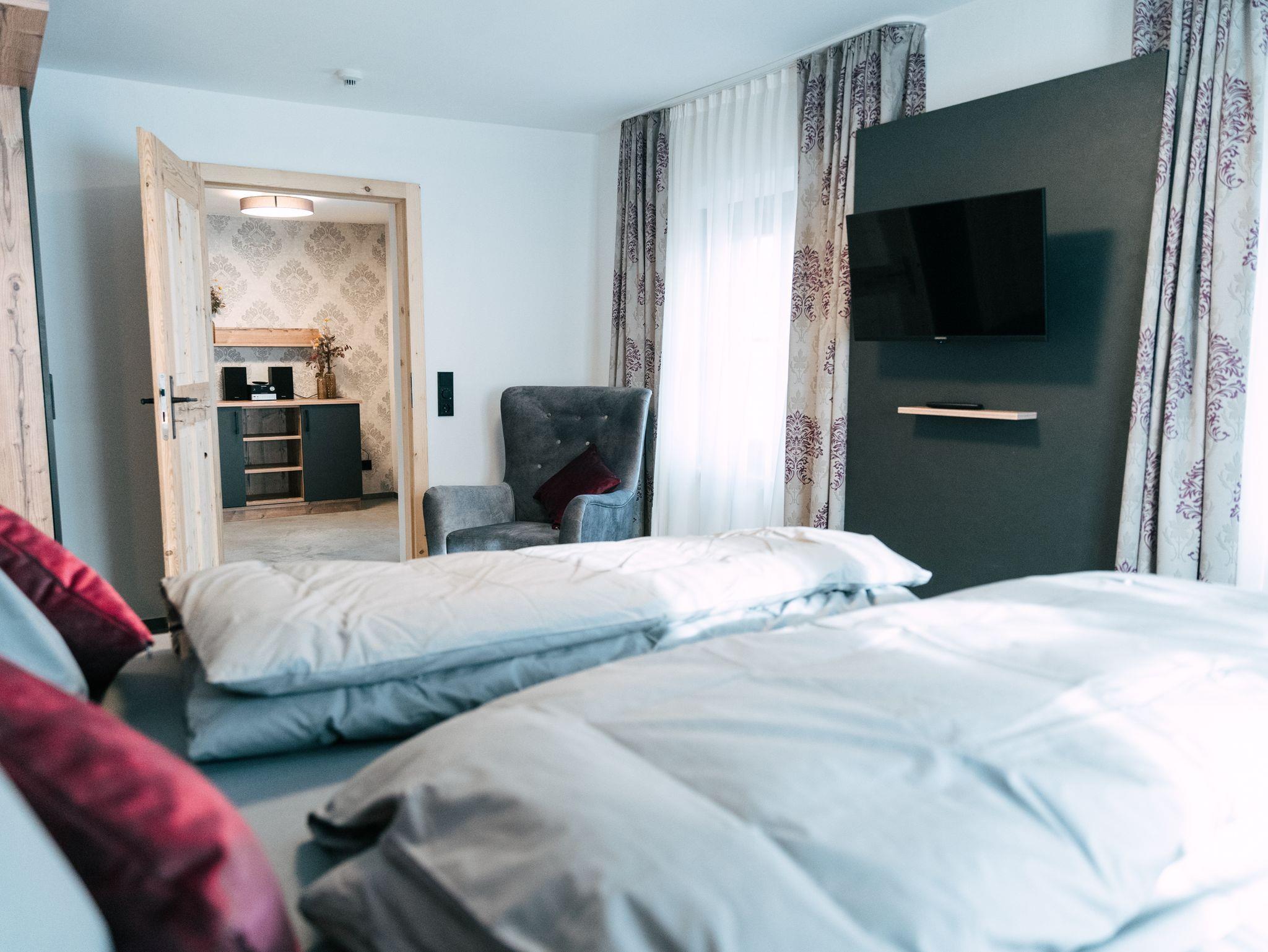 Willkommen in unserer geräumigen Ferienwohnung in Waging am See! Die 88 Quadratmeter bieten modernen Komfort und zeitgemäßes Design nach einer umfassenden Sanierung. Der Essbereich lädt zu gemeinsamen Mahlzeiten ein, die vollausgestattete Küche begeistert mit hochmodernen Geräten. Im Wohnbereich mit Flachbildfernseher erleben Sie entspannte Abende nach Erkundungstouren. Die beiden Schlafzimmer mit eigenen Fernsehern bieten erholsame Nächte. Das moderne Bad mit Dusche und WC rundet das Angebot ab. Im Wohnbereich und in einem Schalfzimmer sind zwei Schlafcouchen verfügbar, mit der die Wohnung Platz für 7 Personen bietet. Die Terrasse am Eingangsbereich lädt ein, die schönen Abende in Waging zu genießen. Die zentrale Lage, nur 100 Meter vom Ortskern, 800 Meter vom Bahnhof und 2 Kilometer vom Waginger See entfernt, ermöglicht einfache Erkundungen. Unser Restaurant unter den Wohnungen serviert bayerische Spezialitäten im gemütlichen Ambiente und hat im Sommer einen charmanten Biergarten. Buchen Sie jetzt Ihre Auszeit in unserer Ferienwohnung und entdecken Sie Waging am See neu. Wir freuen uns darauf, Sie willkommen zu heißen und Ihnen einen unvergesslichen Aufenthalt zu bieten!
