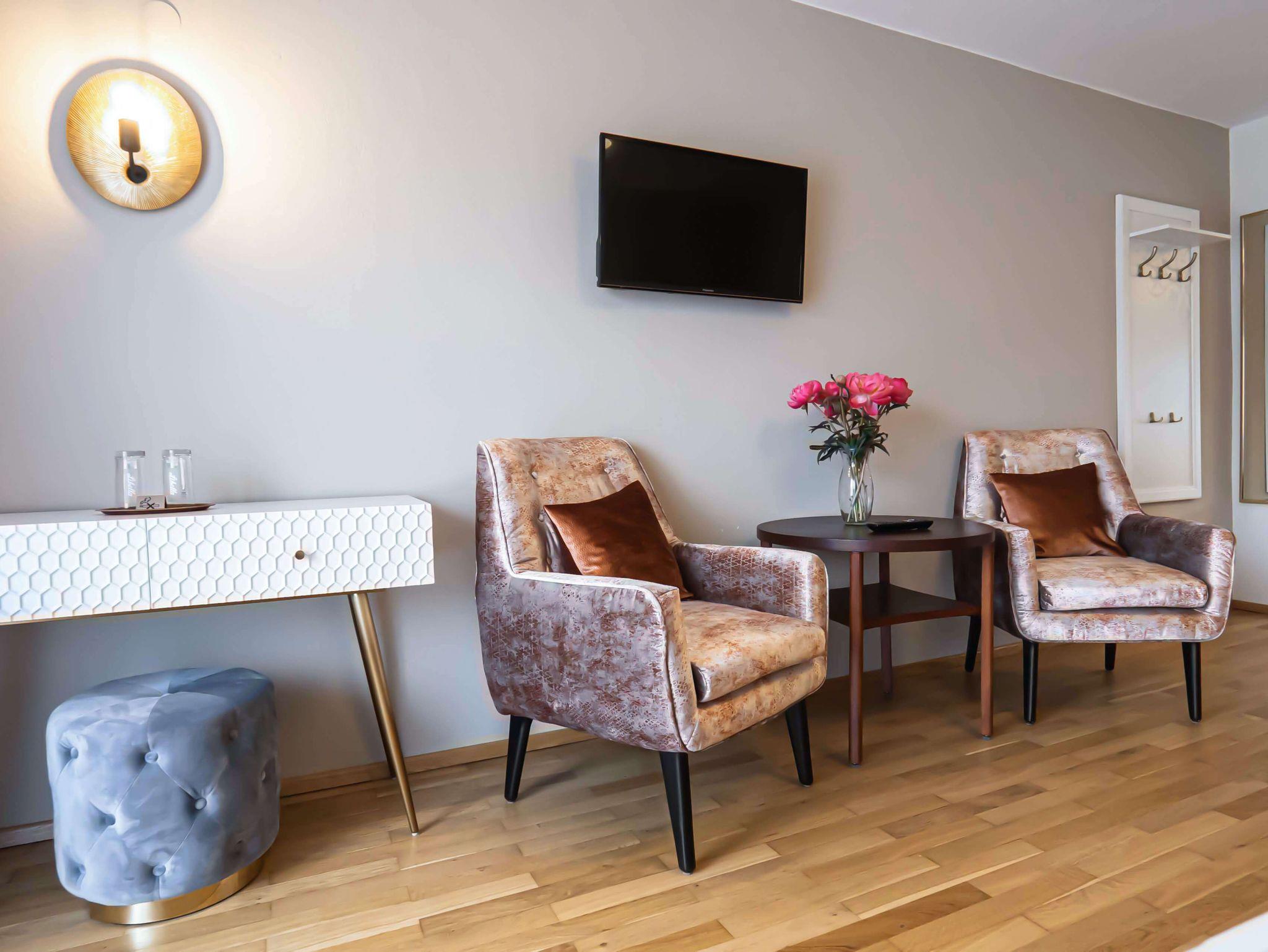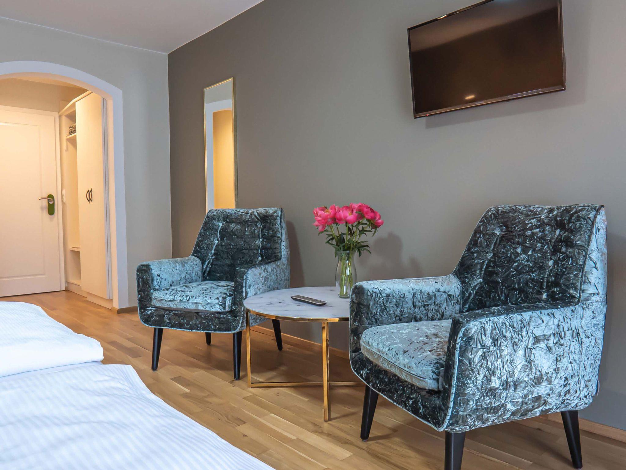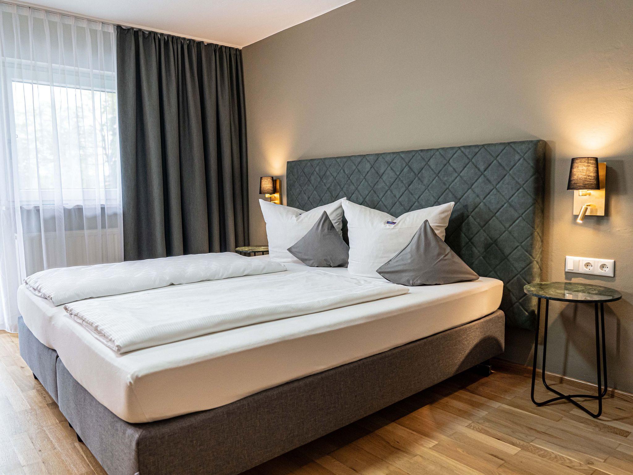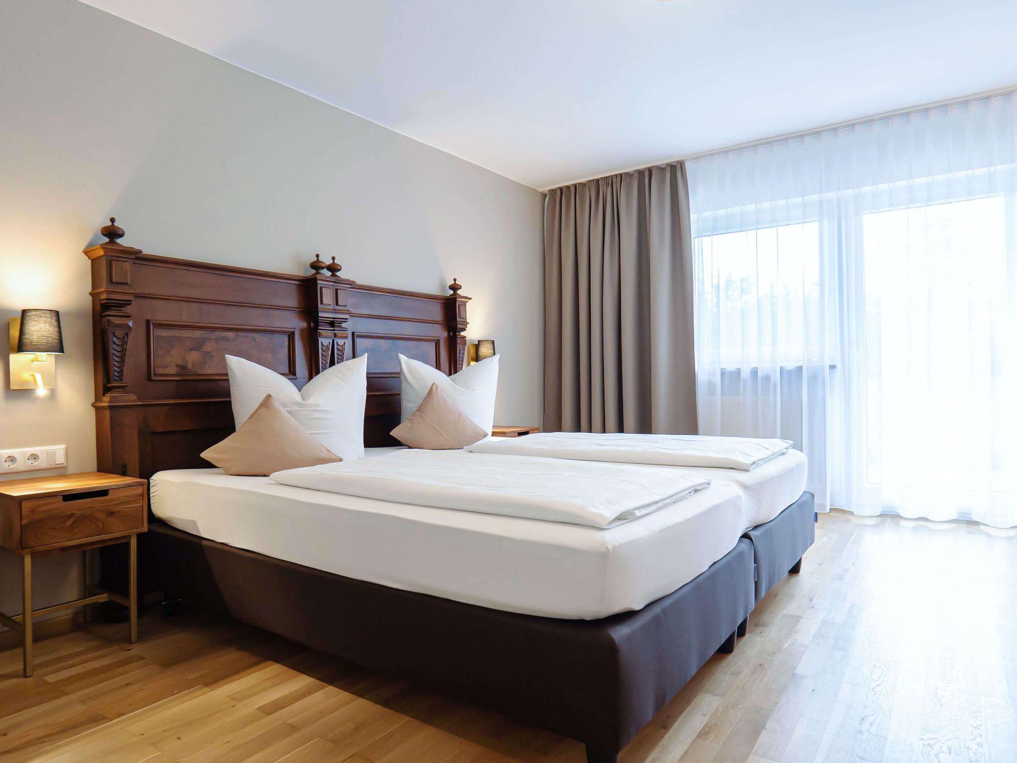 Großzügige und freundliche Doppelzimmer mit Blick in Richtung See, in den Obstgarten und auf das herrliche Panorama der Chiemgauer Alpen laden zum Verweilen & Entspannen ein.