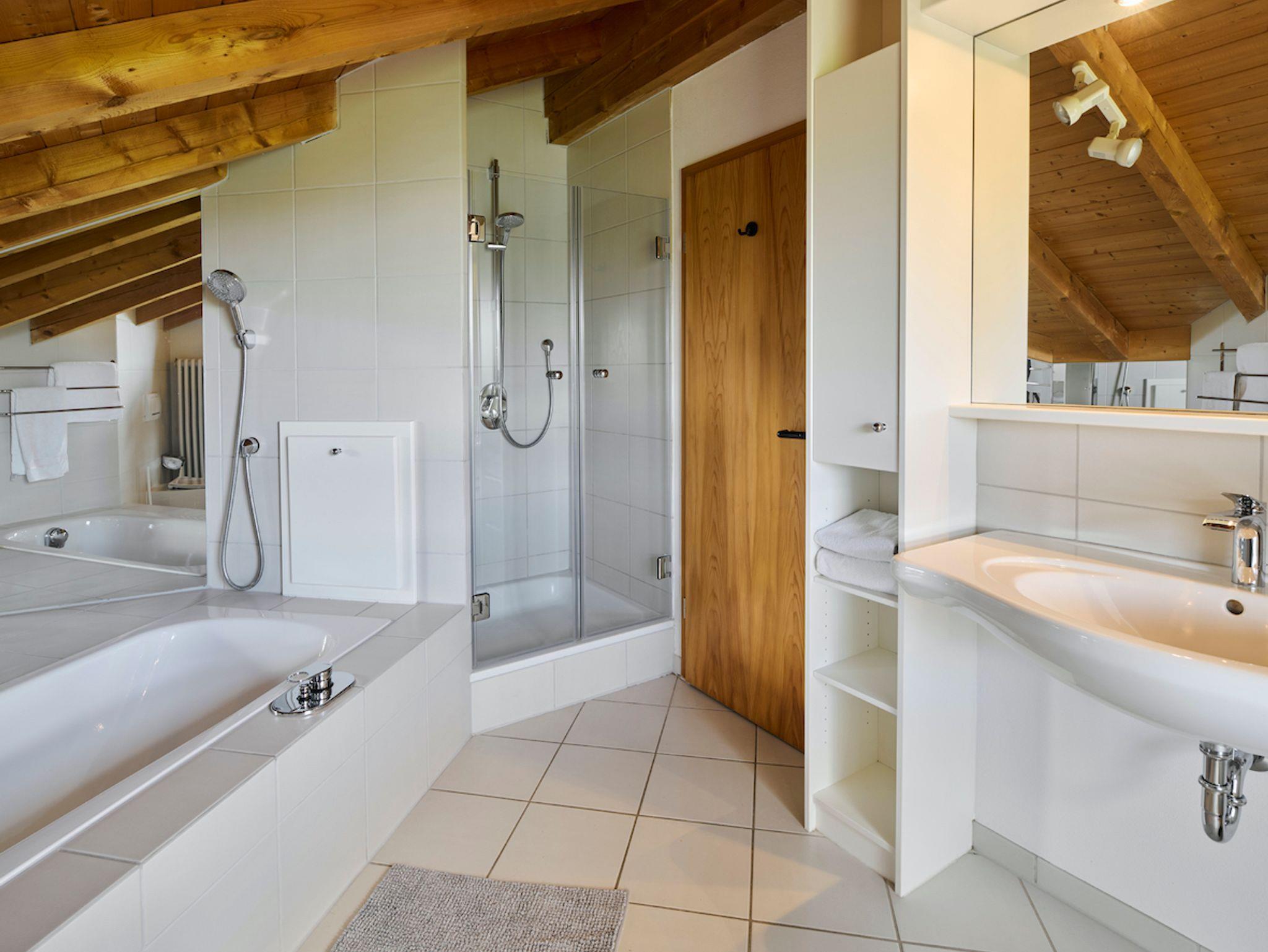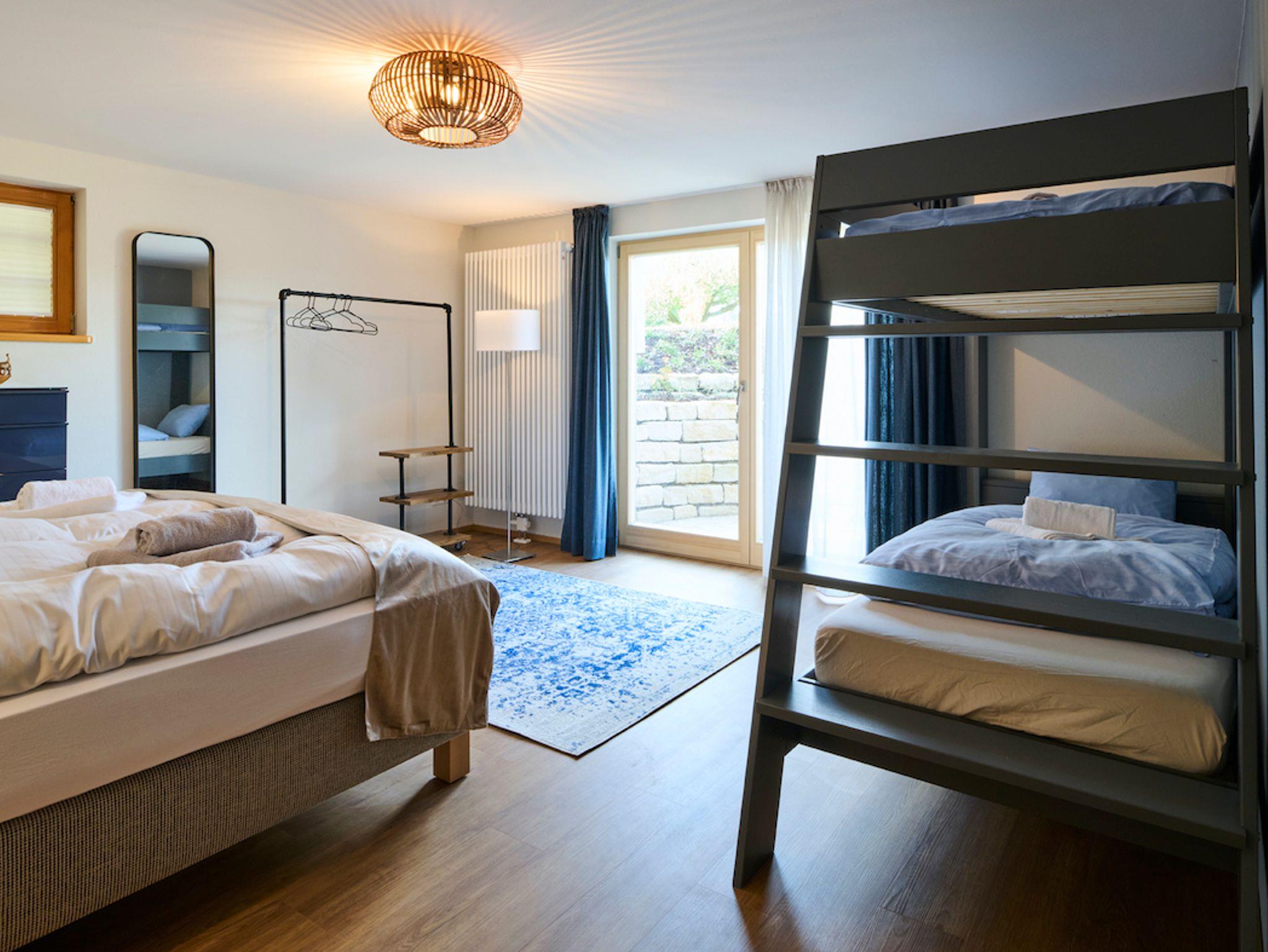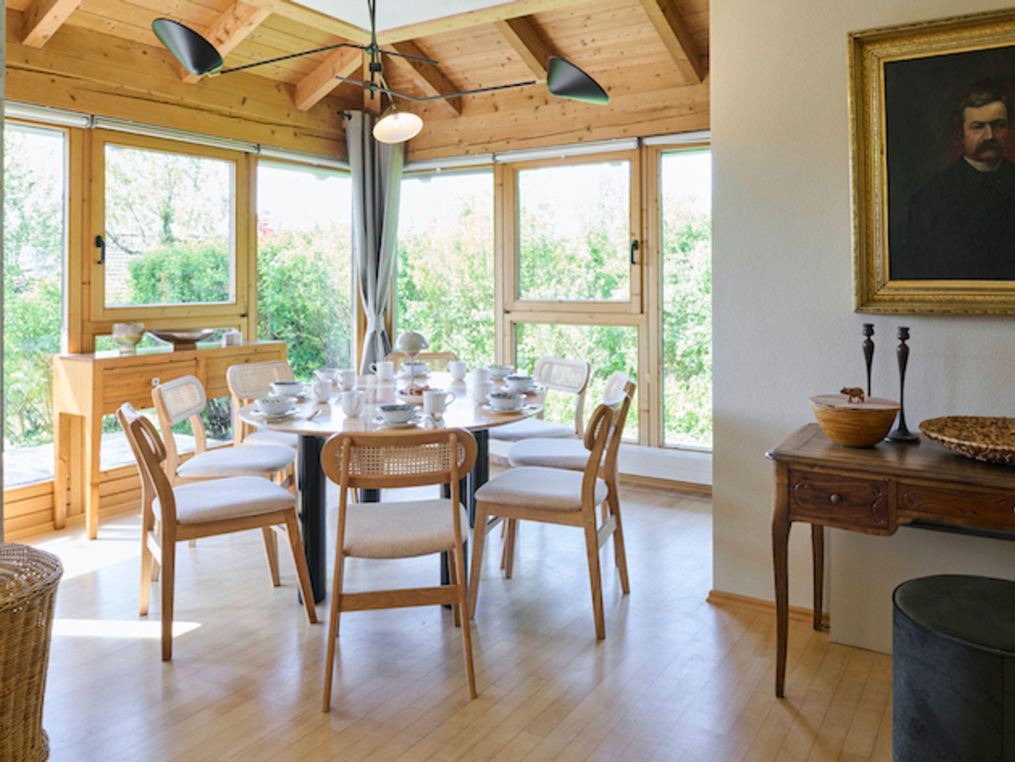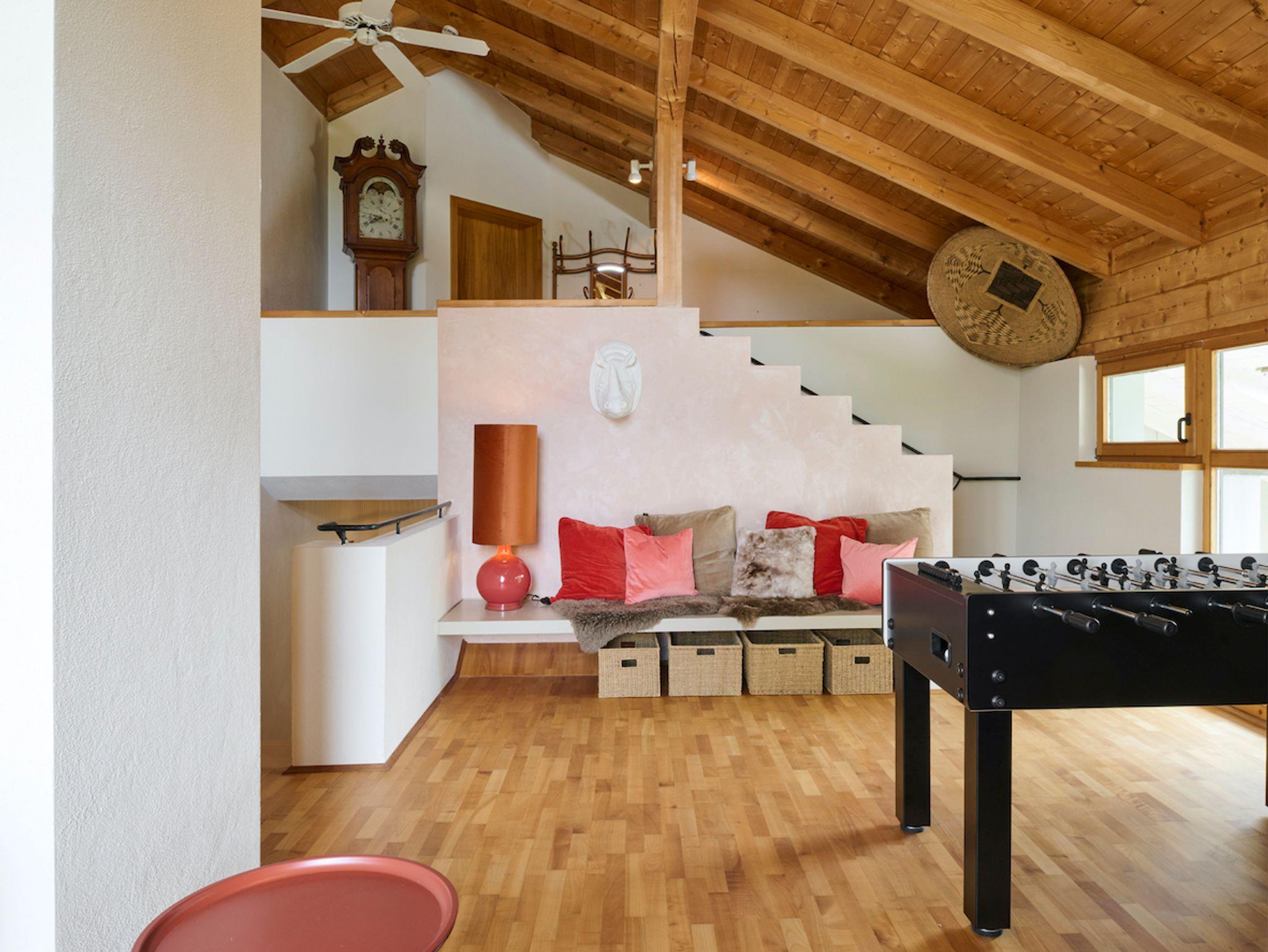 Das stilvolle Haus bietet zwei Terrassen und zwei Balkonen mit Blick in die Alpen. Das Haus wurde 2024 liebevoll saniert. Im großen Gemeinschaftbereich unter dem Holzbalkendach gibt es viele Möglichkeiten für Spiel und Unterhaltung mit Tischkicker, Bibliothek, Spielesammlung, Kamin und Flat-TV mit Sitzlandschaft.