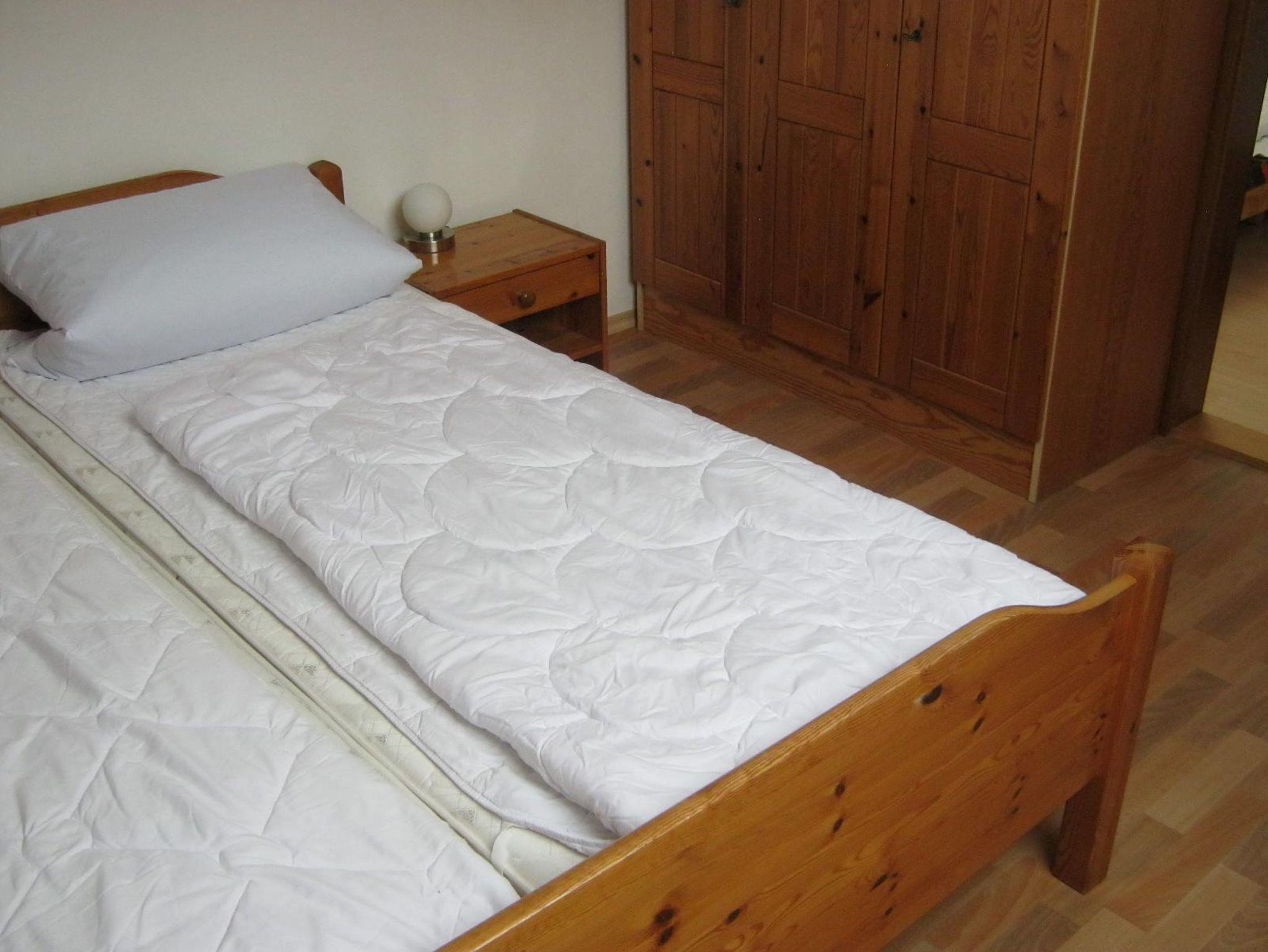 2 Schlafzimmer und ein Einzelbett im Wohnzimmer.