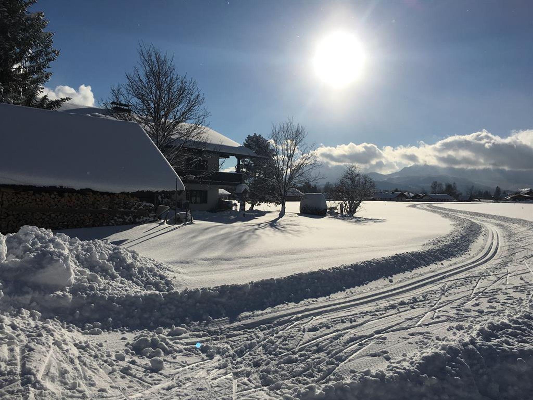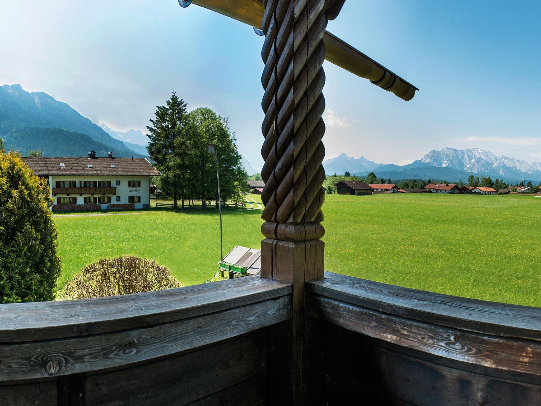 Unverbaut an einer großen Wiese gelegen. Ruhig und doch zentral. Grandioser Panoramablick. Großzügige Balkone . 4 stillvolle Ferienwohnungen. Großer Parkplatz. Loipe direkt am Haus. Achtung Golfer: 20% Ermäßigung auf Greenfee und Rangefee im GC Karwendel.