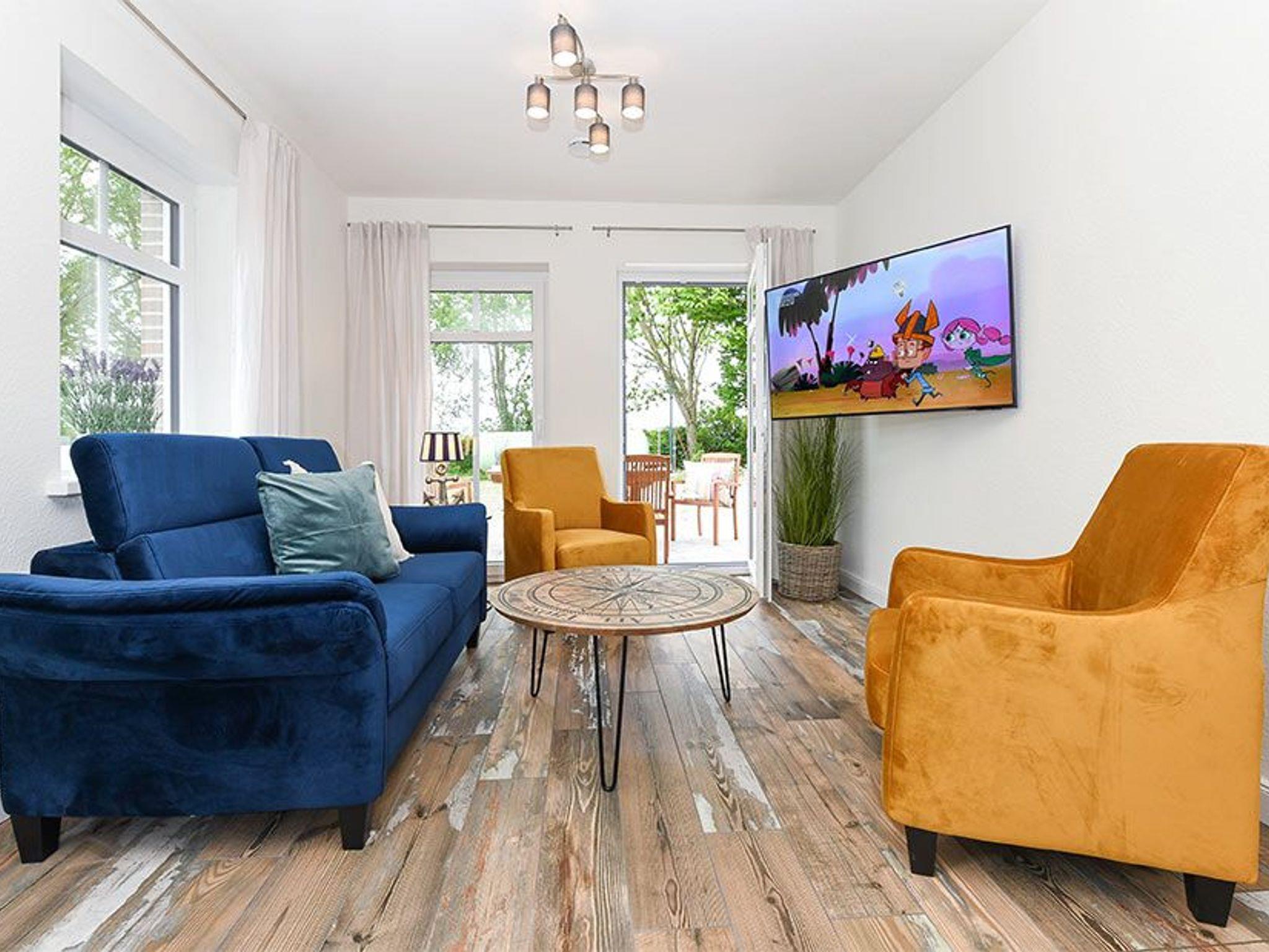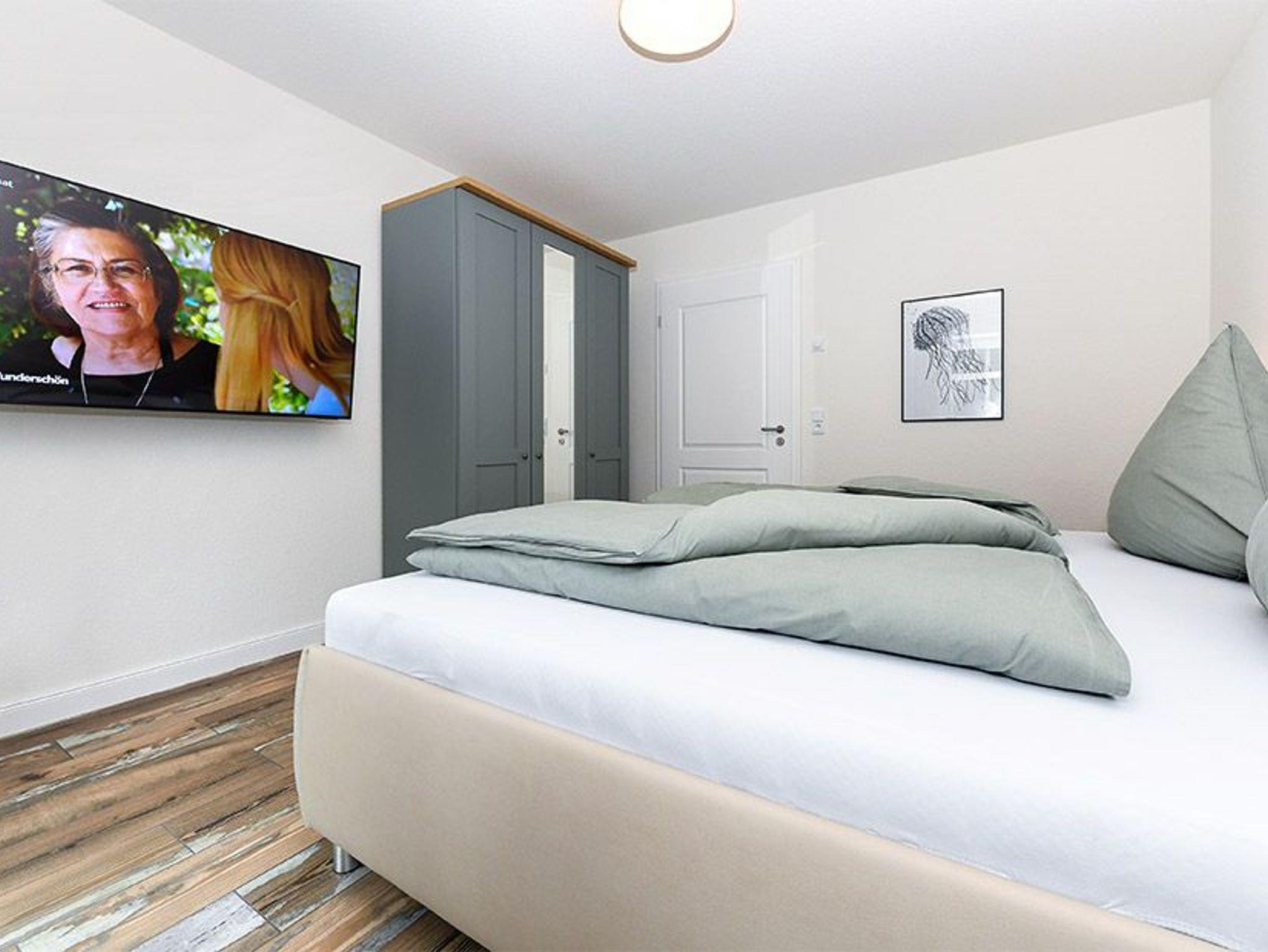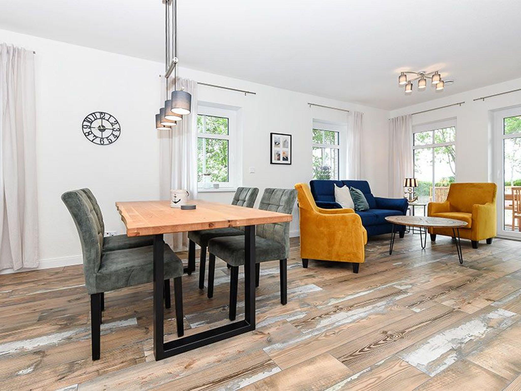 Größe ca. 120 Quadratmeter, Wohnraum mit integrierter Küche, Schlafzimmer, zweites separates Schlafzimmer/Kinderzimmer, drittes separates Schlafzimmer/Kinderzimmer, Badezimmer mit Dusche, Waschtisch und WC, zweites Badezimmer mit Dusche, Waschtisch und WC, Erdgeschoss, Obergeschoss, behindertenfreundlich, rollstuhlfreundlich, optimal für 2 bis 6 Personen.