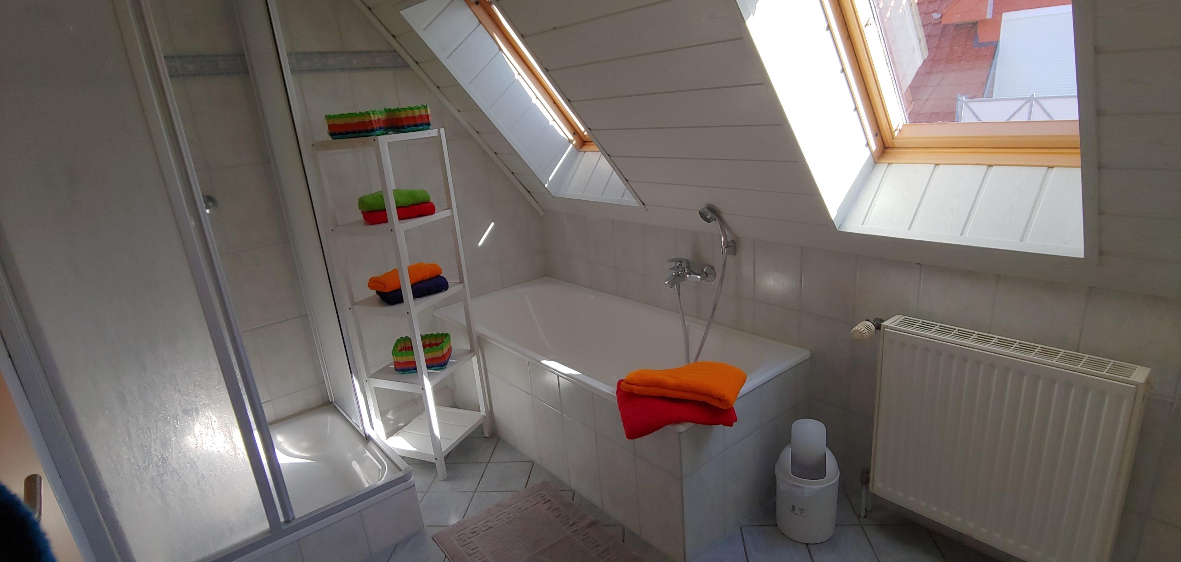 Badrum med dusch och badkar