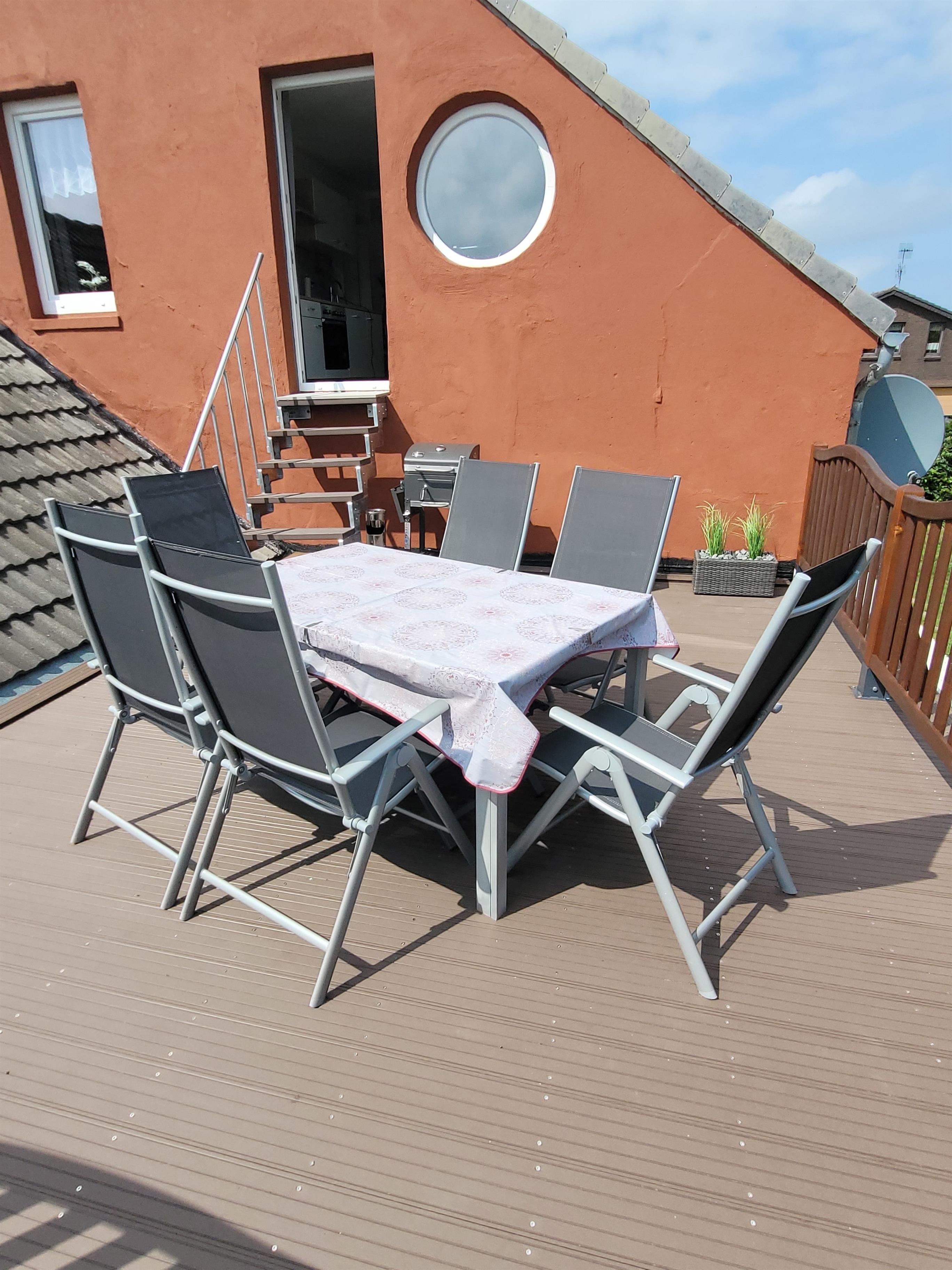 Über die Küche gelangt man zur südlich gelegenen Dachterrasse, welche mit einem einzigartigen Ausblick sowie Terrassenmöbel und Grill zum Erholen einlädt. Das Rauchen in der Wohnung ist nicht gestattet .
