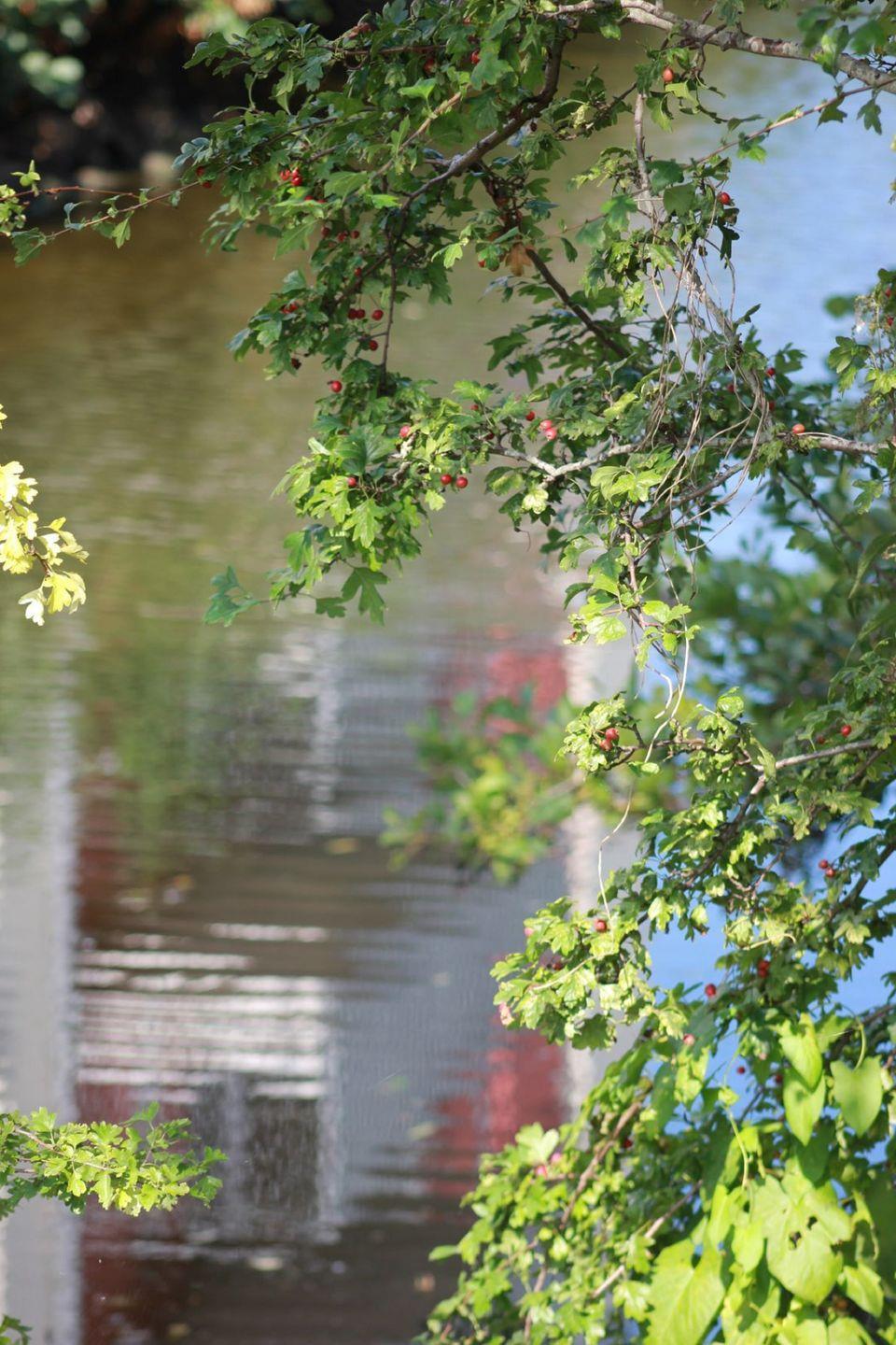 Ein großzügiger, möblierter und überdachter, nach Süden zum Wasserlauf ausgerichteter Balkon lädt zum Verweilen ein.