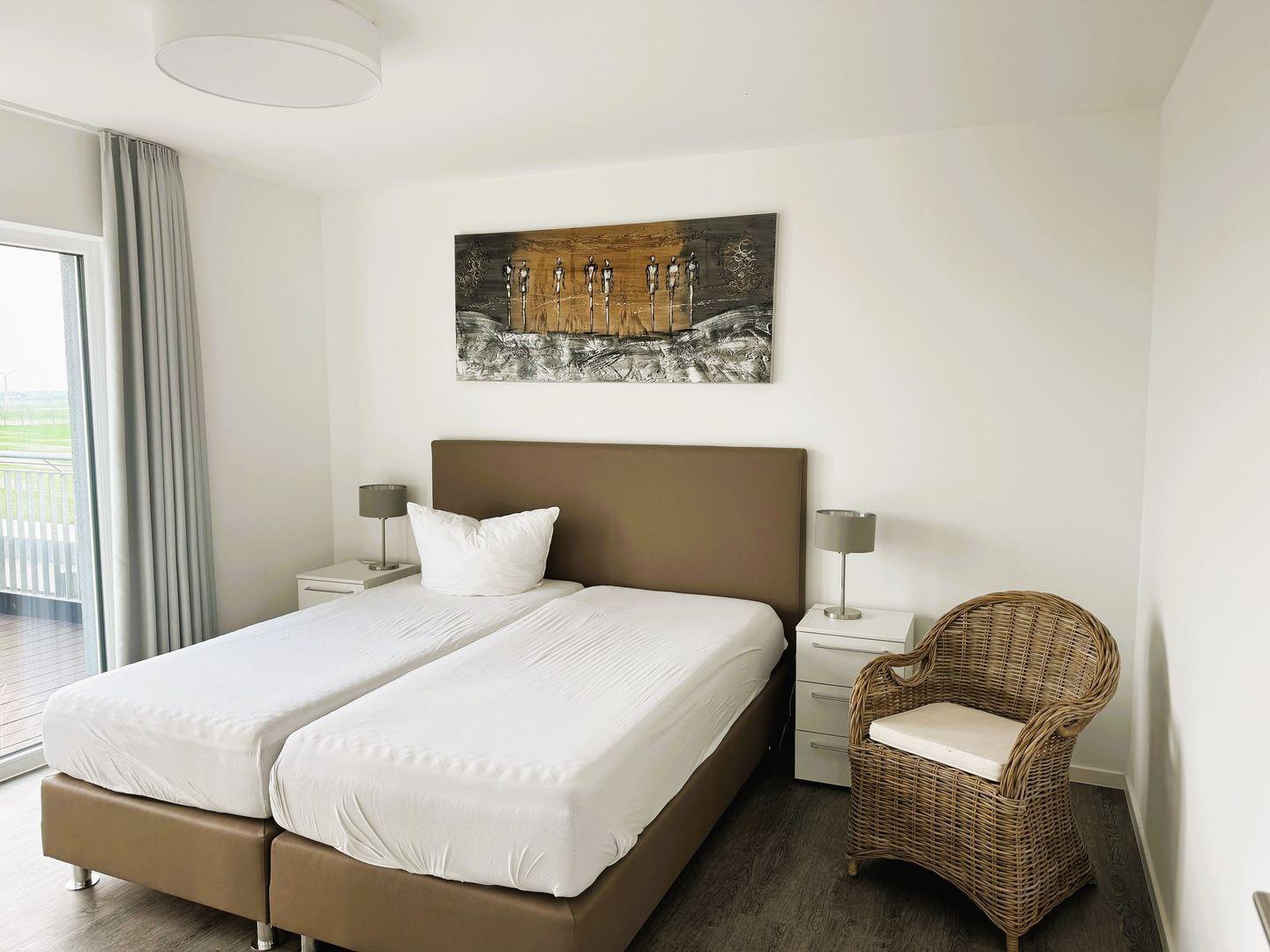 Die Ausstattung der Schlafzimmer mit Boxspringbetten lassen Hotelcharakter zu.