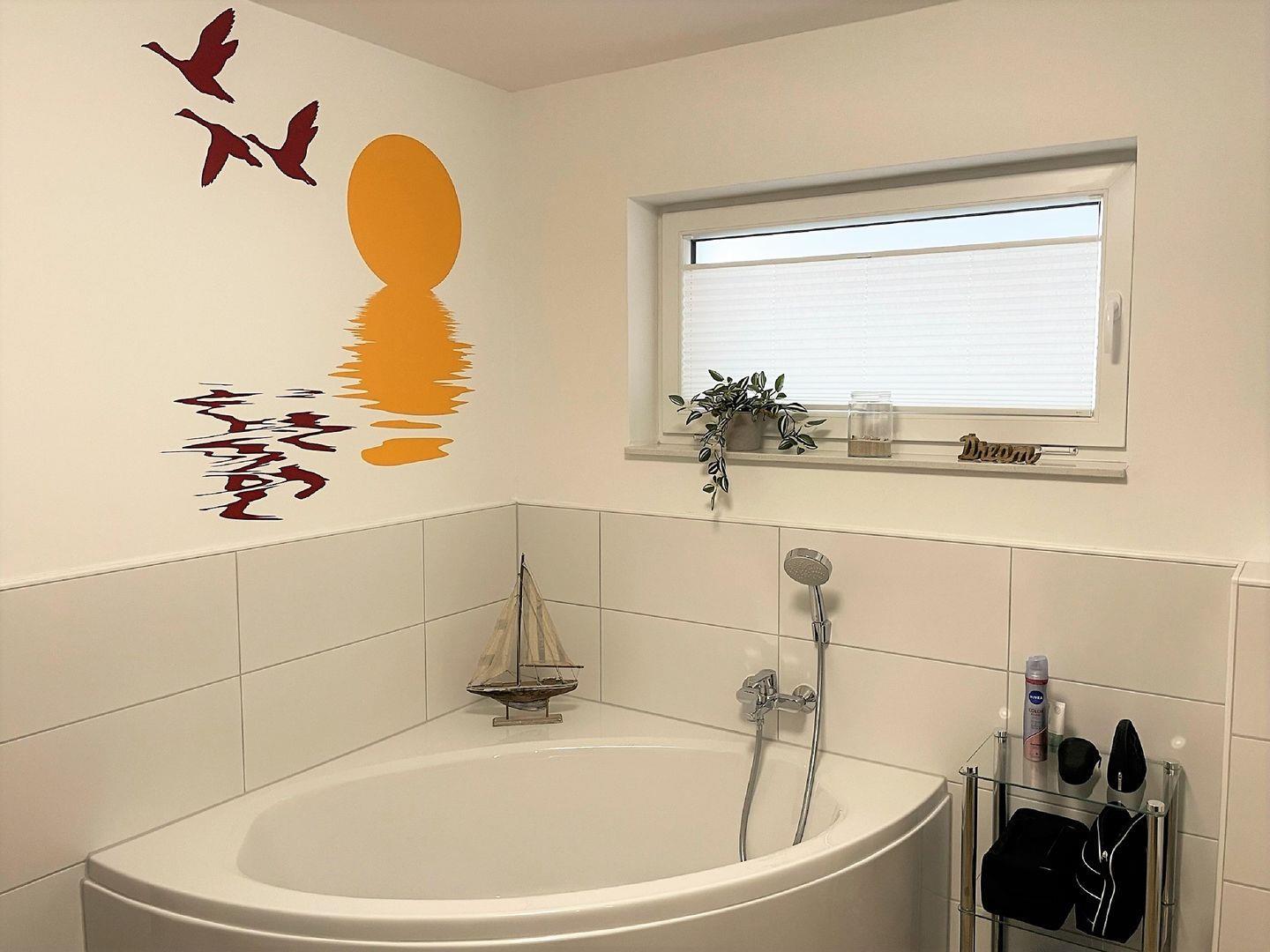 An stürmischen und/oder regnerischen Tagen wird das Badezimmer mit seiner Vollausstattung zum Wellnesstempel.