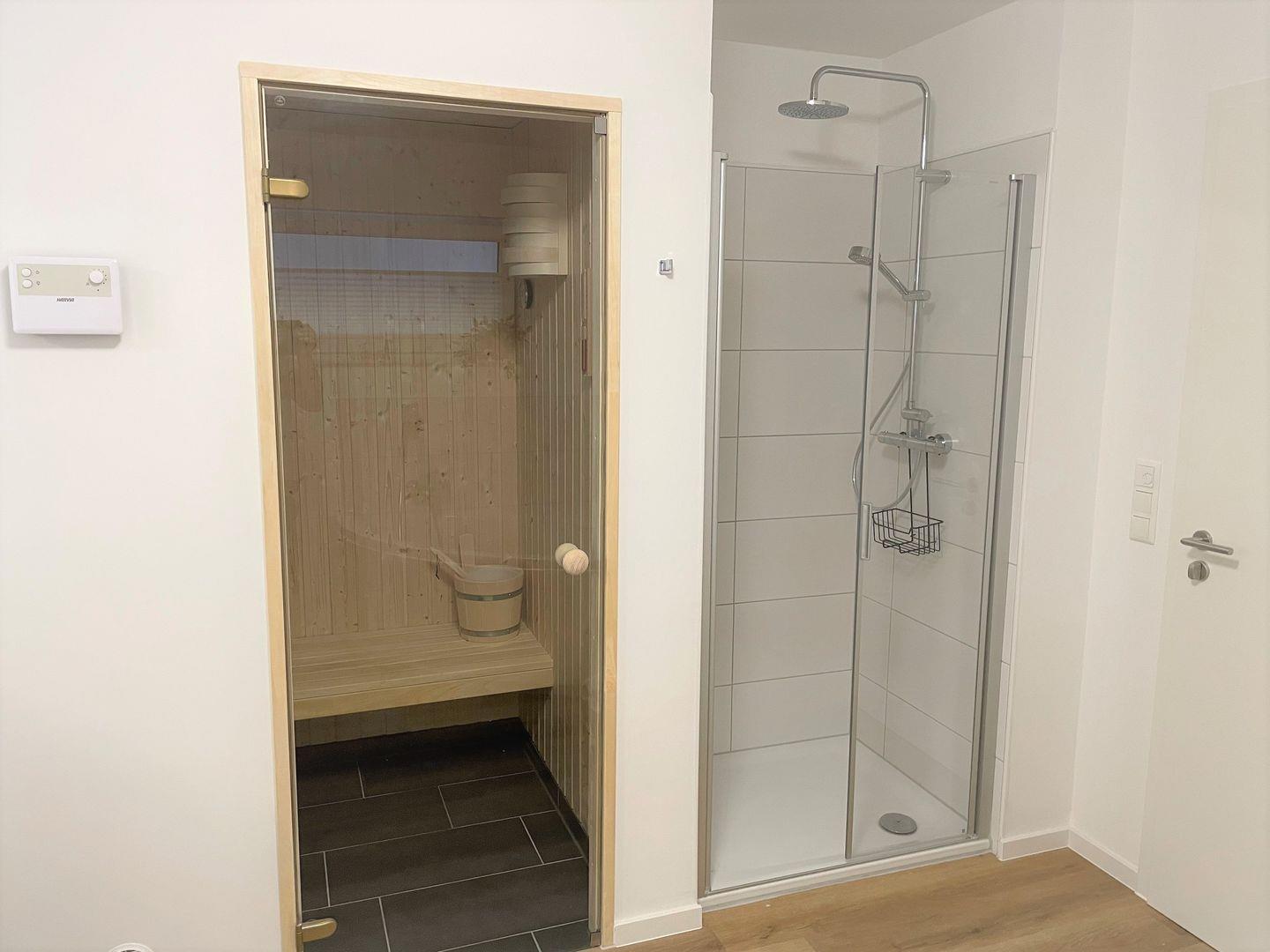 Eine Sauna, eine moderne Dusche und eine Badewanne bieten den nötigen Komfort zur Erholung.