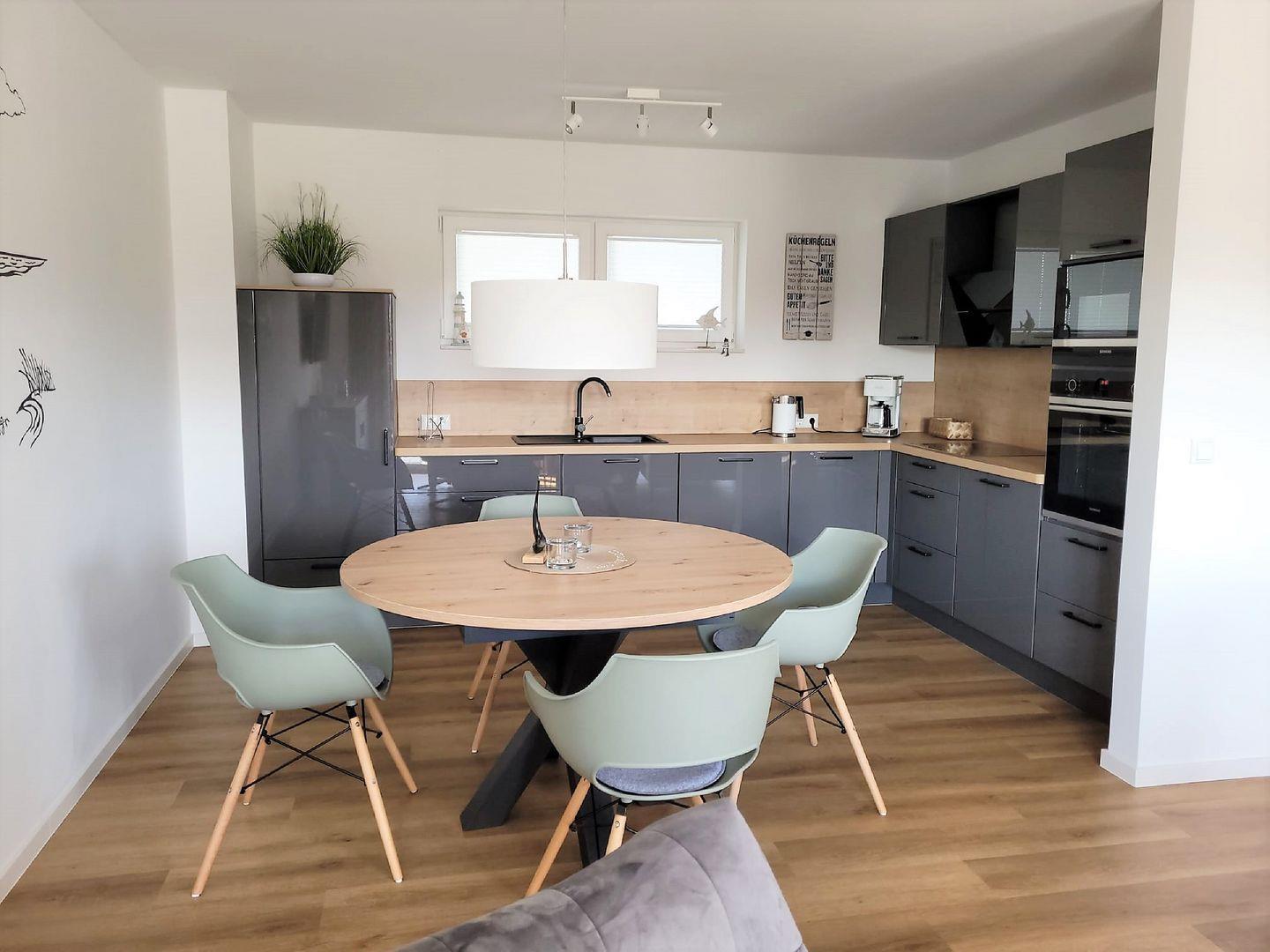Der Küchenbereich ist modern und offen zum Wohn-Essbereich gehalten und mit einer hochwertigen Einbauküche ausgestattet.