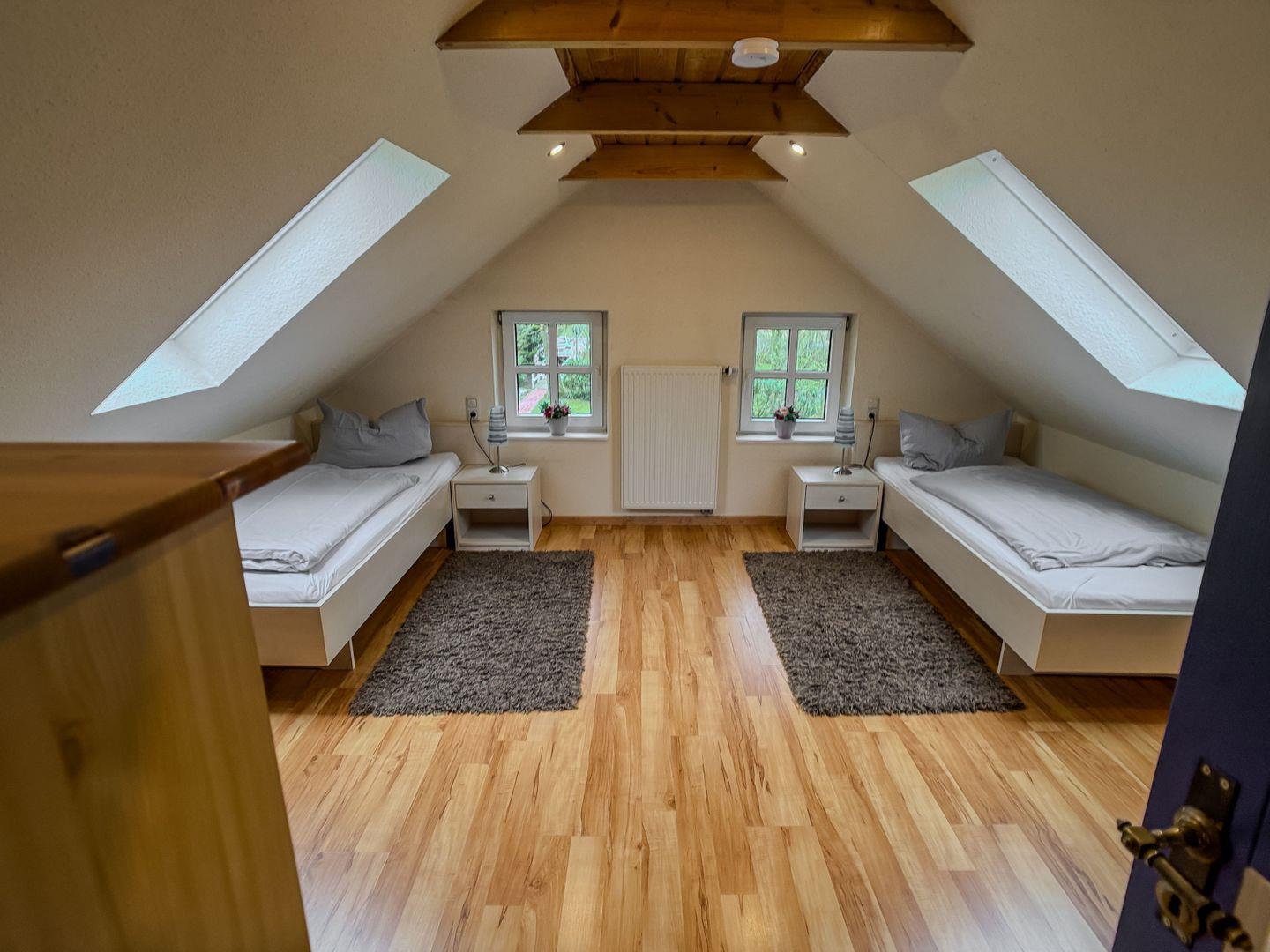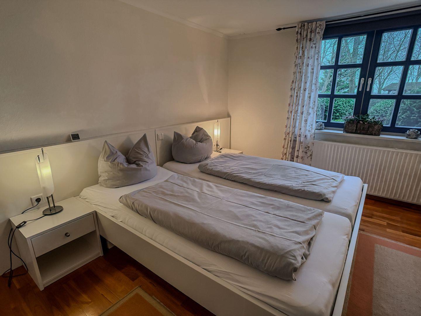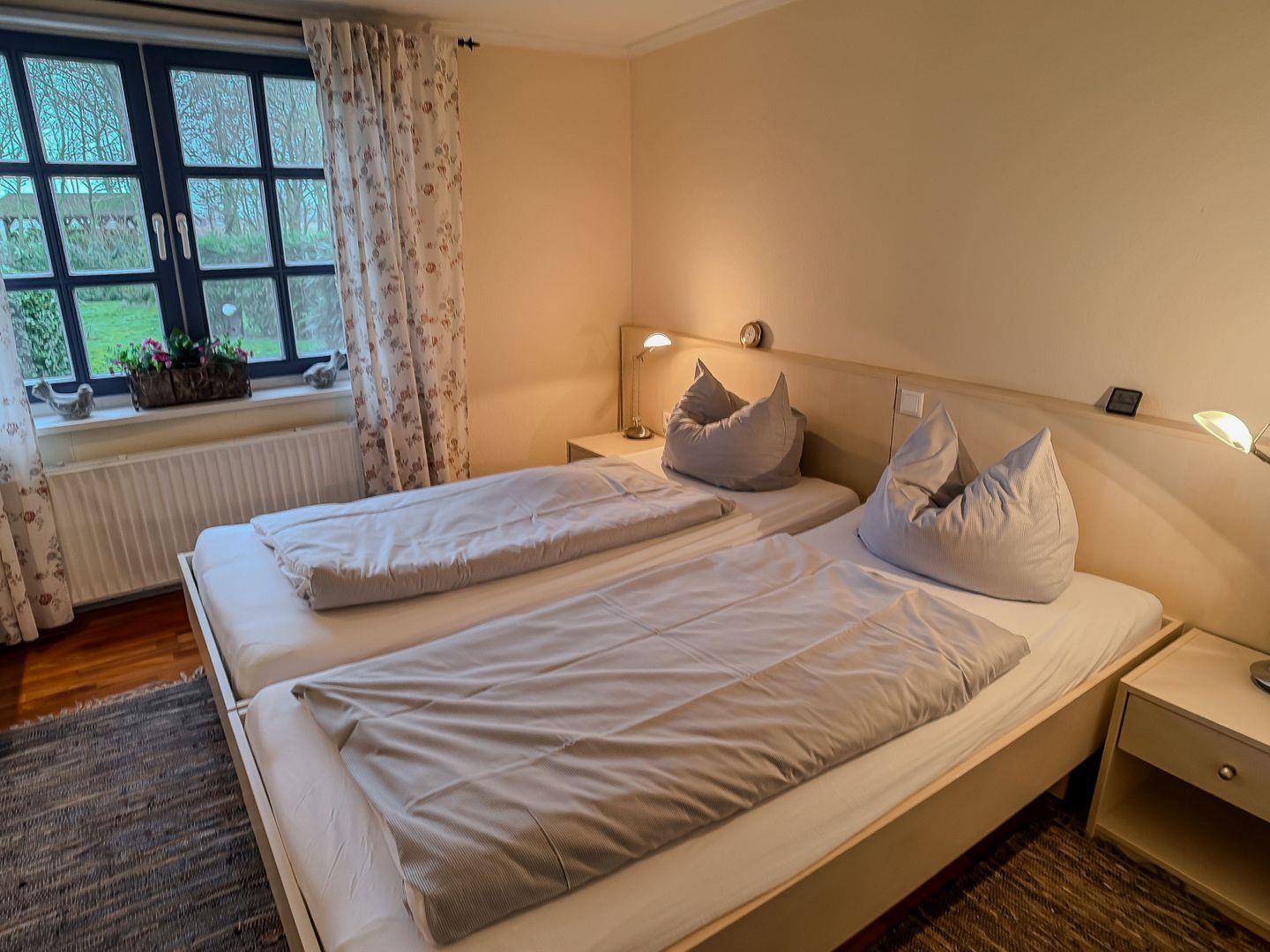 Haus Hölle verfügt über 3 reizende Schlafzimmer mit jeweils 2 Betten: 2 Doppelzimmer im Erdgeschoss und eine urgemütliche Dachkammer mit zwei Einzelbetten.