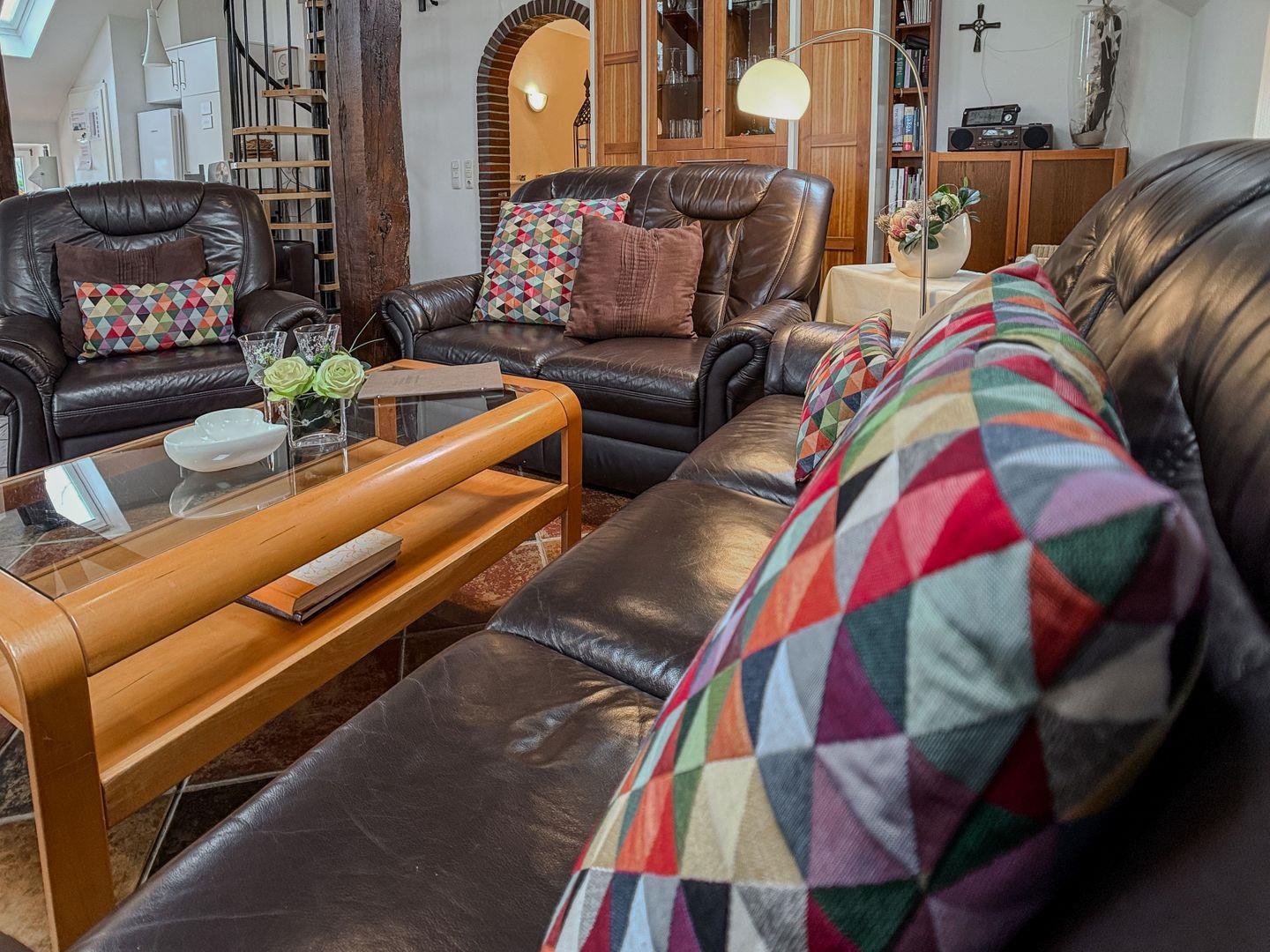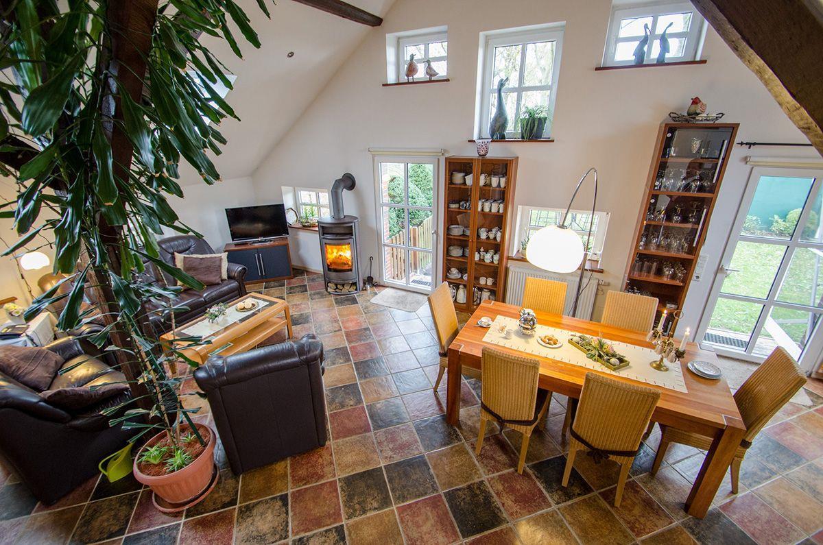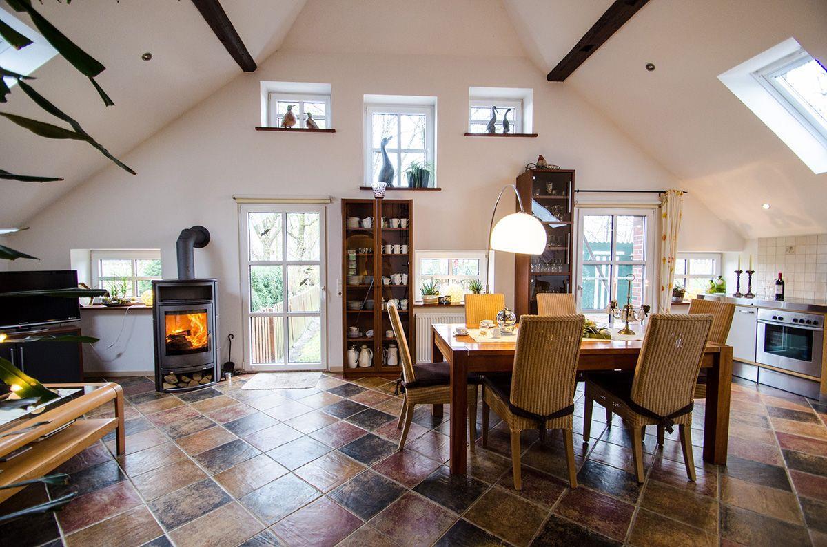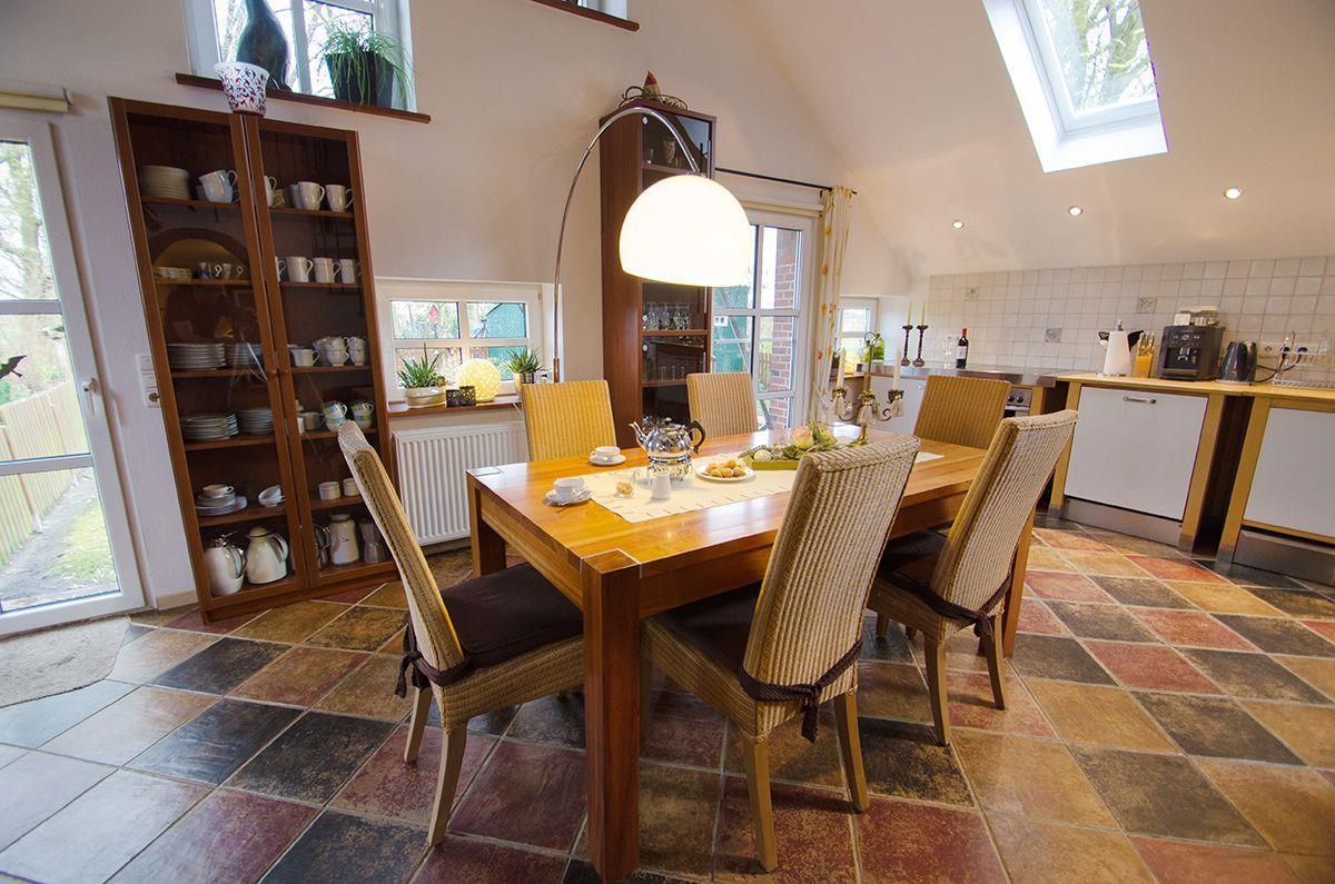 Am großen Esstisch ist für alle Platz, eine kleine Galerie dient zum Rückzug, die Sitzecke lockt mit TV, DVD-Player und kleiner Musikanlage und macht auch Schietwettertage zu einer gemütlichen Angelegenheit.