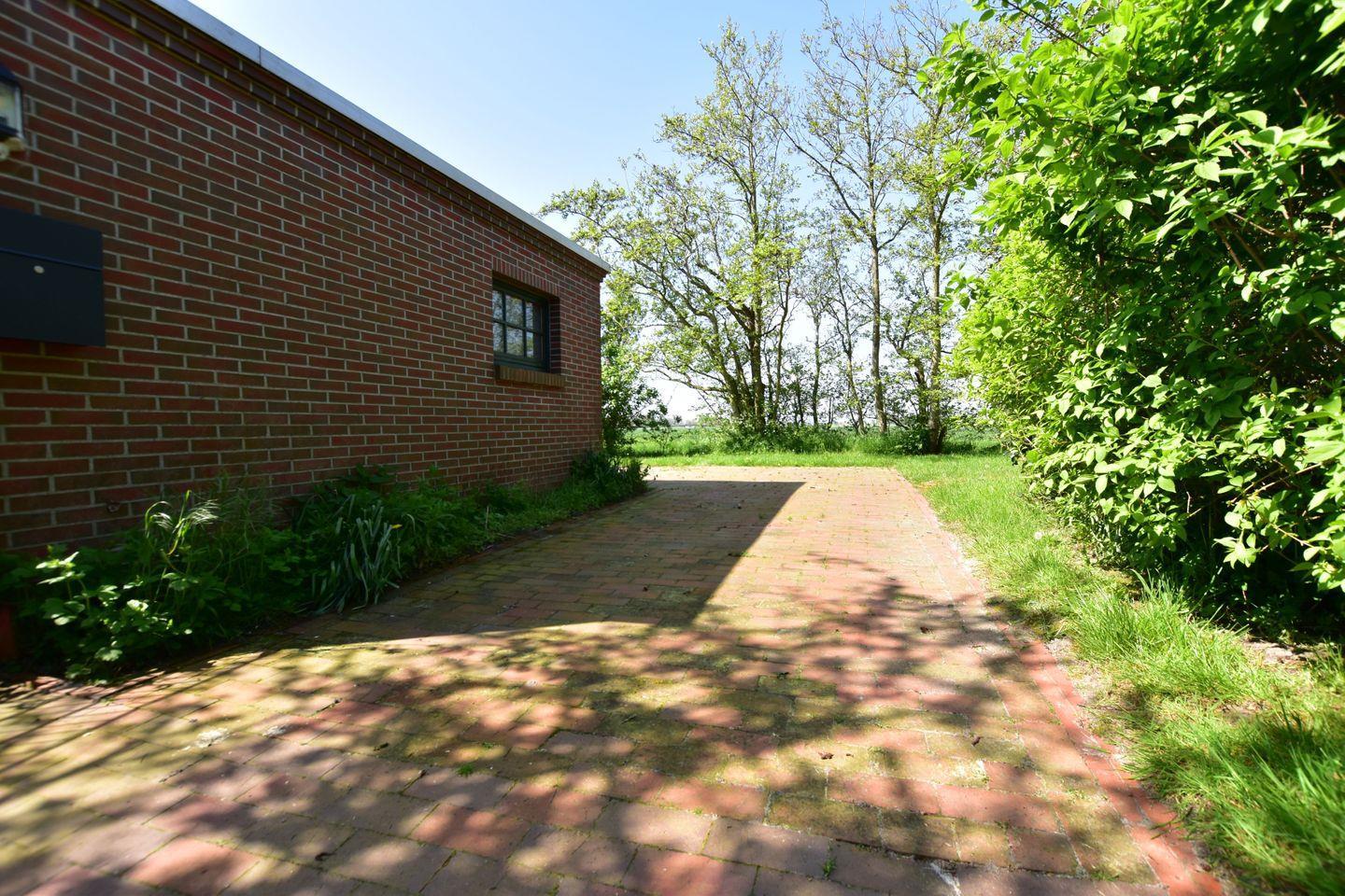 Das Ferienhaus liegt auf einem ruhigen Grundstück mit großem Garten direkt am Deich und bietet Platz für bis zu fünf Gäste in zwei Schlafzimmern. Neben dem Wohnzimmer befinden sich eine Küche mit Essbereich, ein Kinderzimmer mit drei Einzelbetten, ein Schlafzimmer mit Doppelbett, Bad und WC.