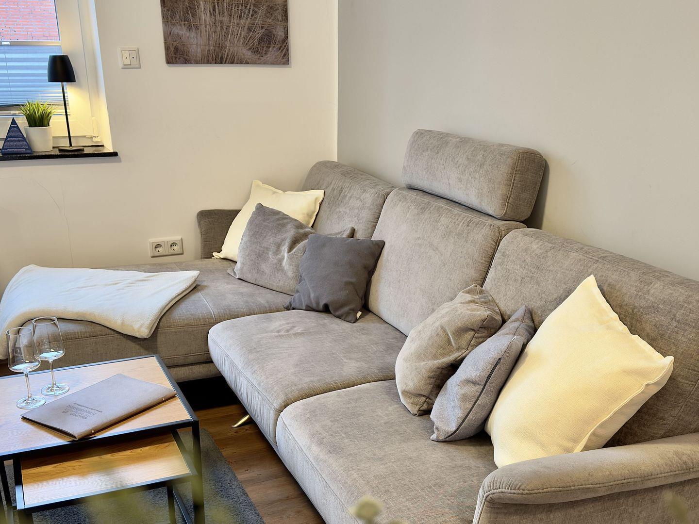 Im Erdgeschoss gelegen, erreichen Sie die vollsanierte Wohnung über nur wenige Stufen der gepflegten Anlage. Das stilvoll eingerichtete Wohn- / Schlafzimmer mit seiner gemütlichen Couch lädt zum Verweilen ein und ist durch den angrenzenden, großzügigen Balkon lichtdurchflutet. Das angrenzende offene Schlafzimmer verfügt über ein großes, hochwertiges Doppelbett und grenzt ebenso wie der Wohnzimmerbereich direkt am Balkon mit Blick auf den Siel. Genießen Sie wundervolle Stunden in der Abendsonne in diesem kleinen aber feinen Feriendomizil.