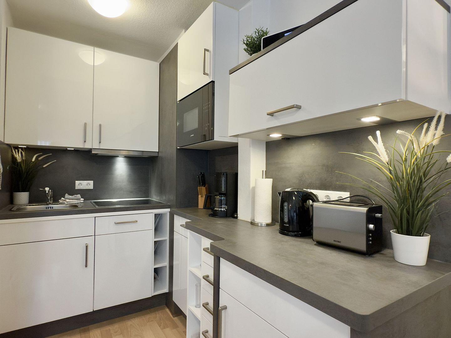 Renovierte 2 Zimmer Wohnung 40qm mit separatem Schlafzimmer (2 Einzelbetten), moderner Wohnküche und Balkon.