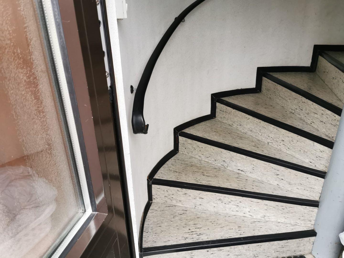 Über eine elegante Spindeltreppe gelangen Sie in den ersten Stock, wo sich Ihr neues Zuhause auf Zeit befindet.
