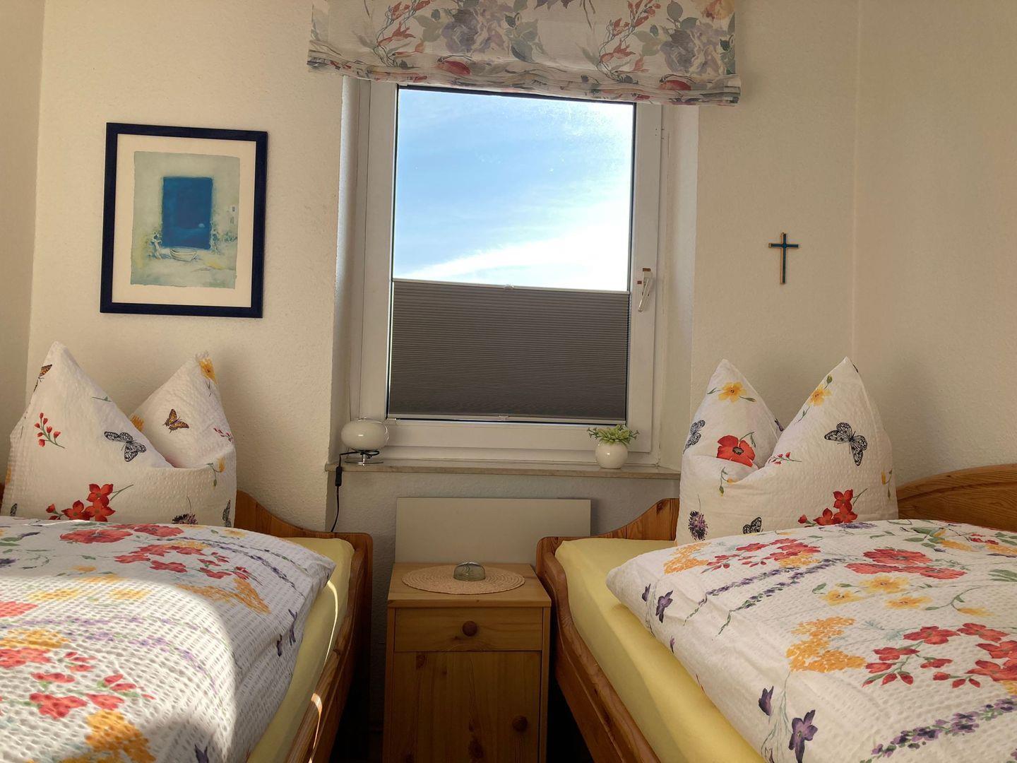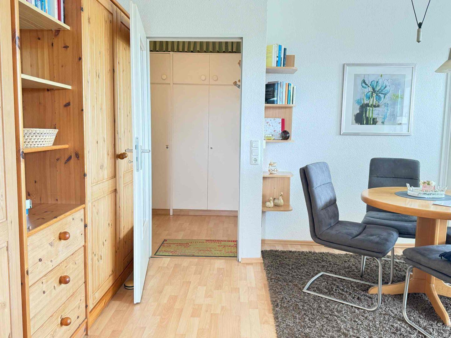 Diese helle gemütlich eingerichtete Wohnung mit einem Schlafzimmer für 2-3 Personen mit Internet befindet sich in der zweiten Etage. Die Küche ist mit Spülmaschine, Plattenherd, Mikrowelle, Wasserkocher, Eierkocher und Toaster ausgestattet. Im Wohnzimmer befindet sich eine neue Schlafcouch, 2 Sessel, Flachbild-TV, CD-Radio, viele Bücher und Gesellschaftsspiele. Der große Balkon zur Meerseite hat einen wunderschönen Ausblick.