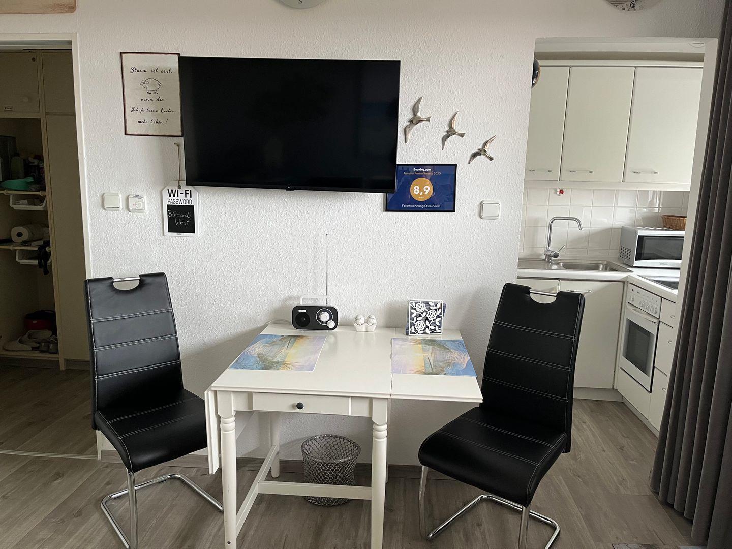 Diese helle und gemütliche Einzimmerwohnung, in der 3`ten Etage, mit Blick auf Horumersiel, ist gerade mit allergikerfreundlichem Laminatboden neu renoviert worden. Im kombinierten Wohn- und Schlafraum befindet sich eine neue Sofaecke, ein Flachbildfernseher, ein doppeltes Schrankbett und eine gemütliche Essecke. Haustiere nicht erlaubt .
