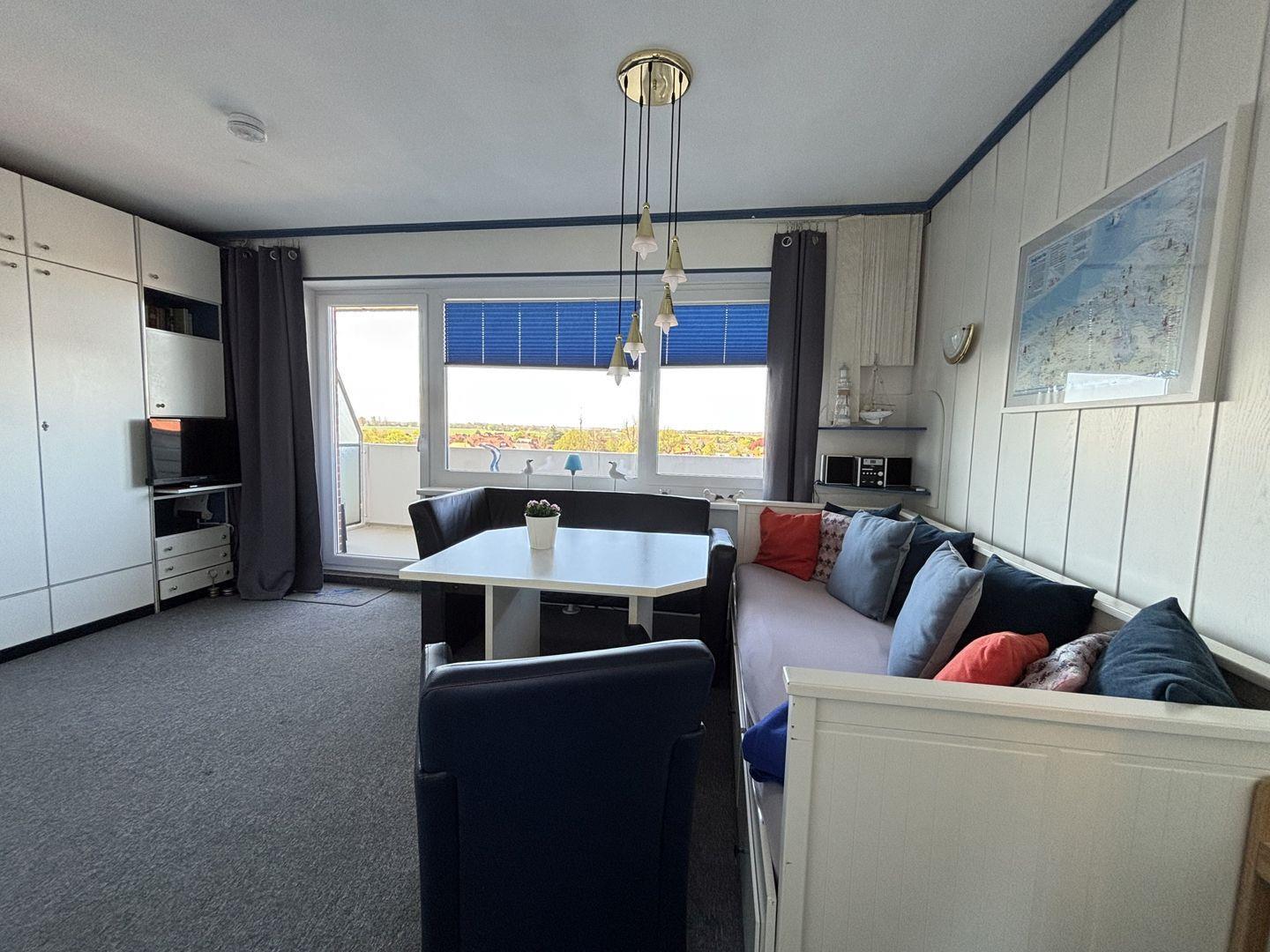 Die Abendsonne mit Internet bietet Platz für 3 Personen. Vom Balkon genießt man den Blick