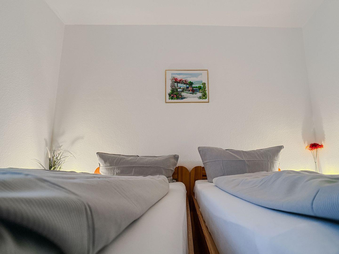 Herzlich Willkommen zu unserer gemütlichen Ferienwohnung! Diese Wohnung bietet alles, was Sie für einen erholsamen Urlaub brauchen. Die Wohnung verfügt über 2 Zimmer: ein Schlafzimmer mit 2 Einzelbetten und ein Wohnzimmer mit einer offenen Küche.