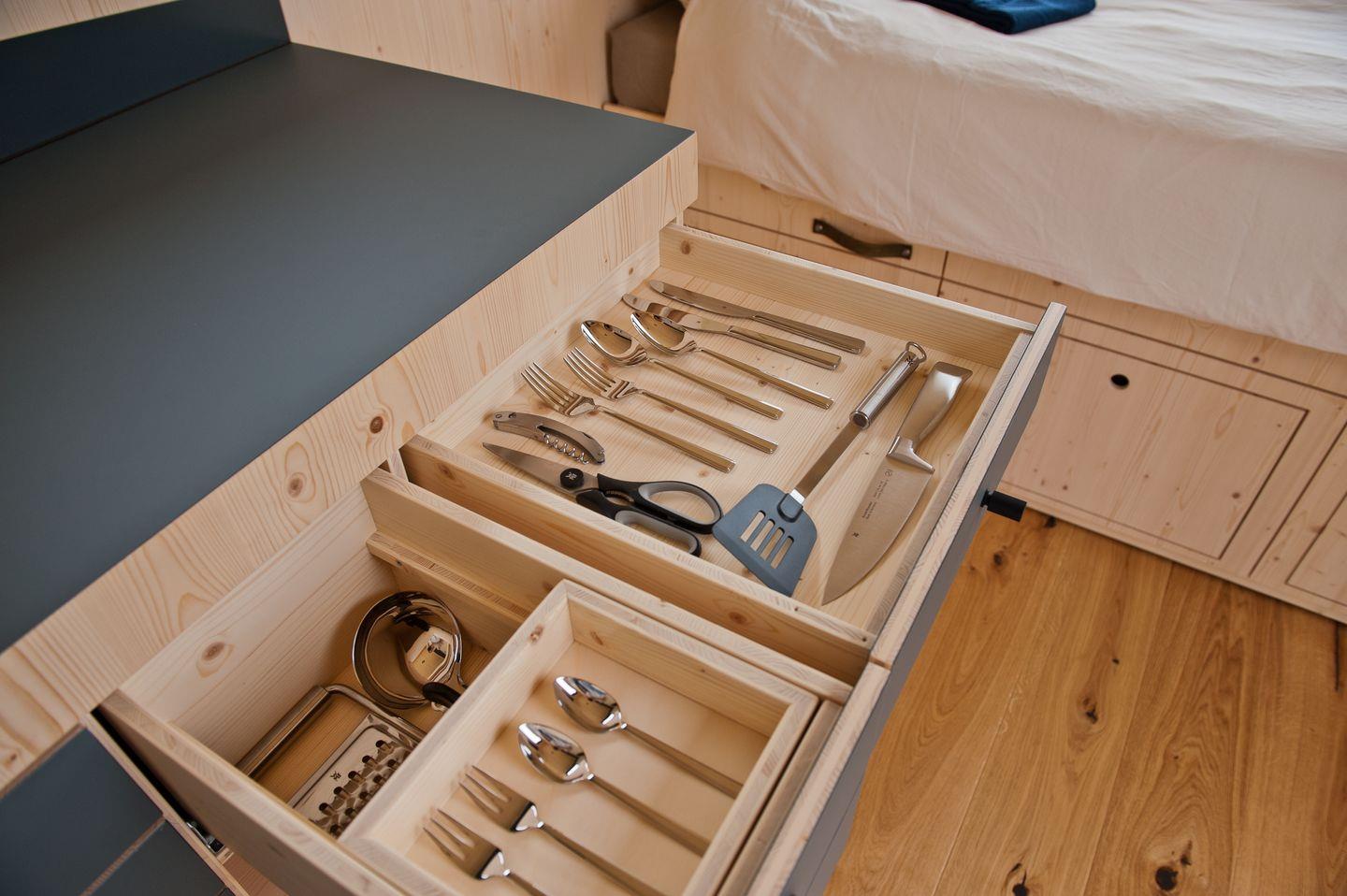 Das Sleep Space Off-Grid ist ideal geeignet für Fahrradfahrer, Wanderer und andere Naturliebhaber, die nach einer nachhaltigen und stilvollen Übernachtungsmöglichkeit suchen. Auf fünf Quadratmetern findest du alles, was du für einen Kurzaufenthalt benötigst: ein komfortables Bett für zwei Personen, eine Kochnische mit Waschbecken und ausreichend Staumöglichkeiten. Das energieautarke Mini-Cabin von Green Tiny Houses verfügt zur Stromversorgung über eine Photovoltaik-Anlage auf dem Dach. Über einen kompakten Energiespeicher kannst du die Batterieladung ablesen. Bereit für deine persönliche Green Energy Challenge? Finde heraus, wie sparsam du wirklich bist und verfolge deinen Stromverbrauch in Abhängigkeit von der Stromproduktion auf dem Dach. Schalte einfach mal ab, nimm die Natur bewusst wahr und lass dich inspirieren. Weniger kann manchmal so viel mehr sein. Die Sleep Spaces werden übrigens wohngesund in Schleswig-Holstein produziert und bieten dank Kompensation aller anfallenden CO2-Emissionen eine klimaneutrale Übernachtung.