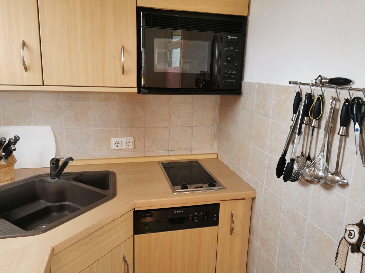 In der kompakten Küche finden Sie alles, was Sie für eine gelungene Selbstversorgung benötigen. Das kleine innenliegende Bad bietet Ihnen alle Annehmlichkeiten für Ihre persönliche Hygiene.