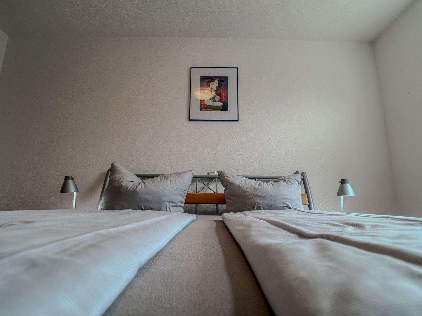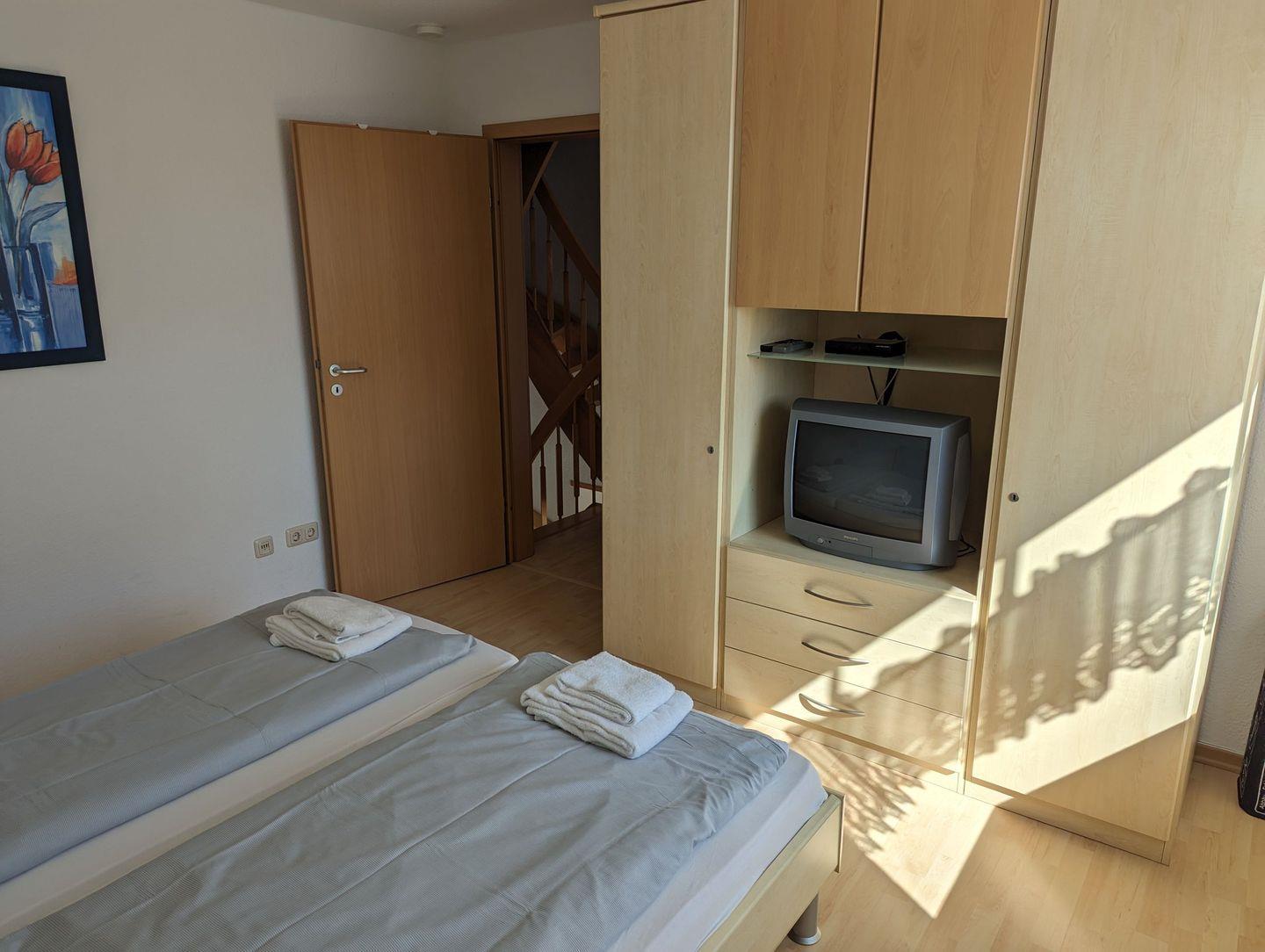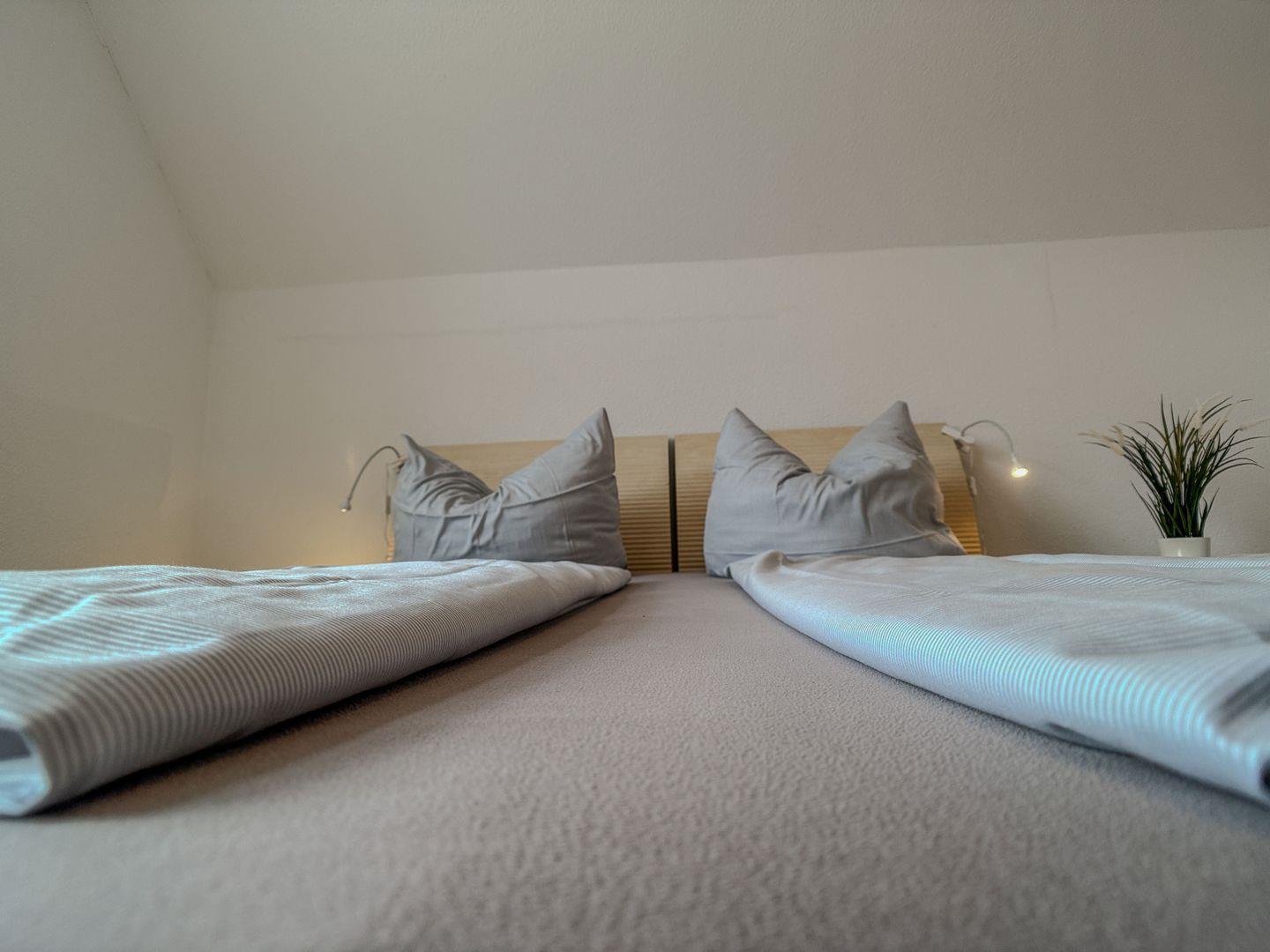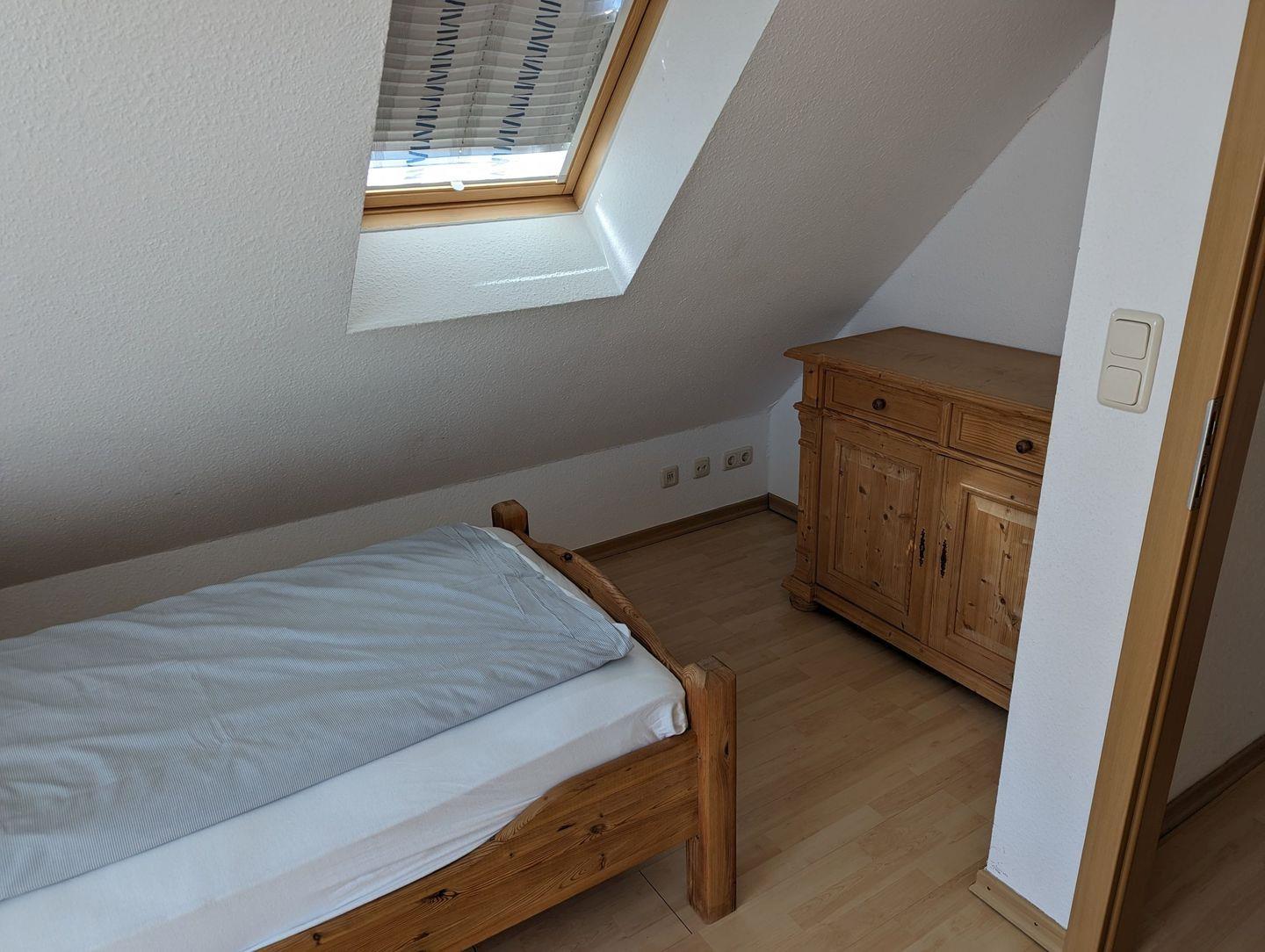 Die zweite Etage bietet zwei Einzelbetten und eine Kommode. Dieser Raum eignet sich perfekt für Kinder oder zusätzliche Gäste.