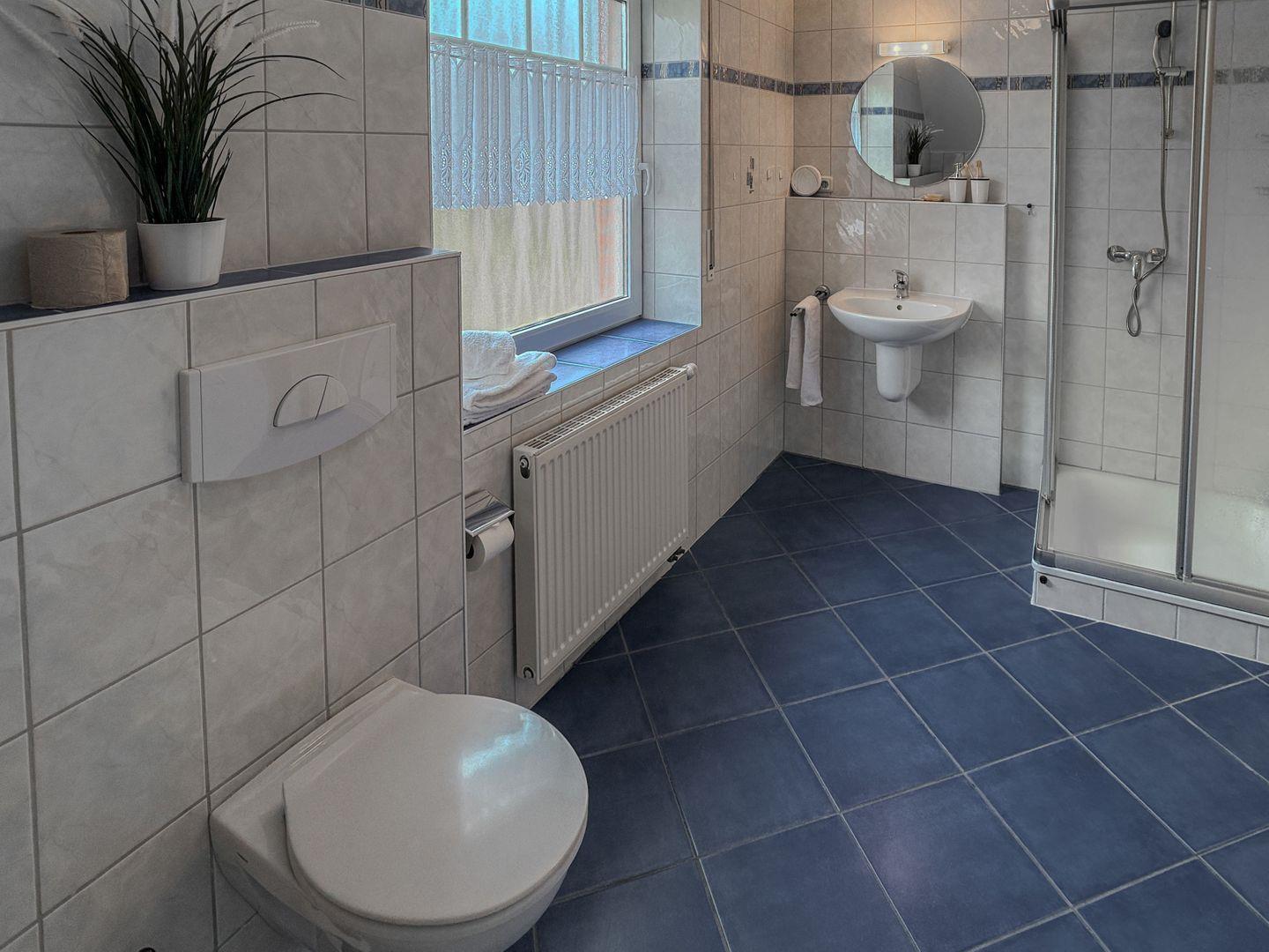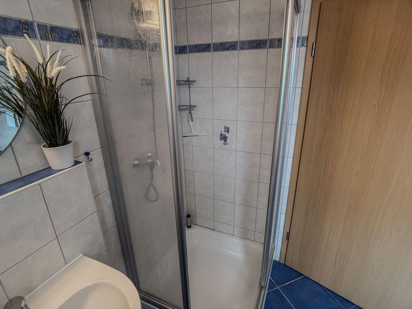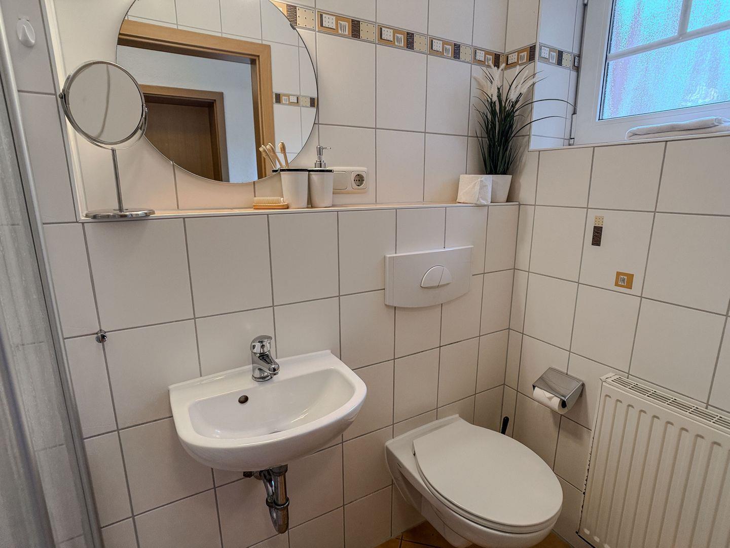 Im Erdgeschoss betreten Sie ein gemütliches Gäste-WC mit Dusche, perfekt für die schnelle Erfrischung nach einem Tag voller Abenteuer. Der Hauswirtschaftsraum ist mit einer Waschmaschine ausgestattet, um Ihren Aufenthalt so bequem wie möglich zu gestalten.