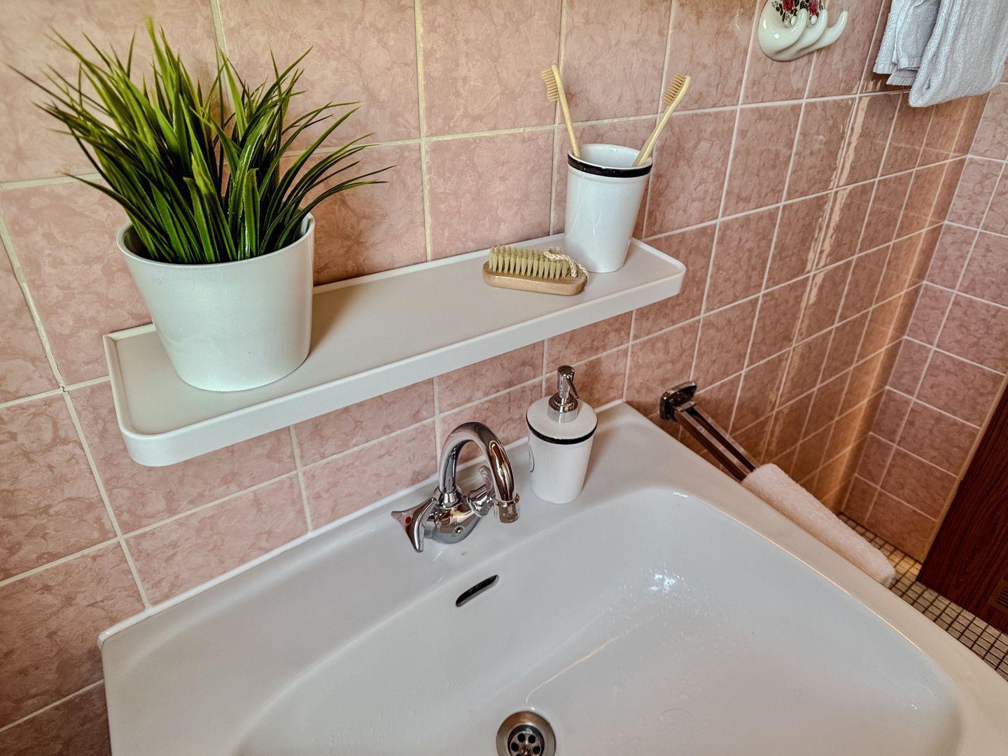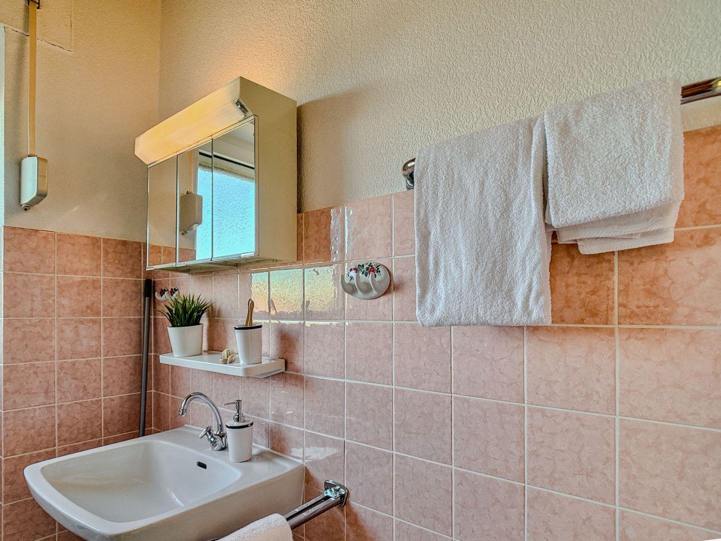 Das Badezimmer ist funktional und bietet ausreichend Platz für Ihre Morgenhygiene.
