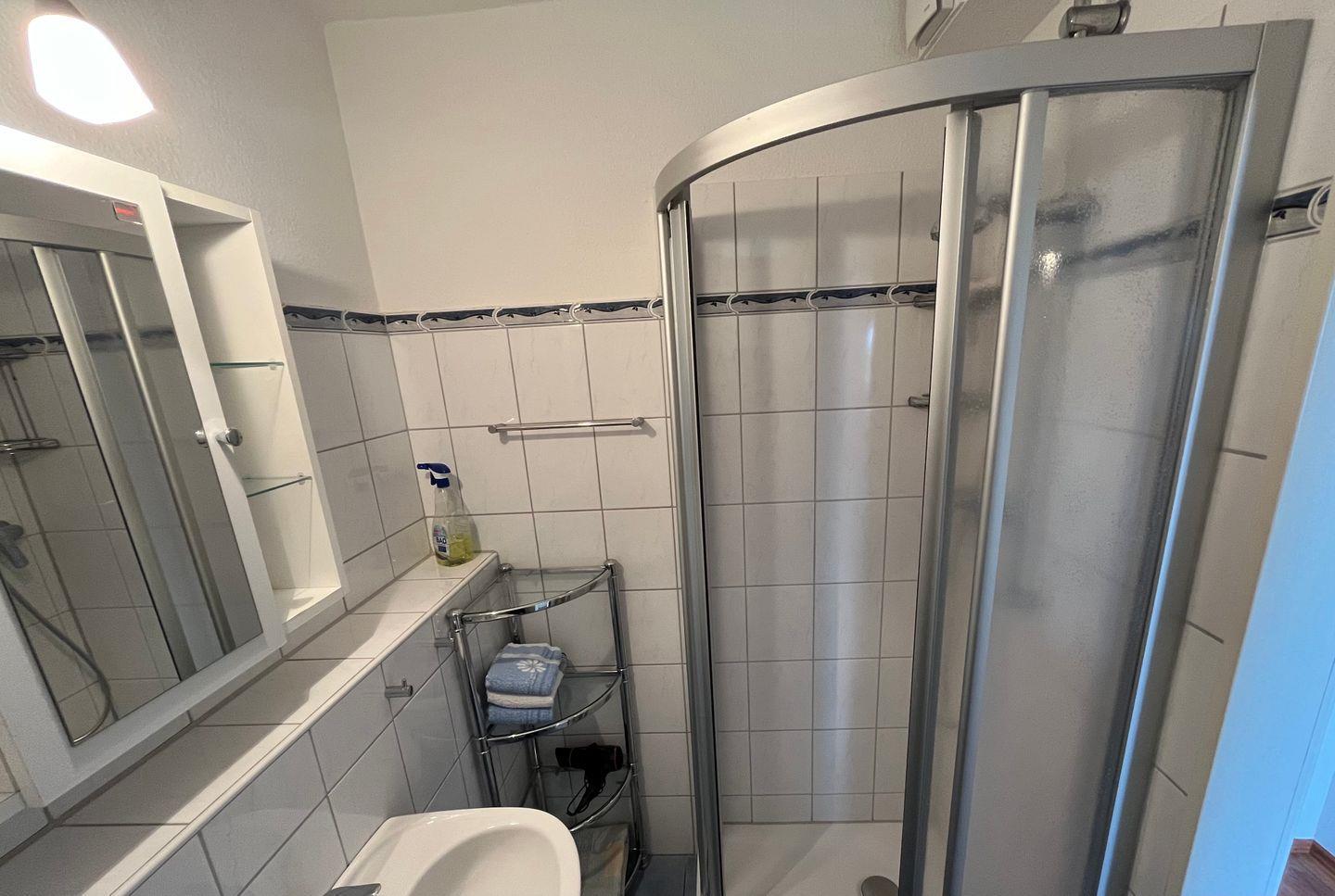 Das Bad ist hell und sehr modern eingerichtet. Das kleine Schlafzimmer ist mit 2 Betten ausgestattet und das große Sofa kann zum Schlafen genutzt werden.