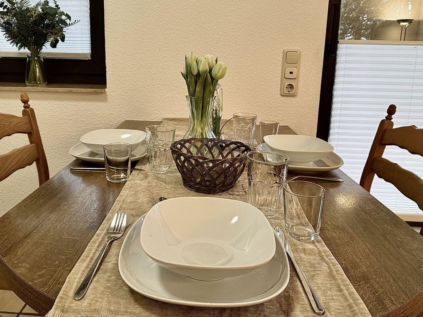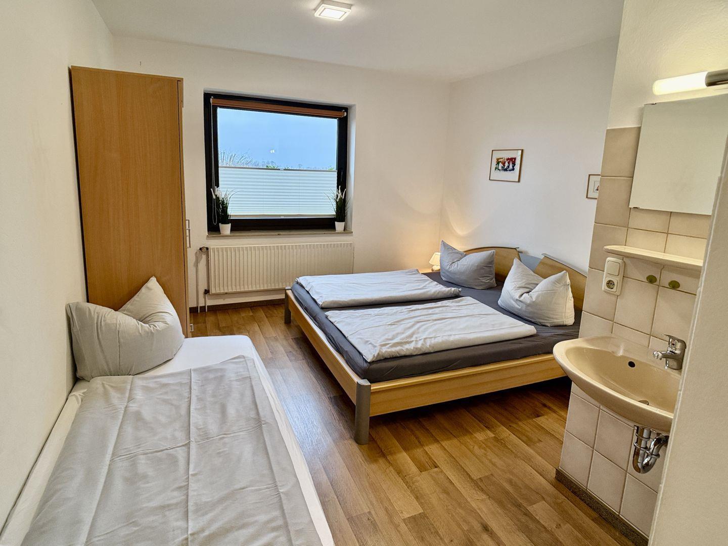 Die Ausstattung umfasst ein komfortables Boxspringbett, ein Etagenbett und ein Schlafsofa. Das Haus Vogel beherbergt insgesamt 5 weitere Wohnungen.