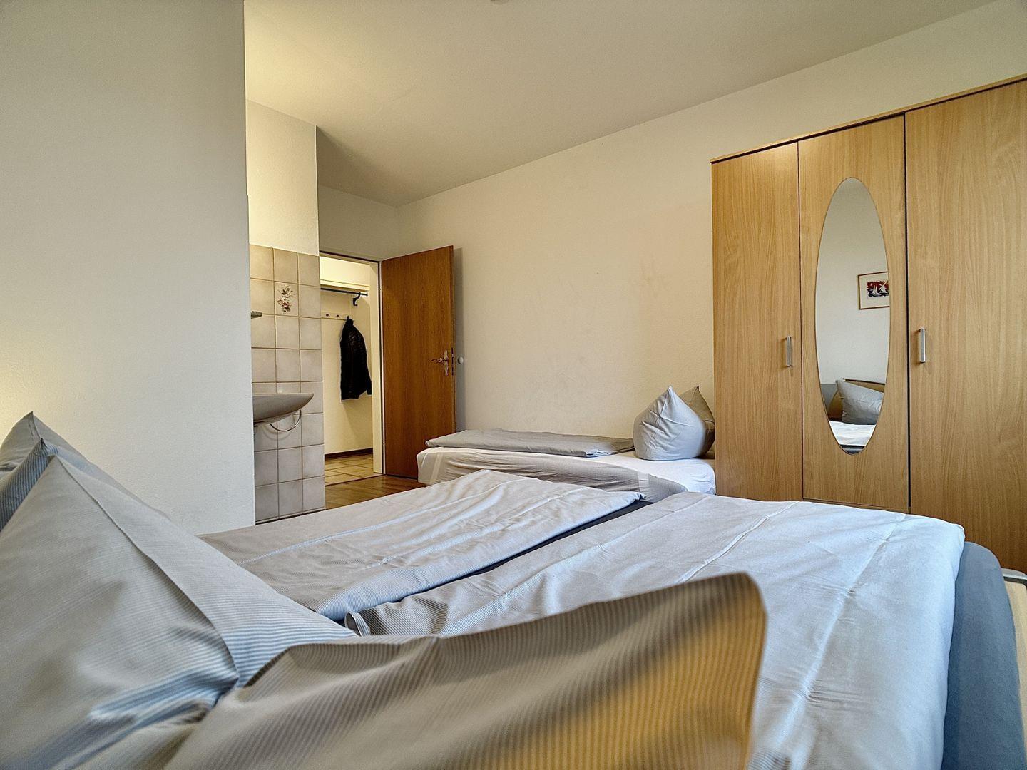 Das separate Schlafzimmer verfügt über ein Doppelbett sowie ein Einzelbett das besonders bei Kindern beliebt ist.